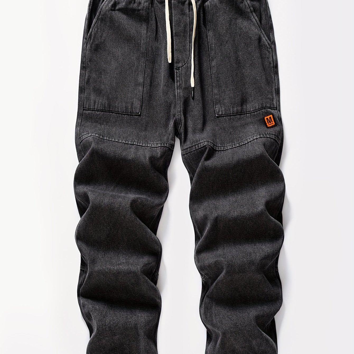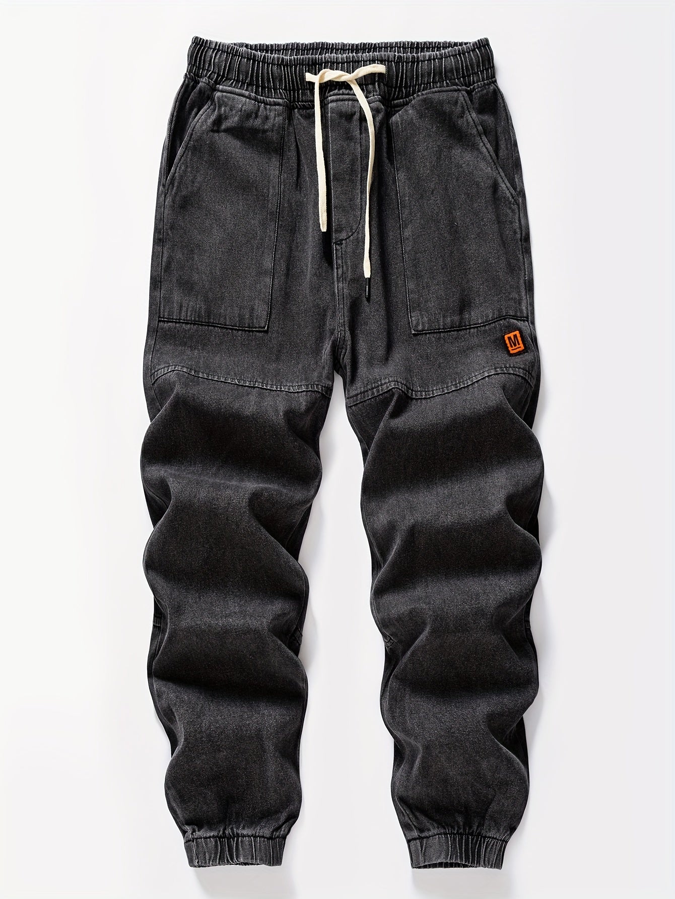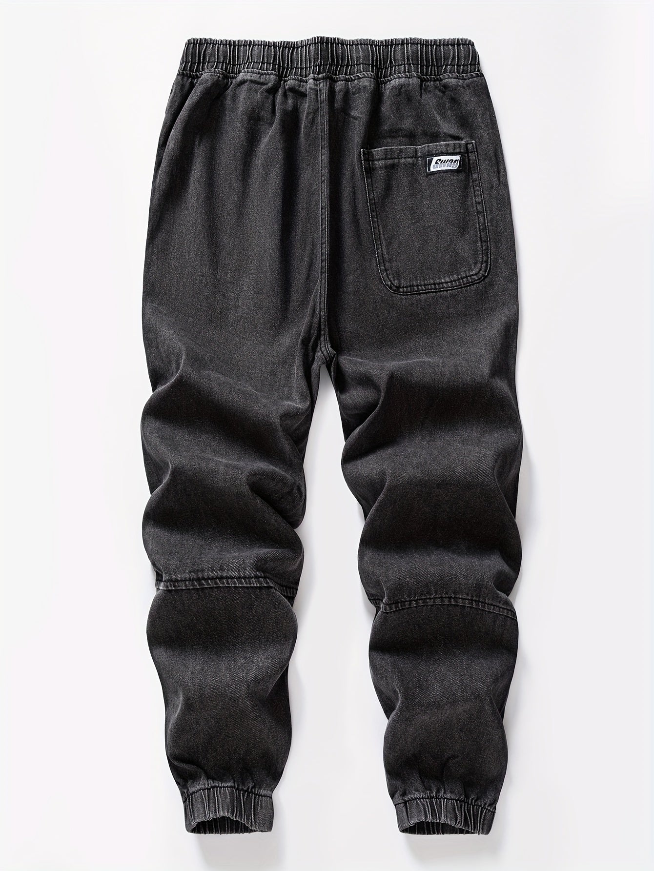 Мужские джинсовые джоггеры укороченные синий свободный крой с шнурком на поясе уличный повседневный стиль