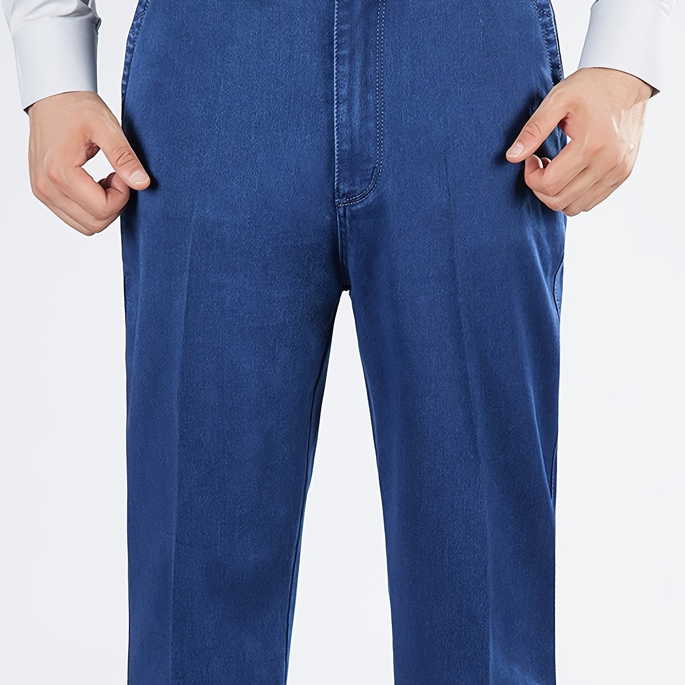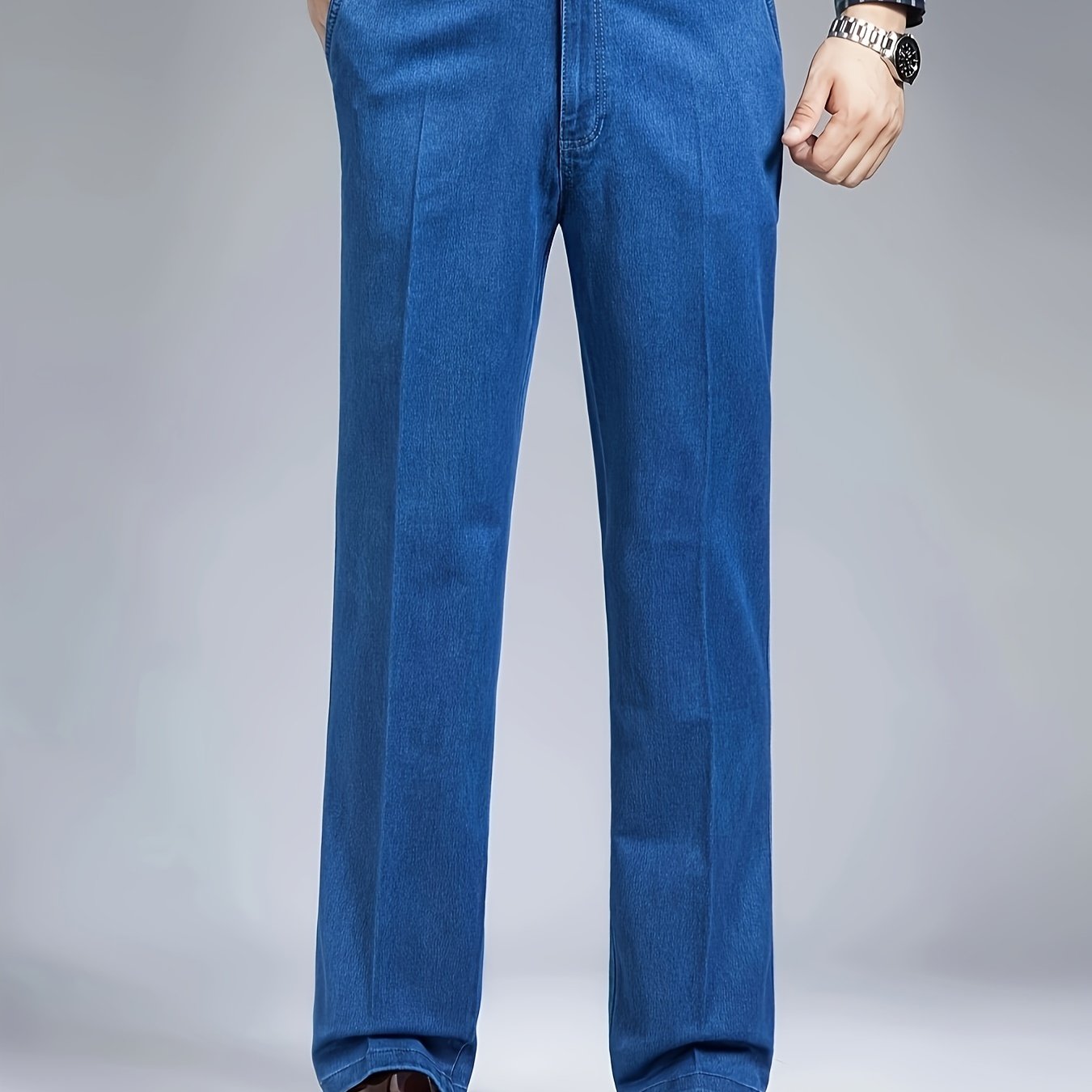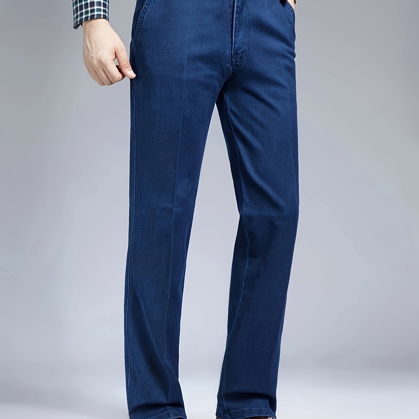 Мужские джинсы с высокой талией из денима с глубокими карманами, классический крой, прямые штанины, летняя стирка