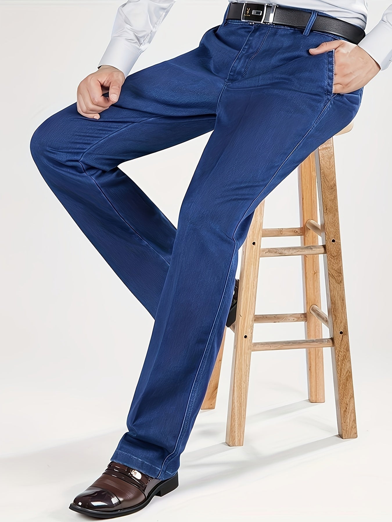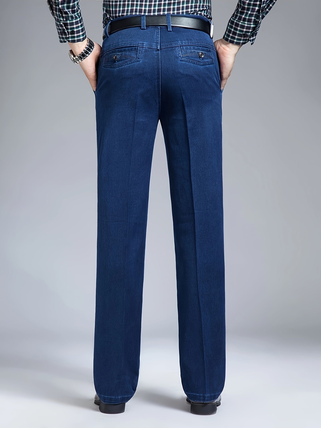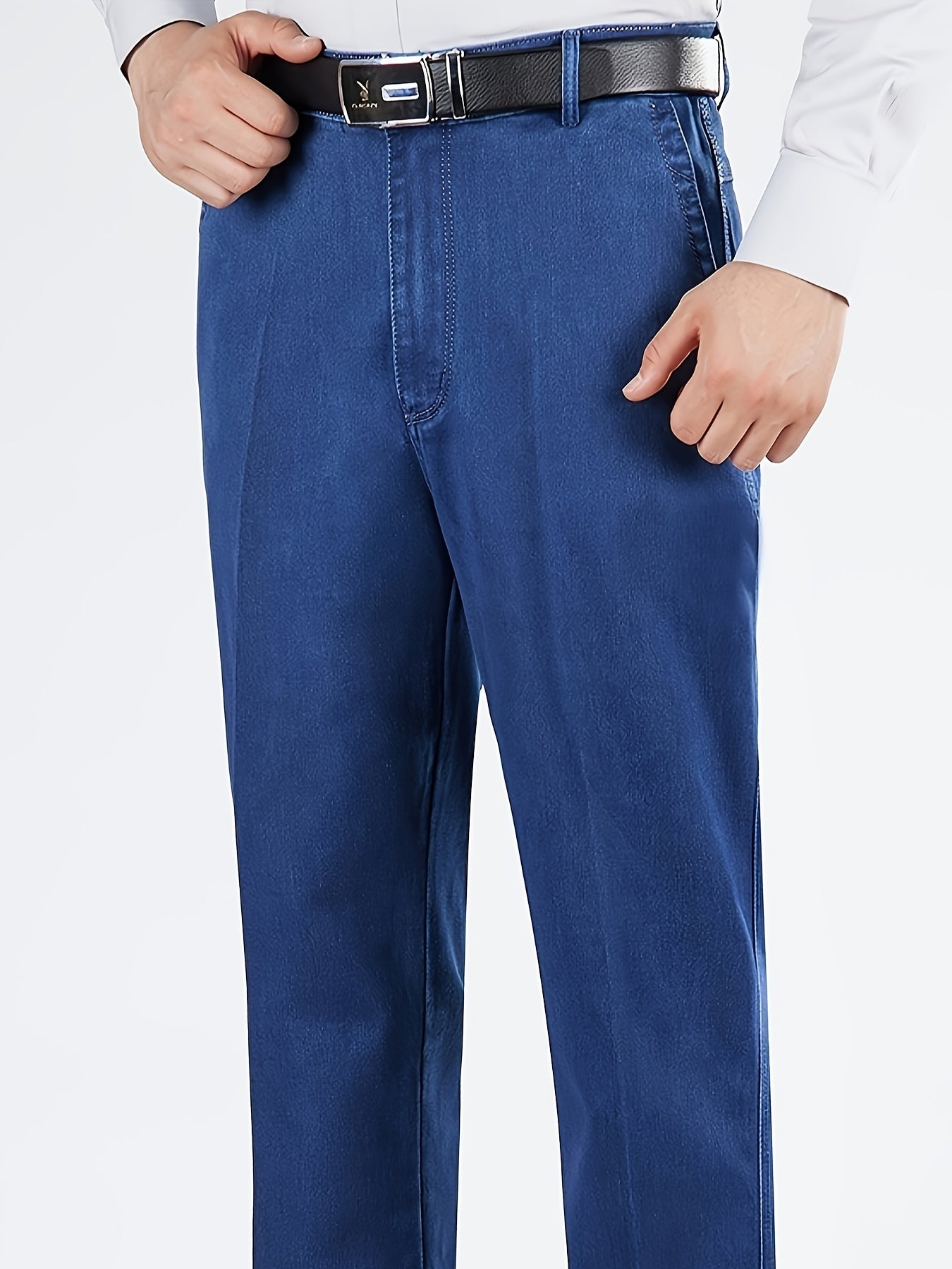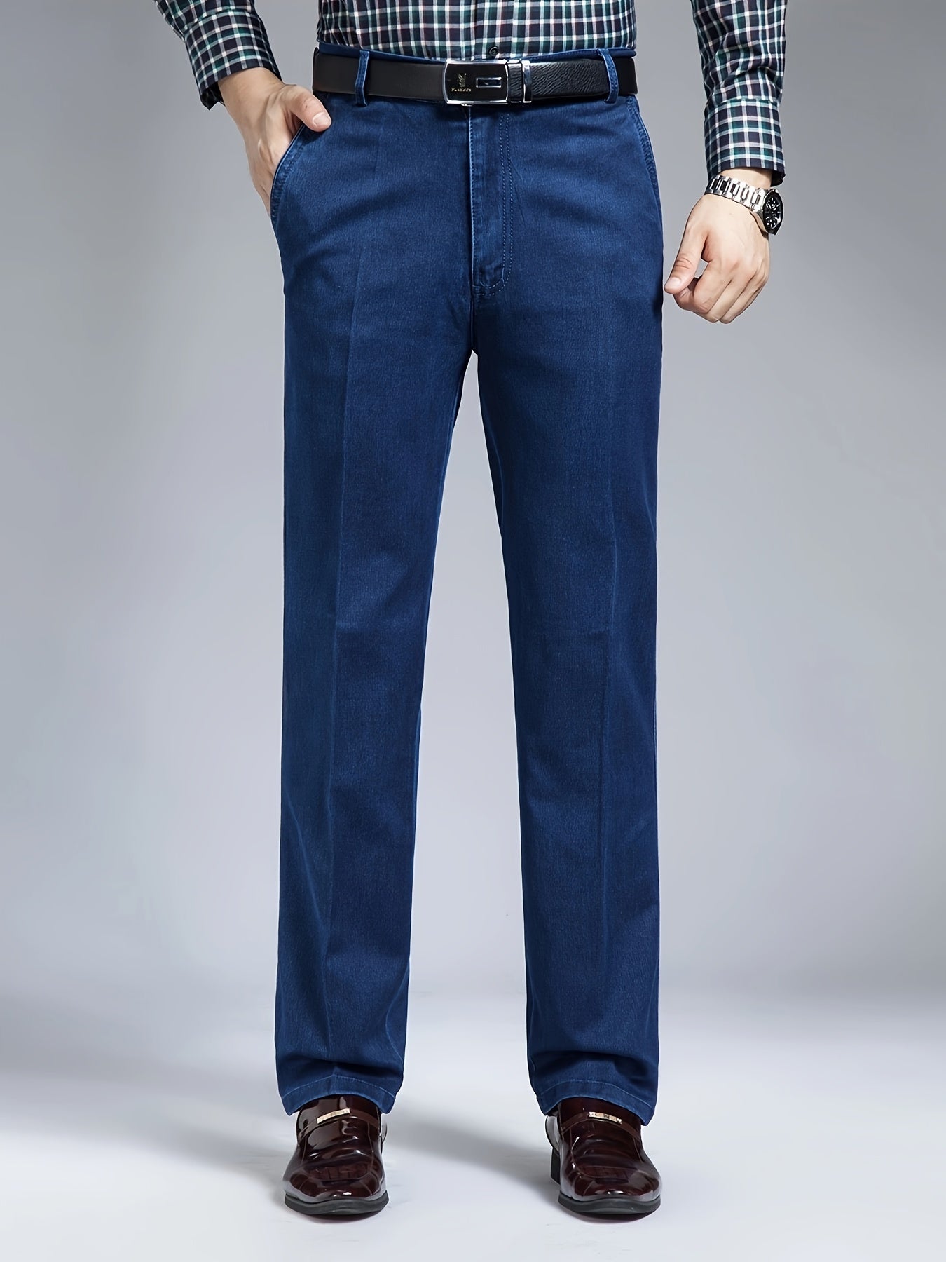 Мужские джинсы с высокой талией из денима с глубокими карманами, классический крой, прямые штанины, летняя стирка