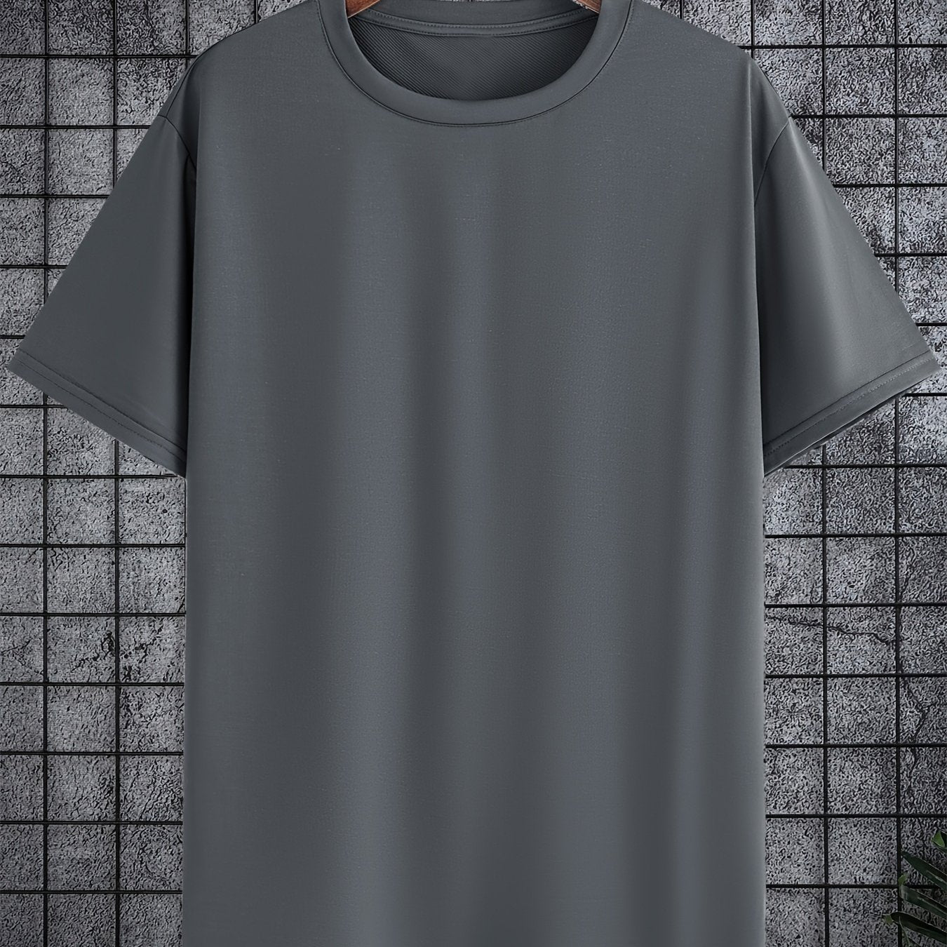 Мужская большая полиэстеровая однотонная футболка с круглым вырезом и короткими рукавами для лета
