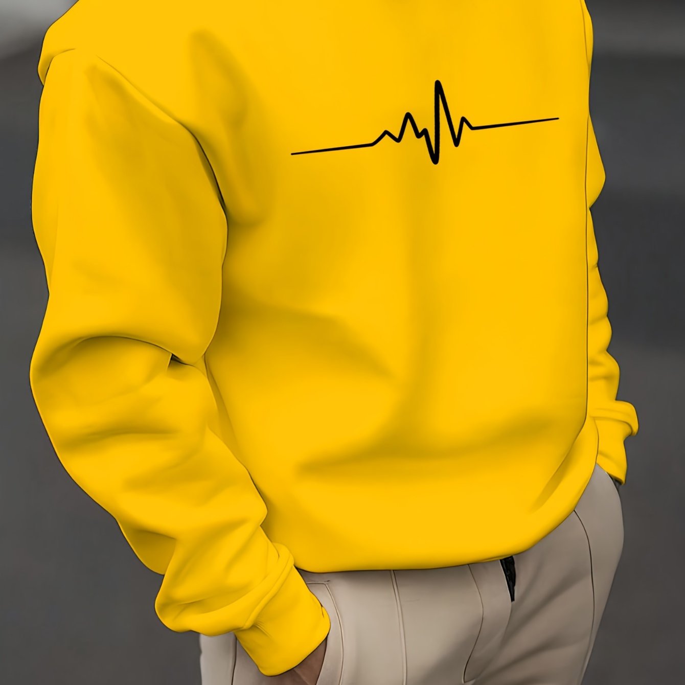 Мужской свитшот с длинными рукавами и круглым вырезом с принтом в виде схемы ЭКГ для повседневных прогулок и активного отдыха на свежем воздухе