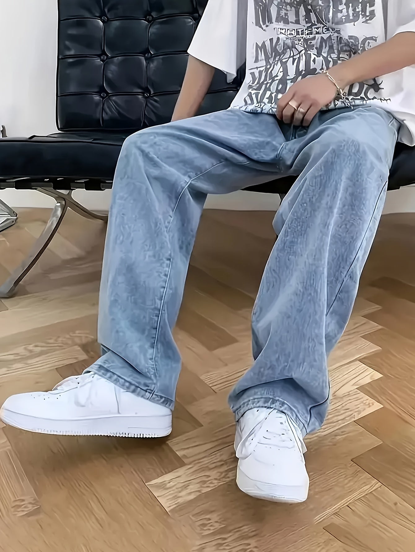 Мужские джинсы из плетеного денима свободного кроя с однотонной стиркой из хлопка и полиэстера, всесезонные