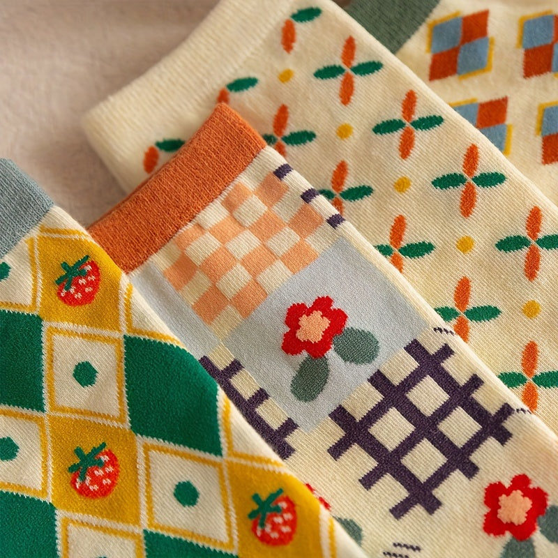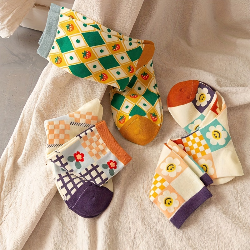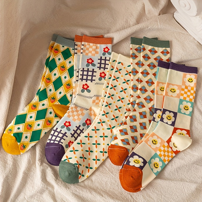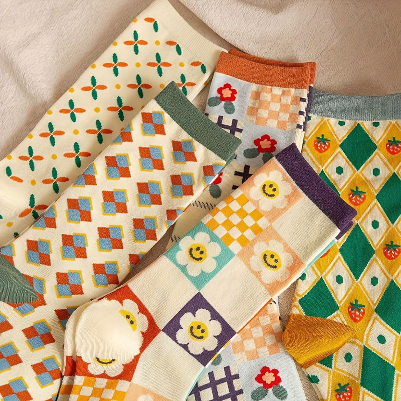 Мужские среднеголовные носки с клубничным солнечным узором для активного отдыха, набор из 5