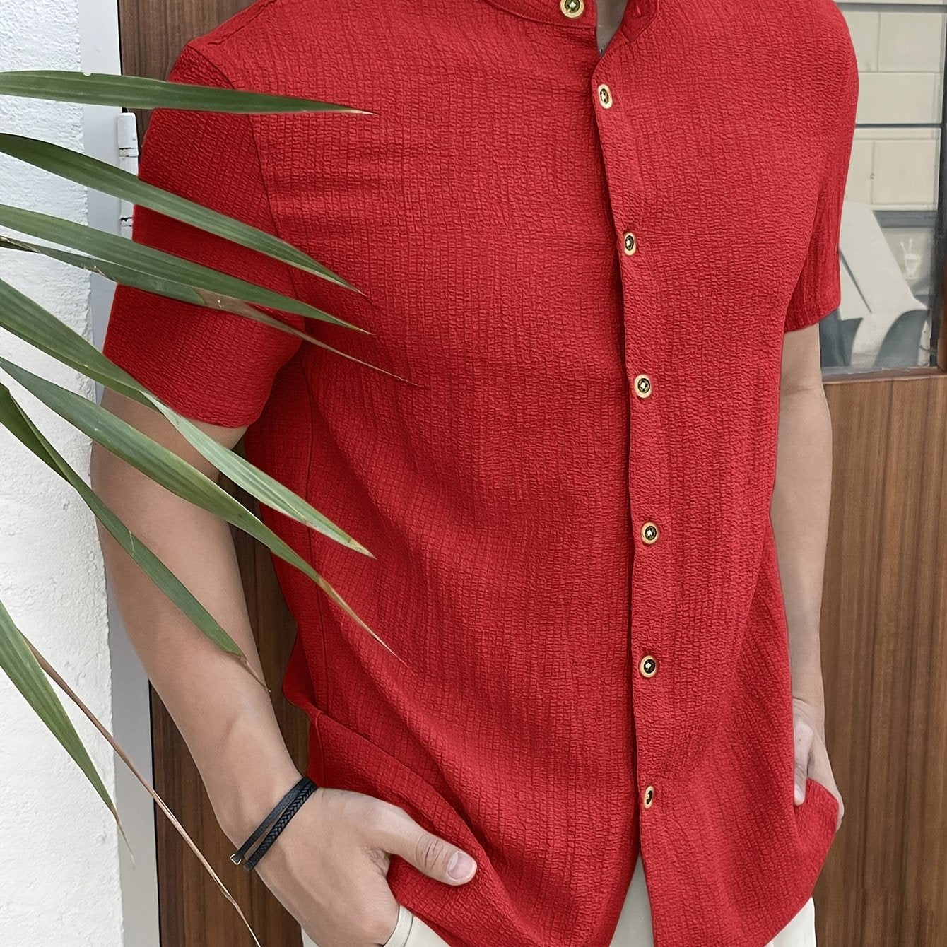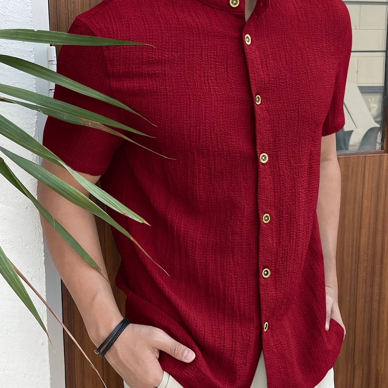 Мужская темно-синяя рубашка на пуговицах, легкий полиэстер, стойка, повседневная, весна, лето, осень