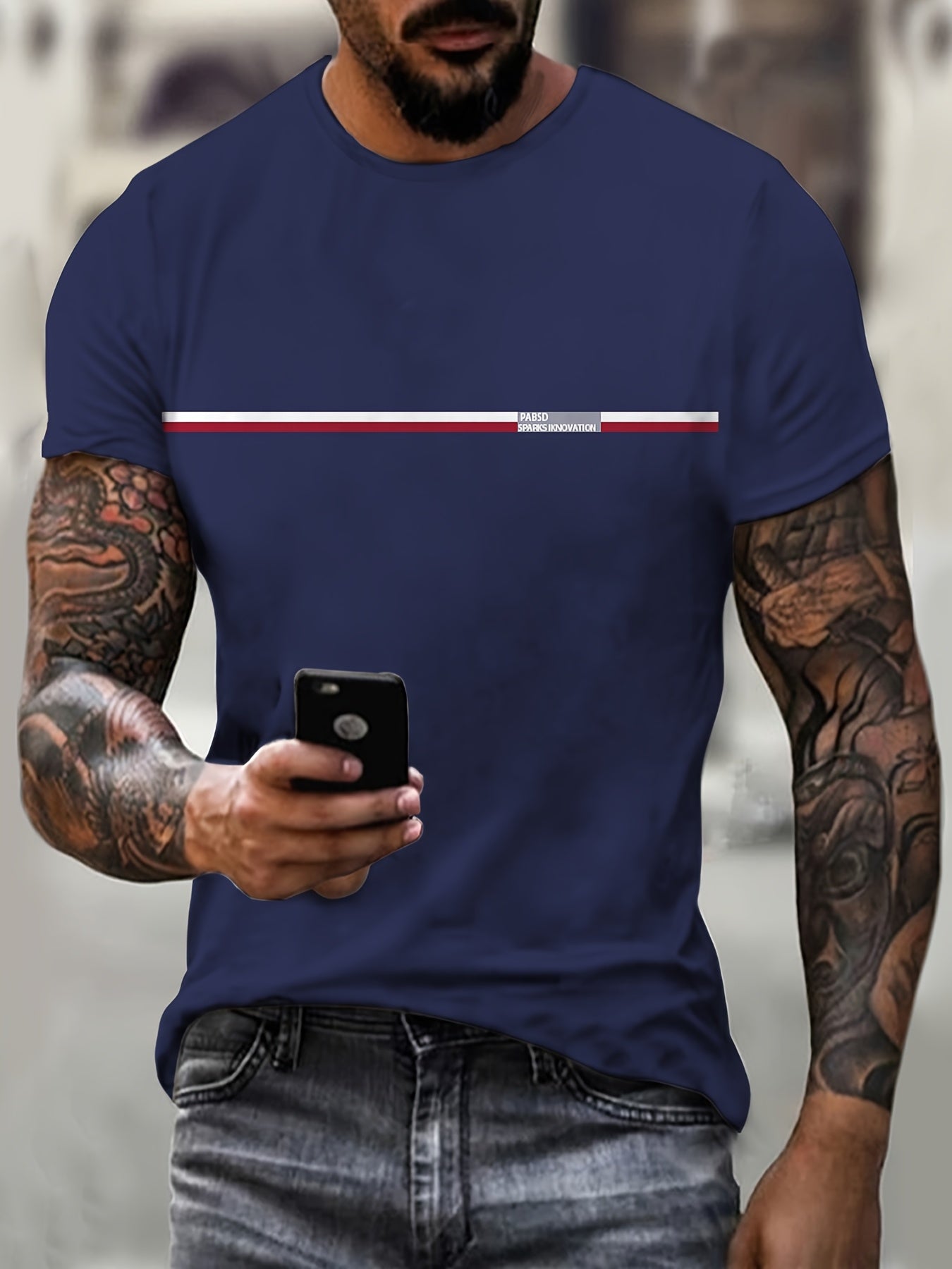 Мужская синяя полосатая футболка с коротким рукавом из полиэстера, повседневная спортивная одежда, большой размер