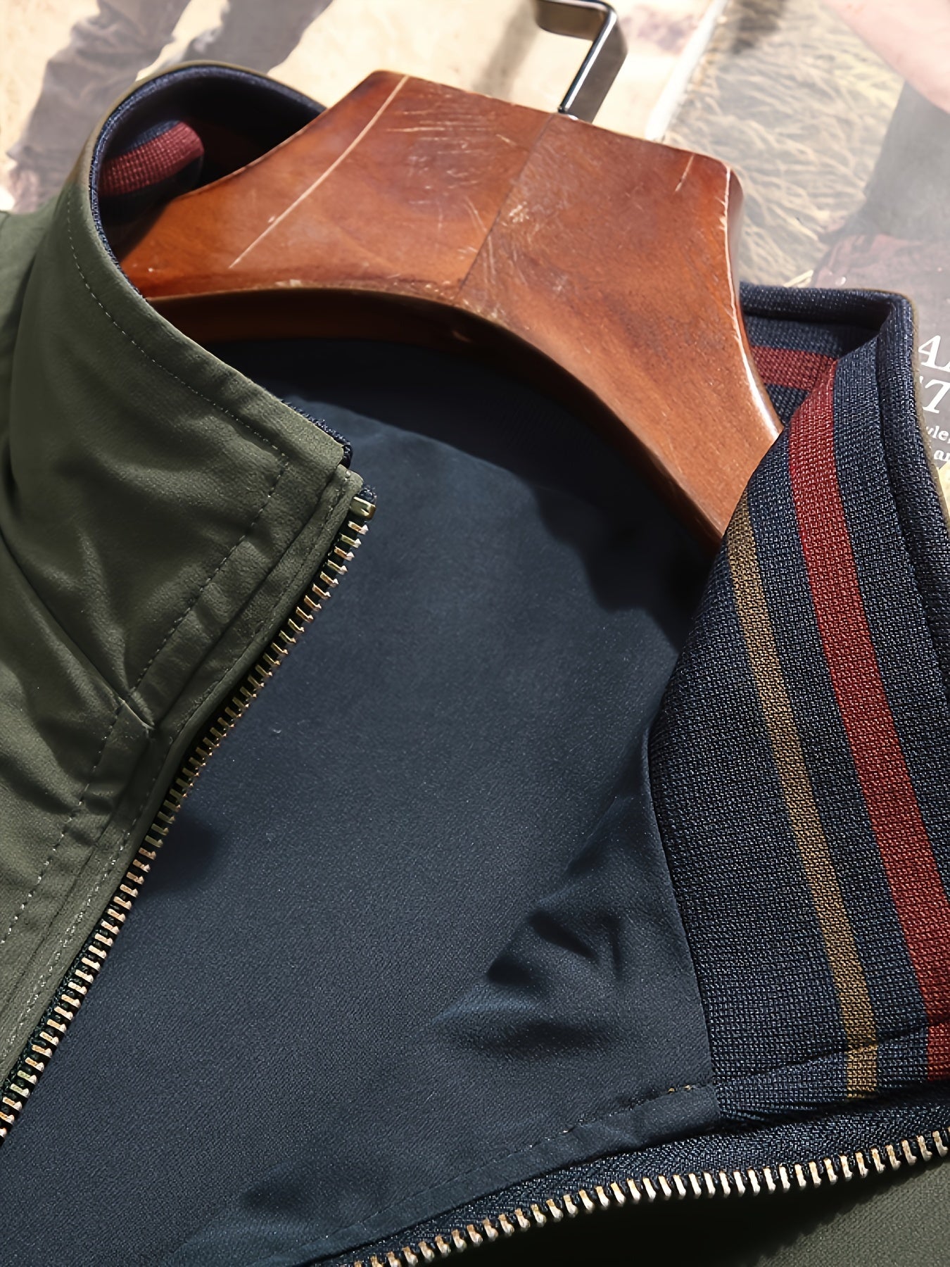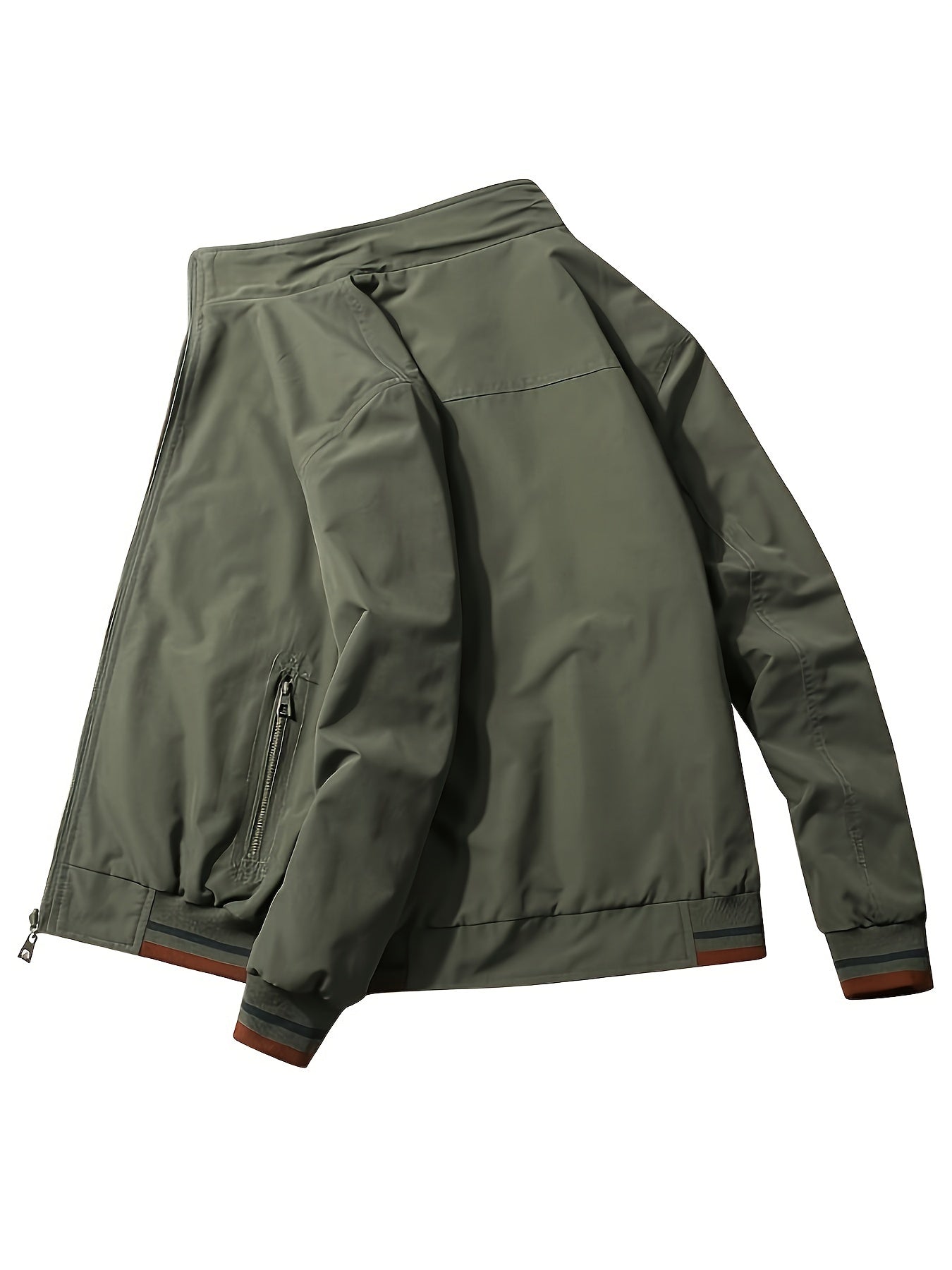 Мужская оливково-зеленая повседневная куртка из полиэстера с двусторонними карманами, стойким воротником и застежкой-молнией