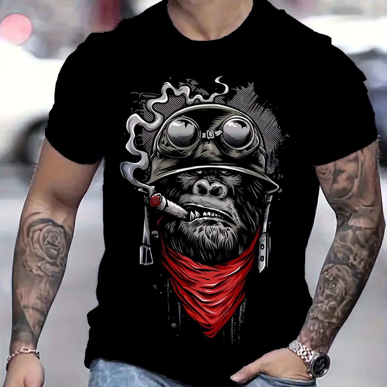 Мужская футболка с крупным аниме-обезьяным графическим принтом, короткий рукав, повседневная летняя верхняя одежда