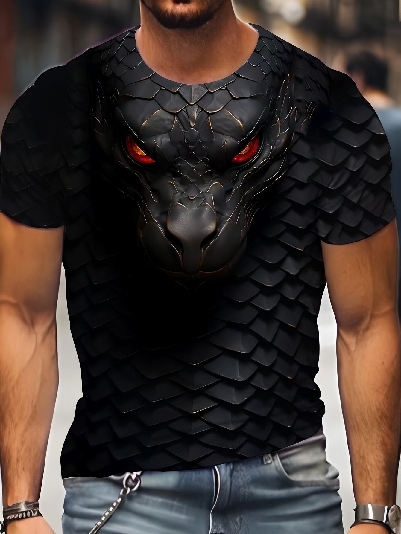 Мужская футболка большого размера с коротким рукавом, 3D-змеиный узор, летняя трикотажная полиэстеровая