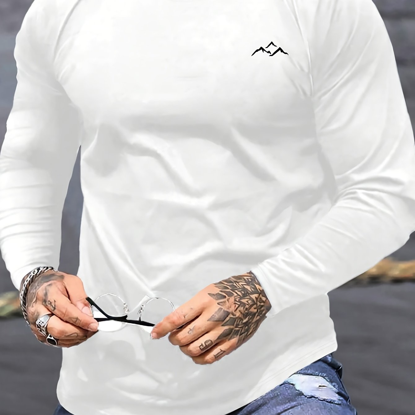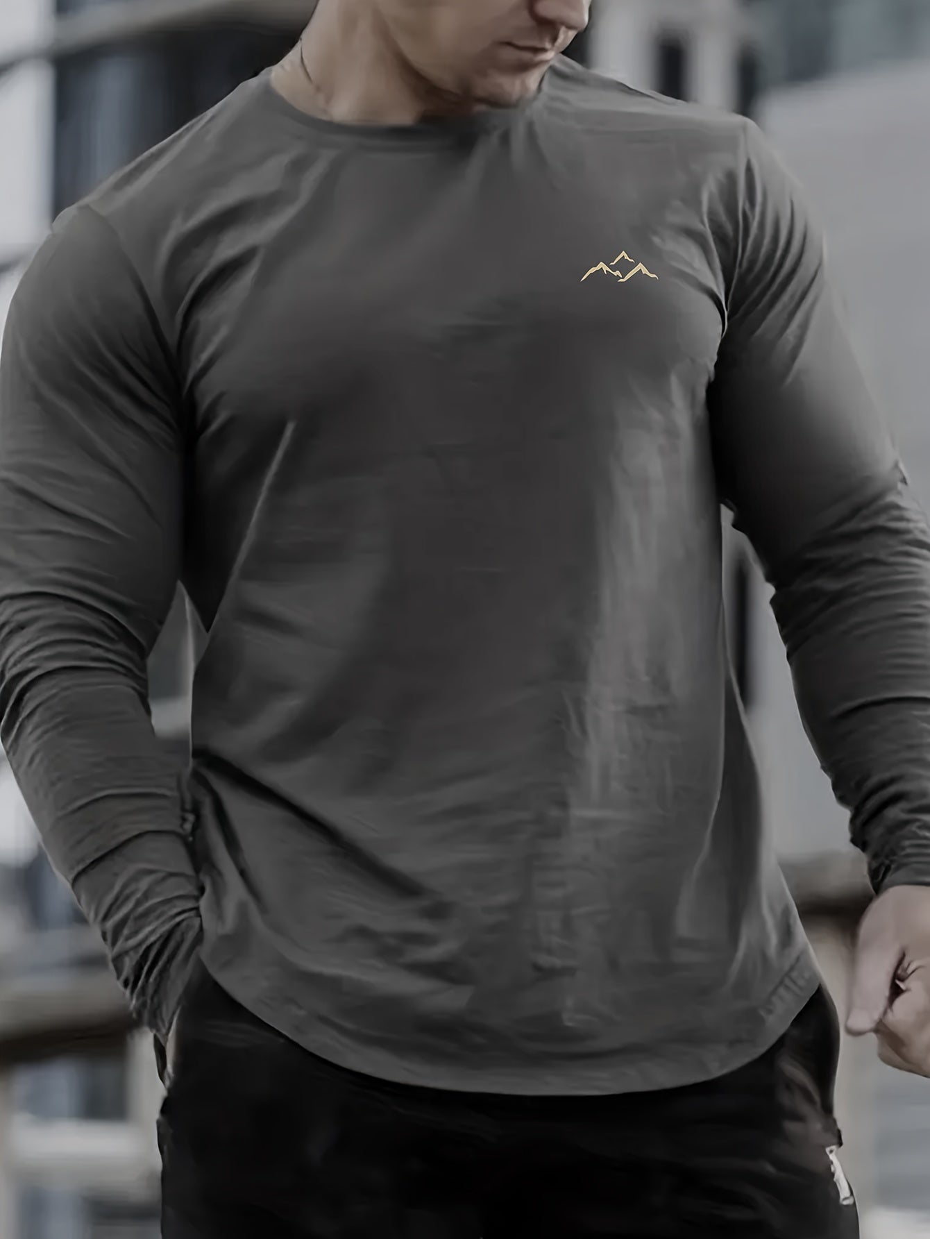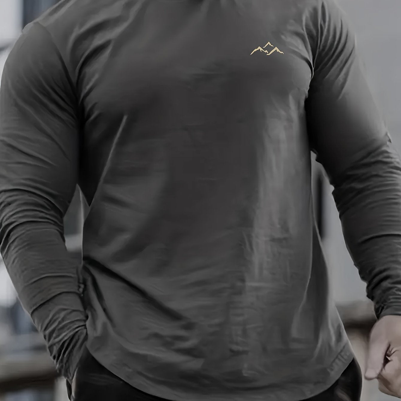 Мужская футболка с длинным рукавом и круглым вырезом большого размера с горным принтом, дышащий полиэстер, повседневная