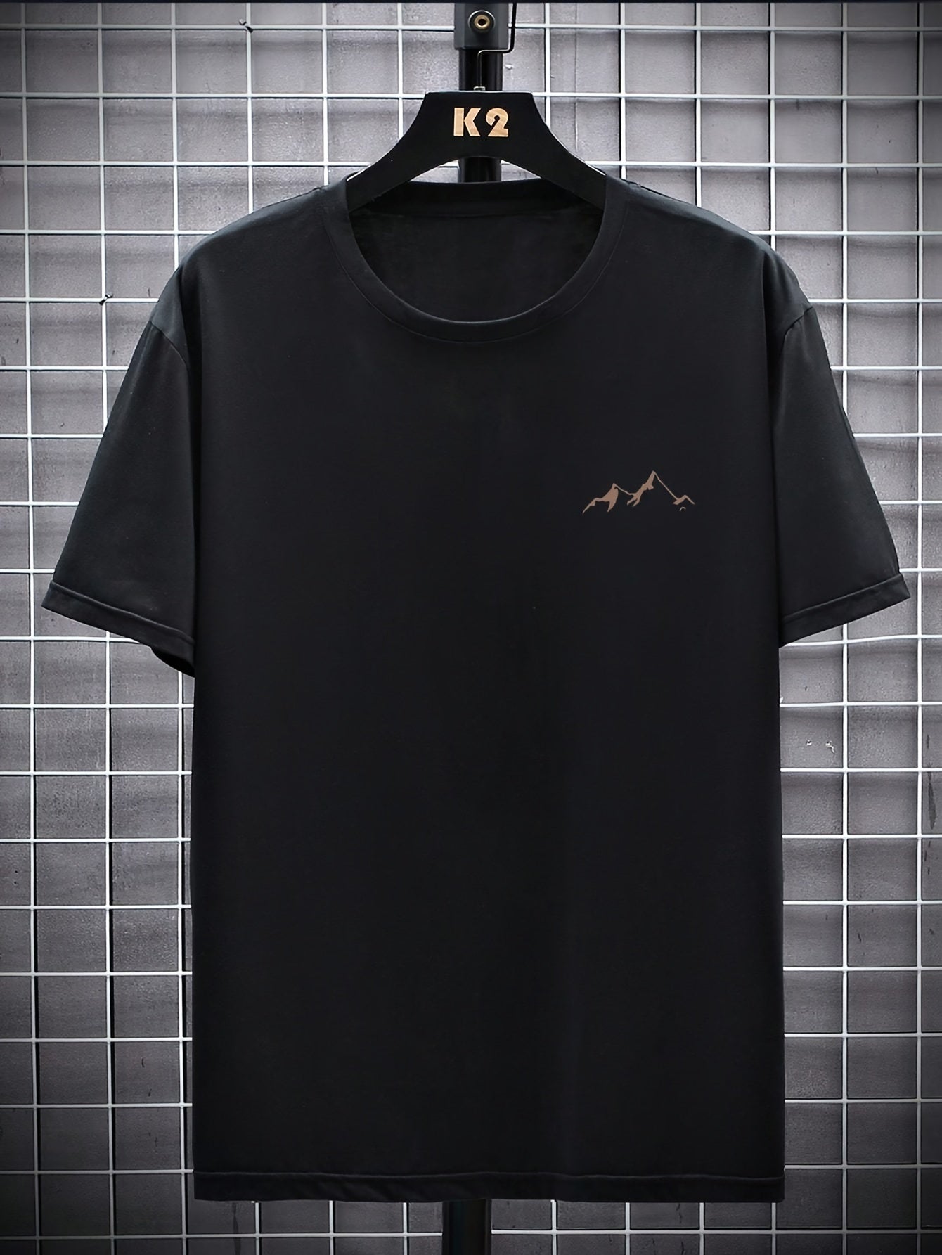 Мужская футболка с коротким рукавом и горным принтом для активного отдыха и досуга, увеличенного размера
