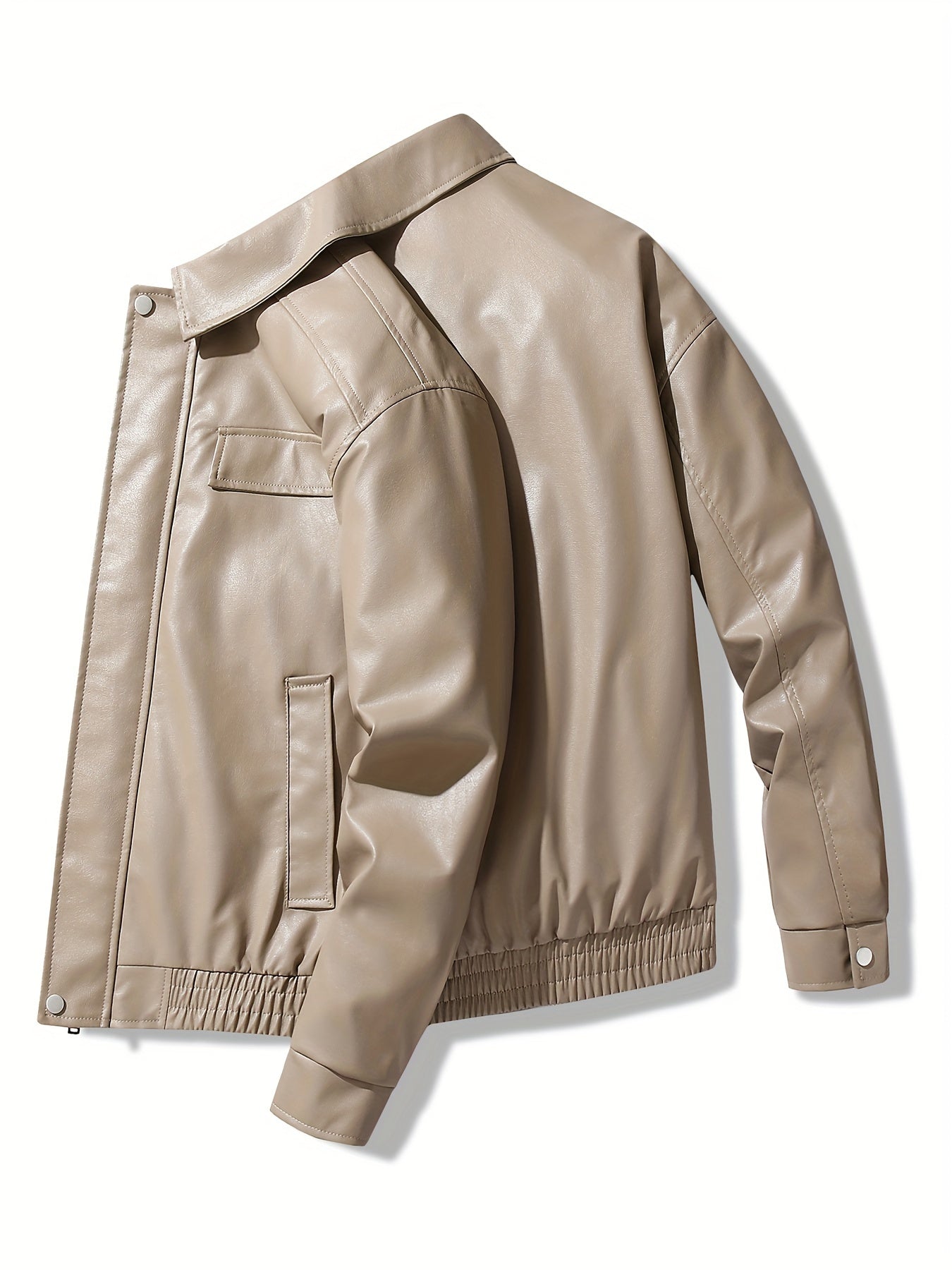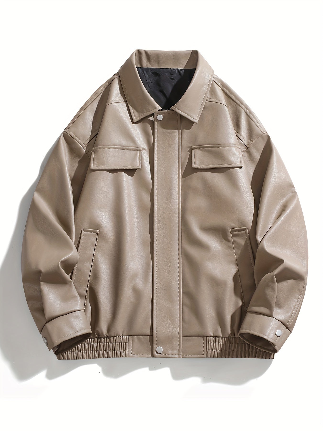 Мужская черная ретро-кожаная куртка из PU с молнией, повседневный уличный стиль с клапанами карманов