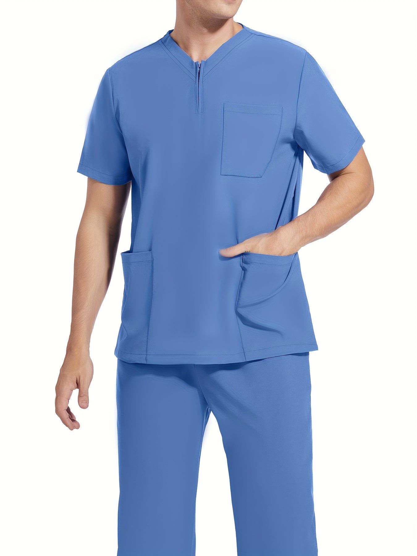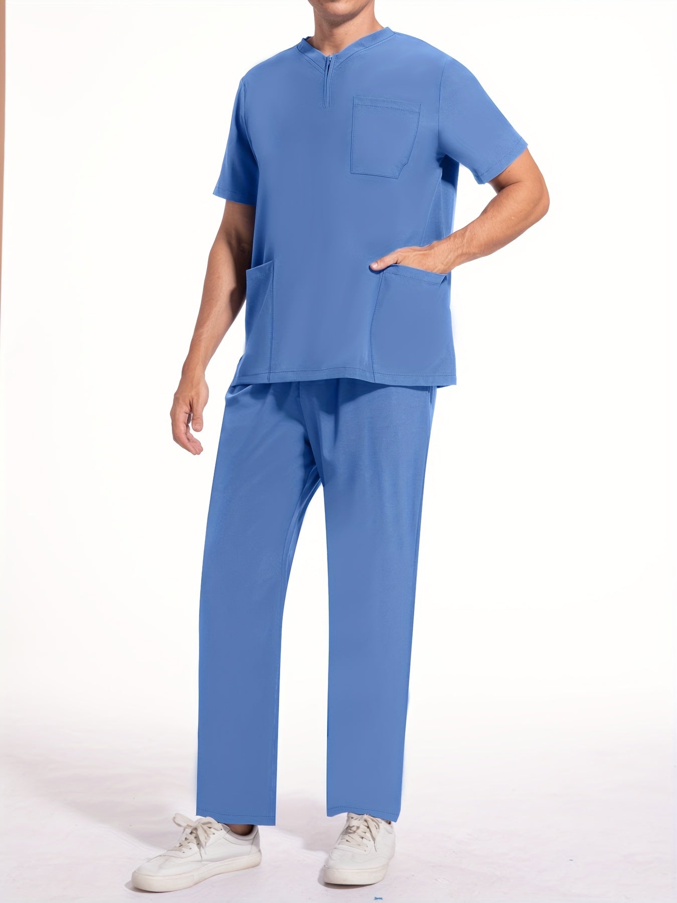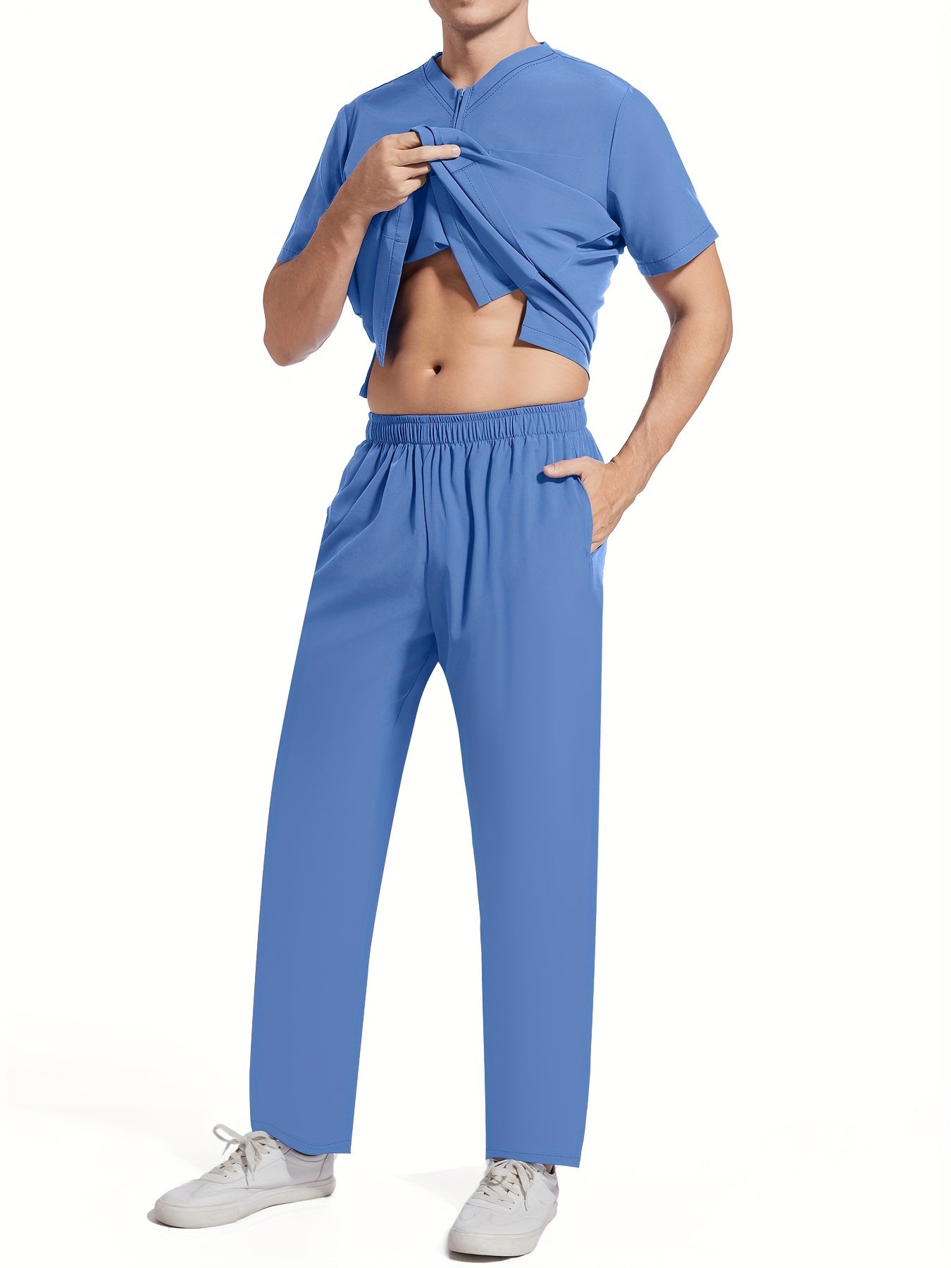 Мужской комплект рабочей одежды с коротким рукавом, эластичным поясом, дышащей тканью и карманами