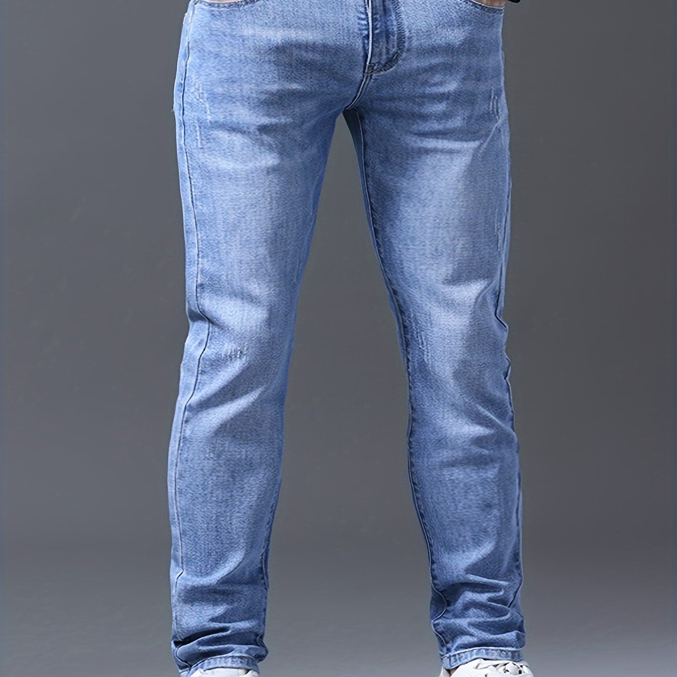 Мужские узкие светло-голубые эластичные джинсы из денима для всех сезонов