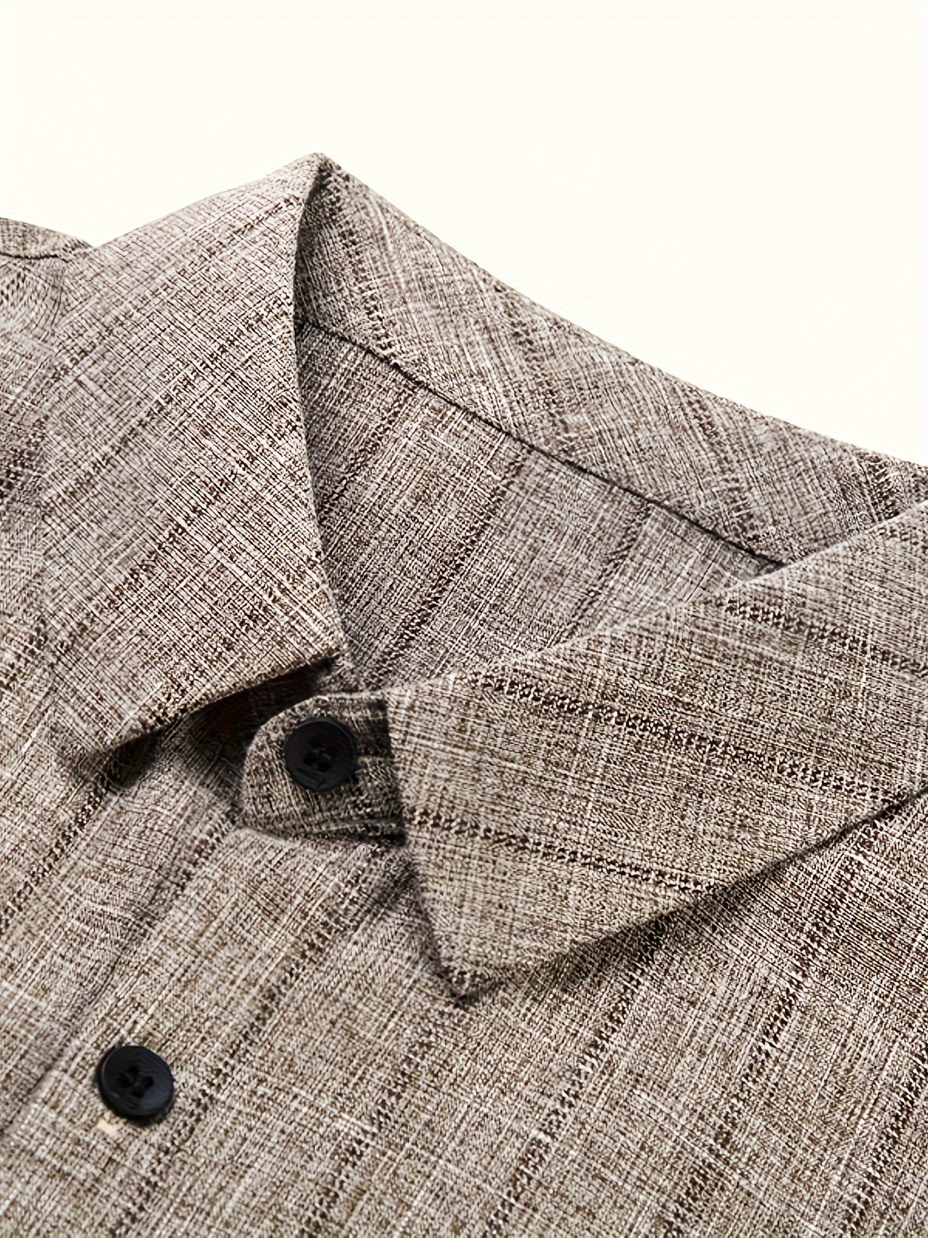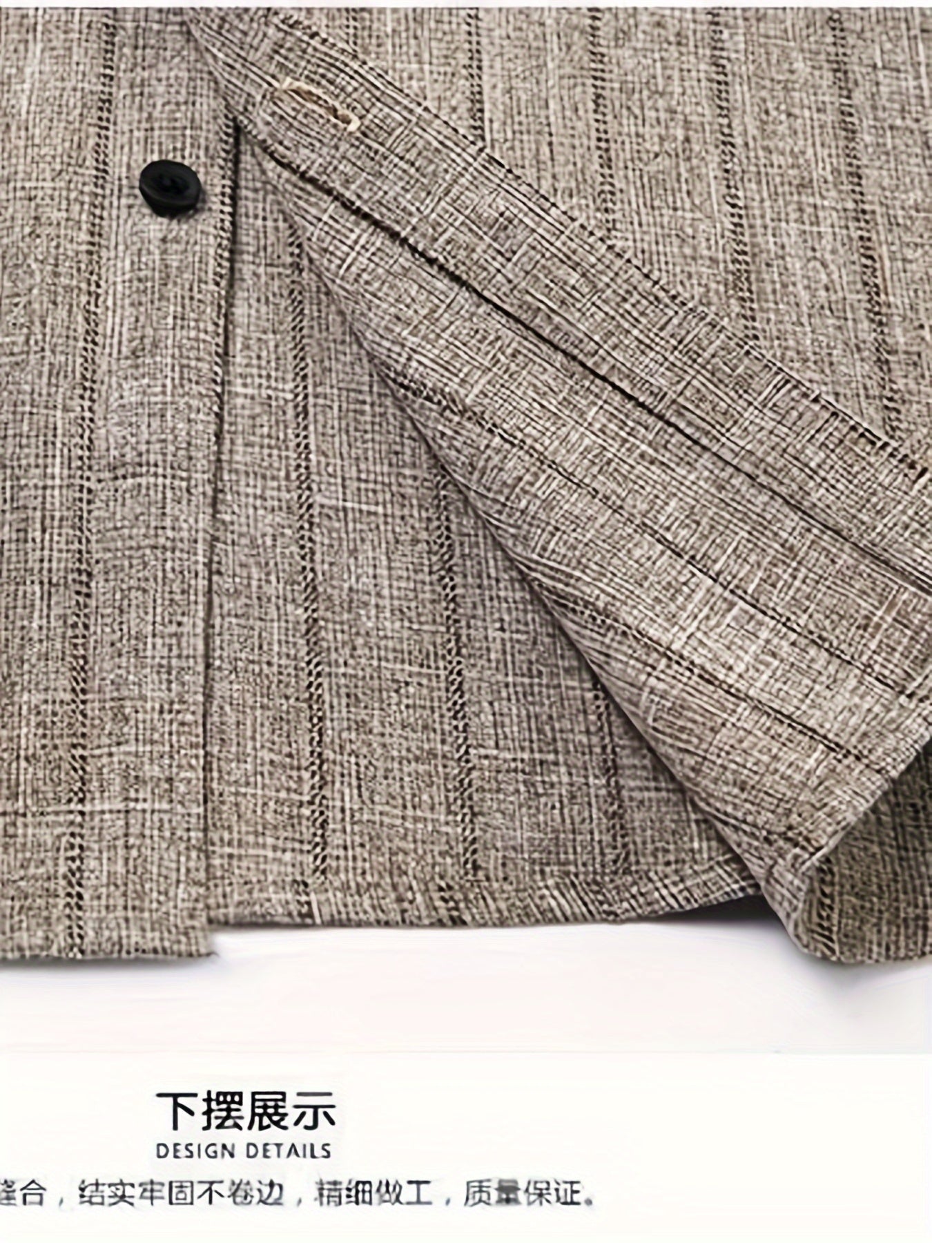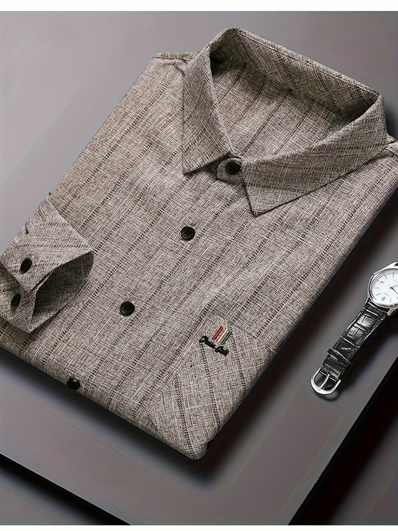 Мужская полосатая рубашка из полиэстера и вискозы с нагрудным карманом, длинный рукав, повседневная с воротником