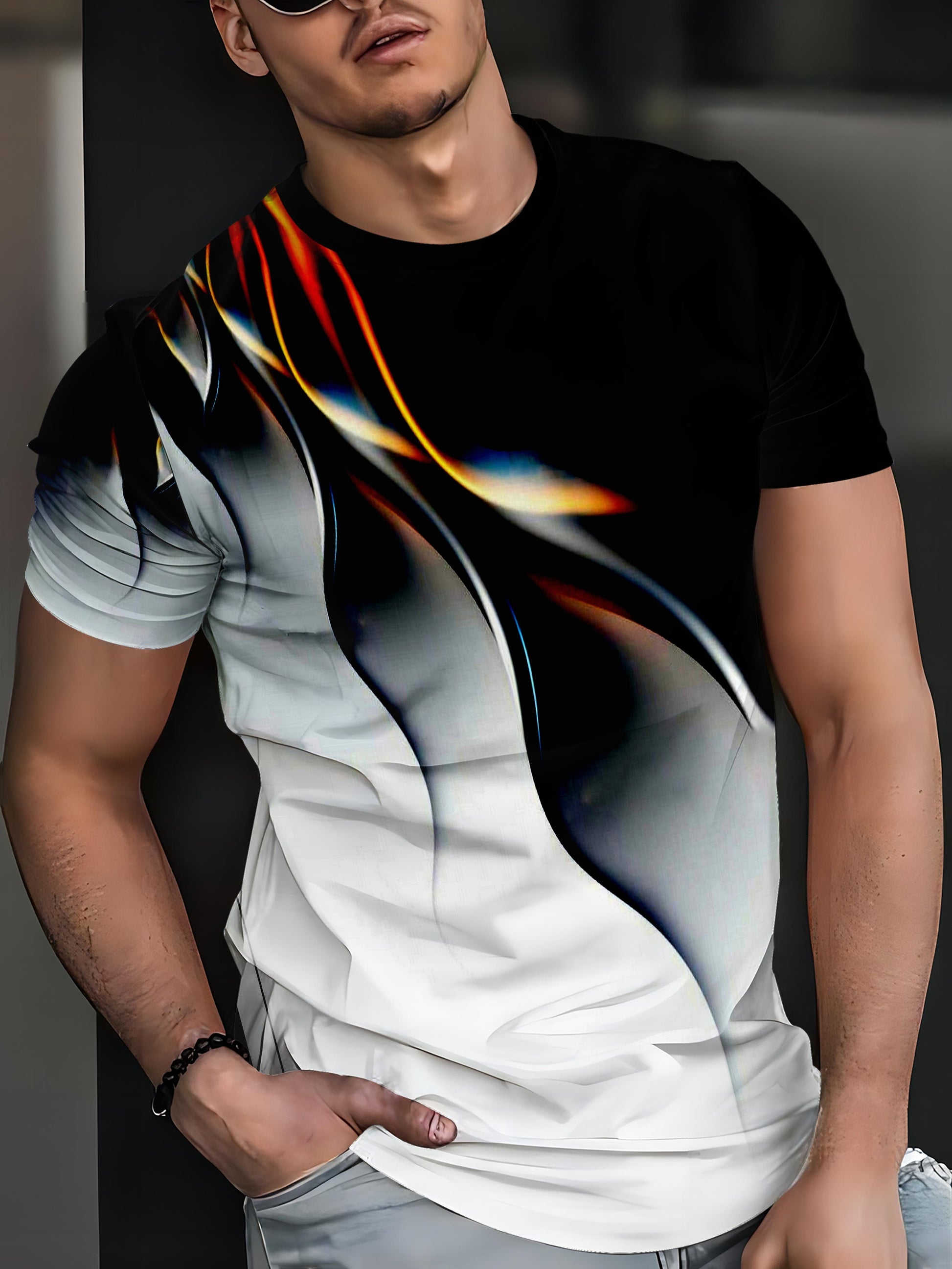 Мужская большая летняя дышащая рубашка с 3D цифровой печатью, короткий рукав, повседневная спортивная фитнес
