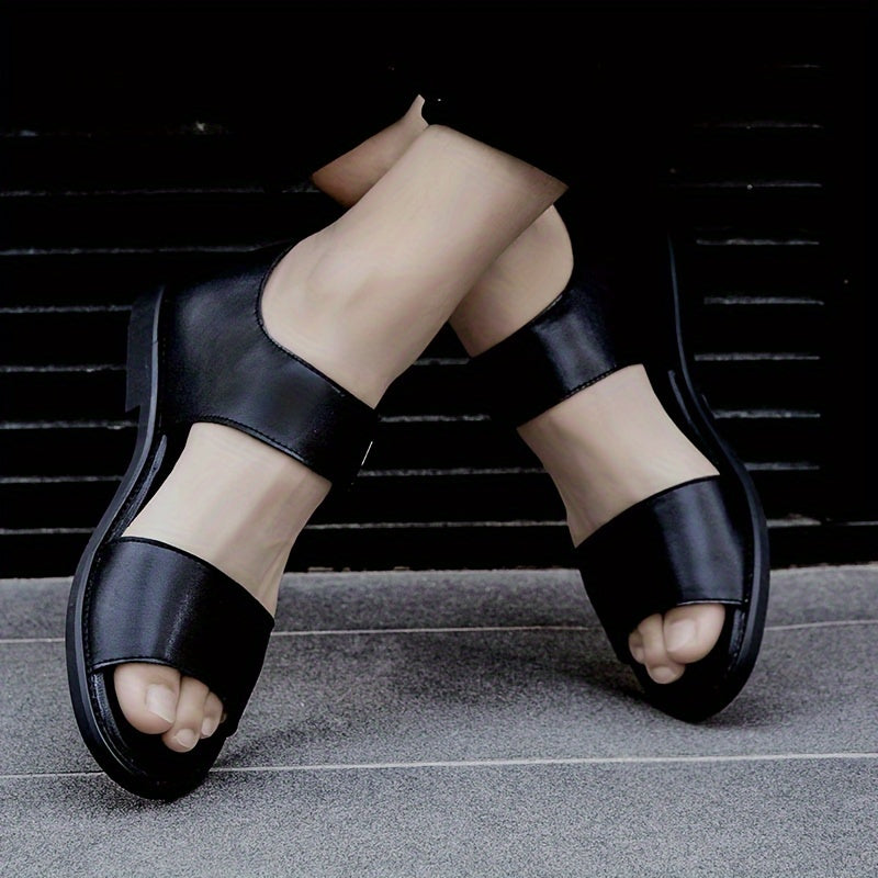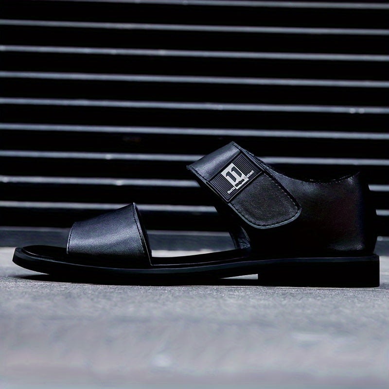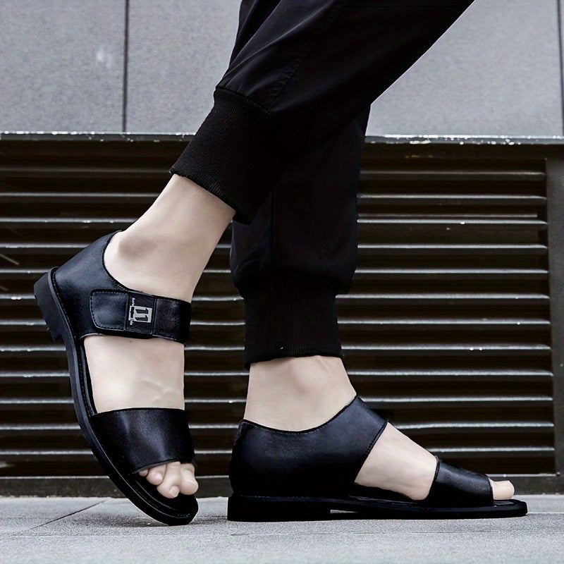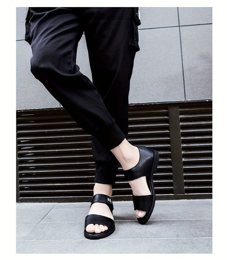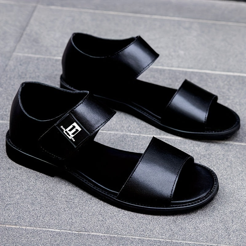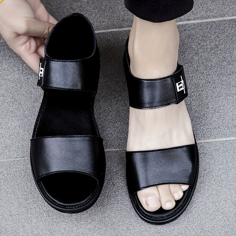 Мужские летние повседневные сандалии из разделанной кожи, резиновая подошва, застежка-липучка, однотонный цвет