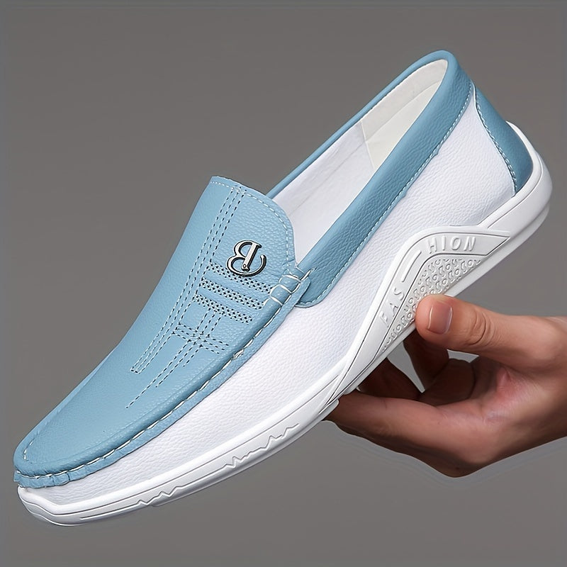 Мужские мокасины с цветными блоками, без шнурков, верх из микрофибры, нескользящая резиновая подошва, повседневная обувь