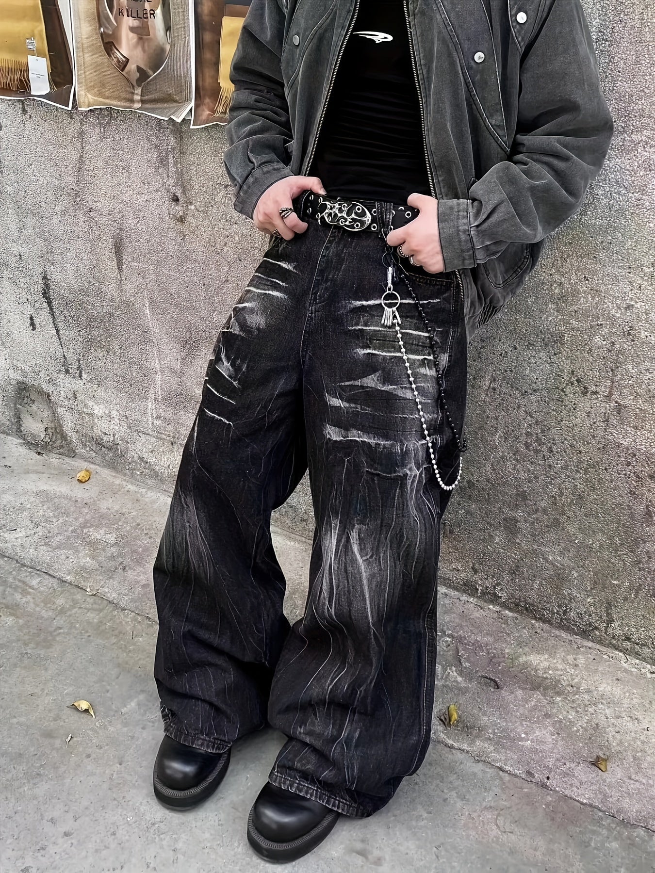 Мужские широкие джинсы с широкими штанинами в уличном стиле свободного кроя, неэластичные, для всех сезонов