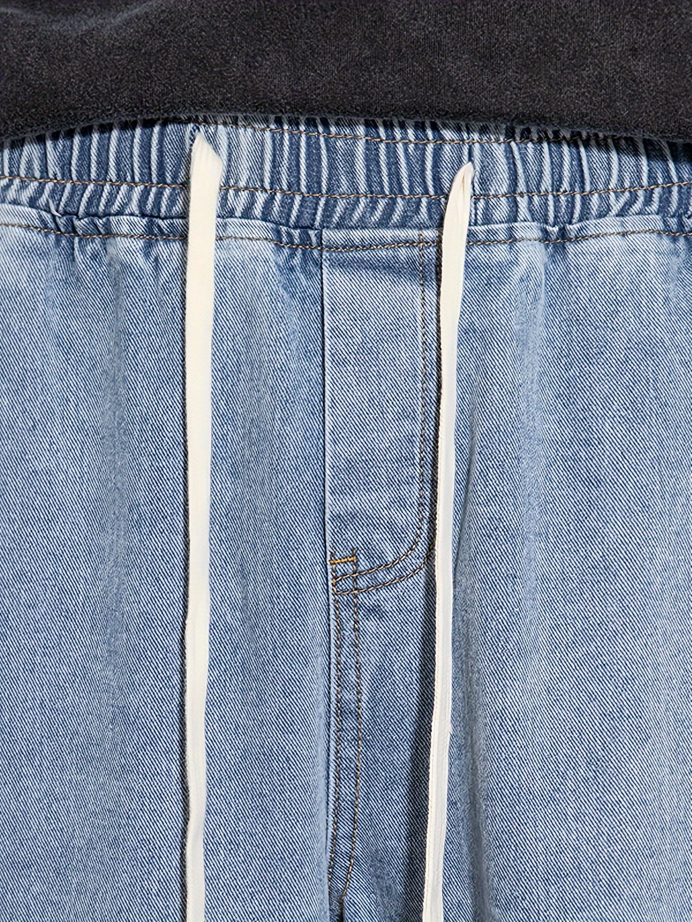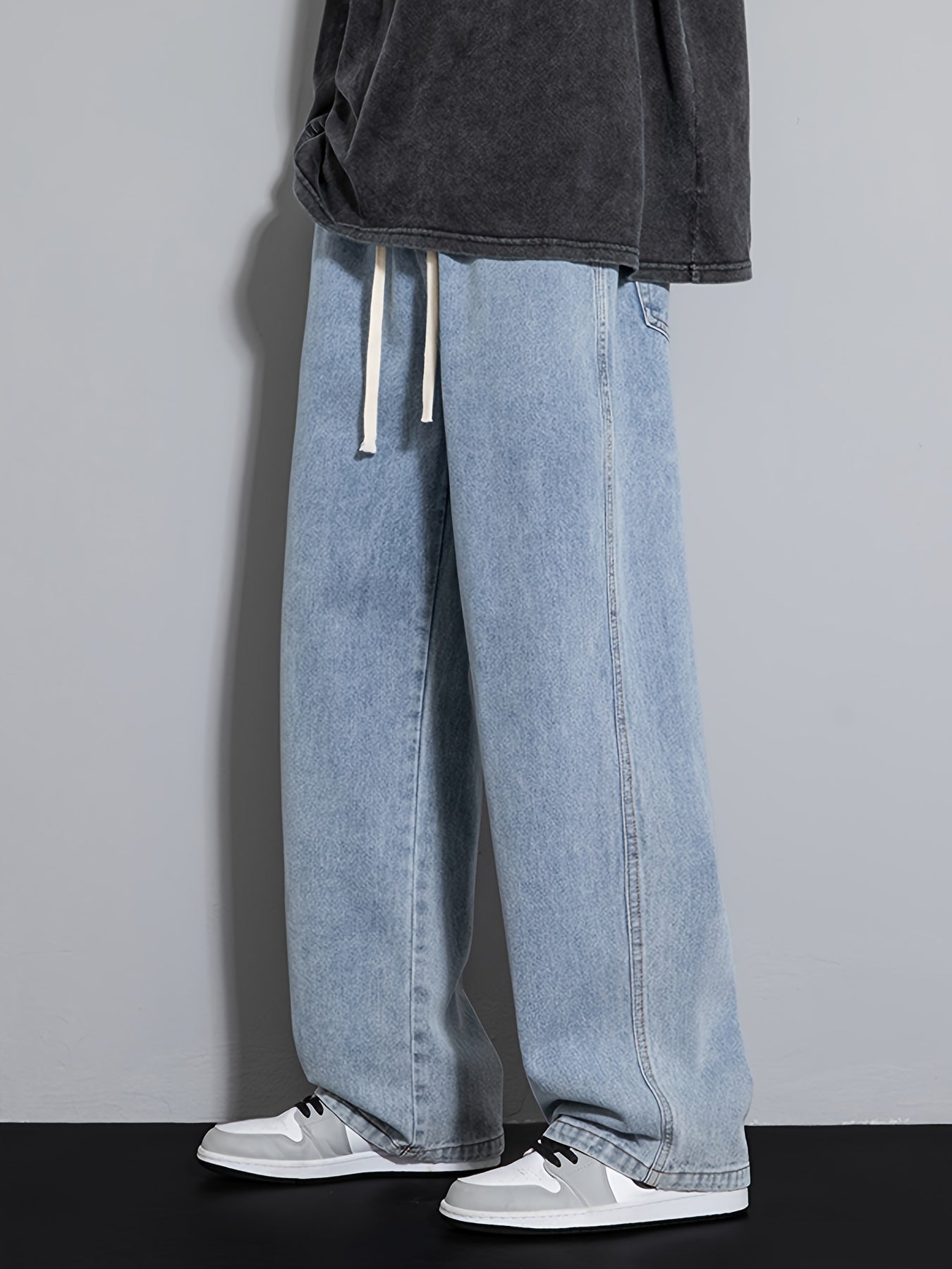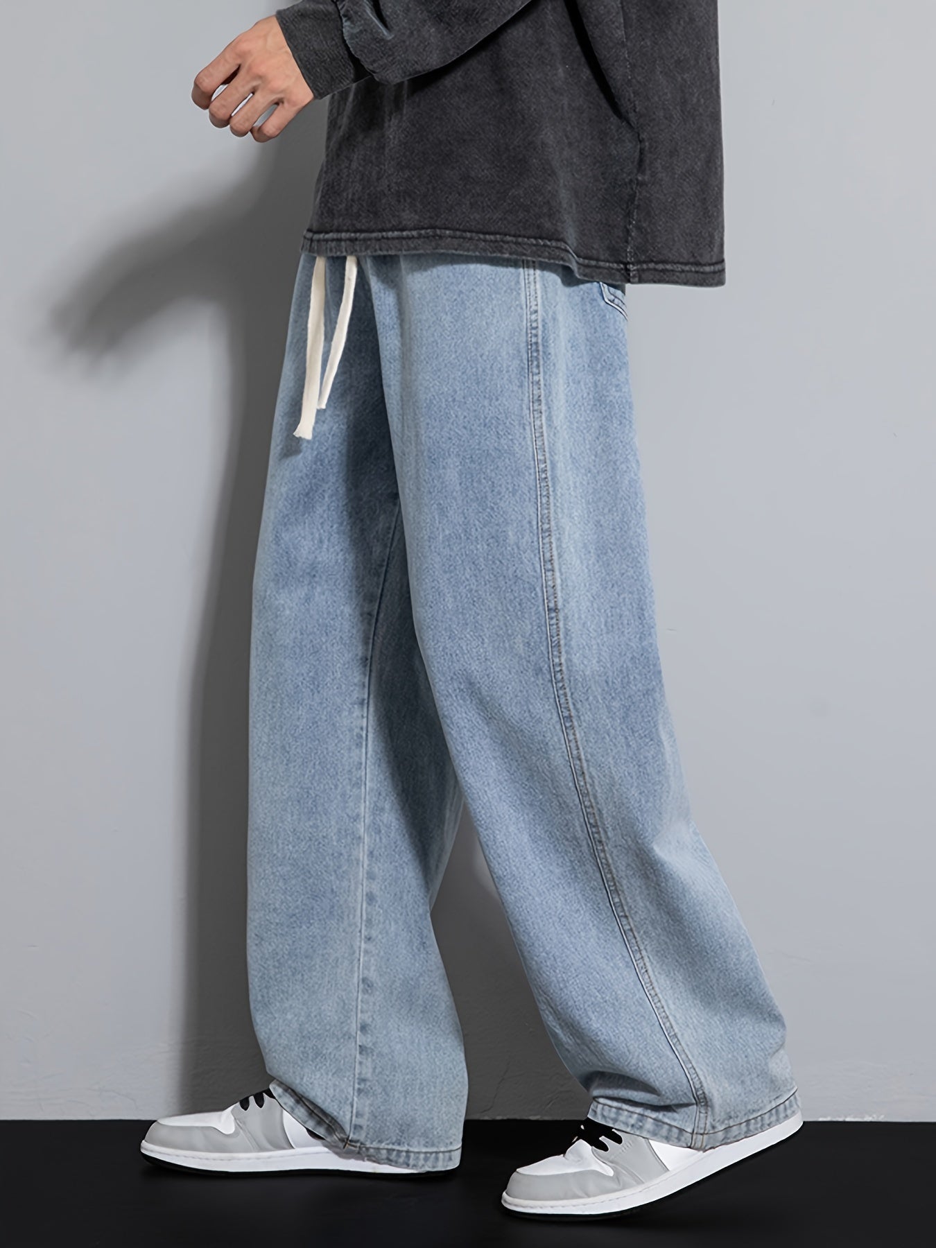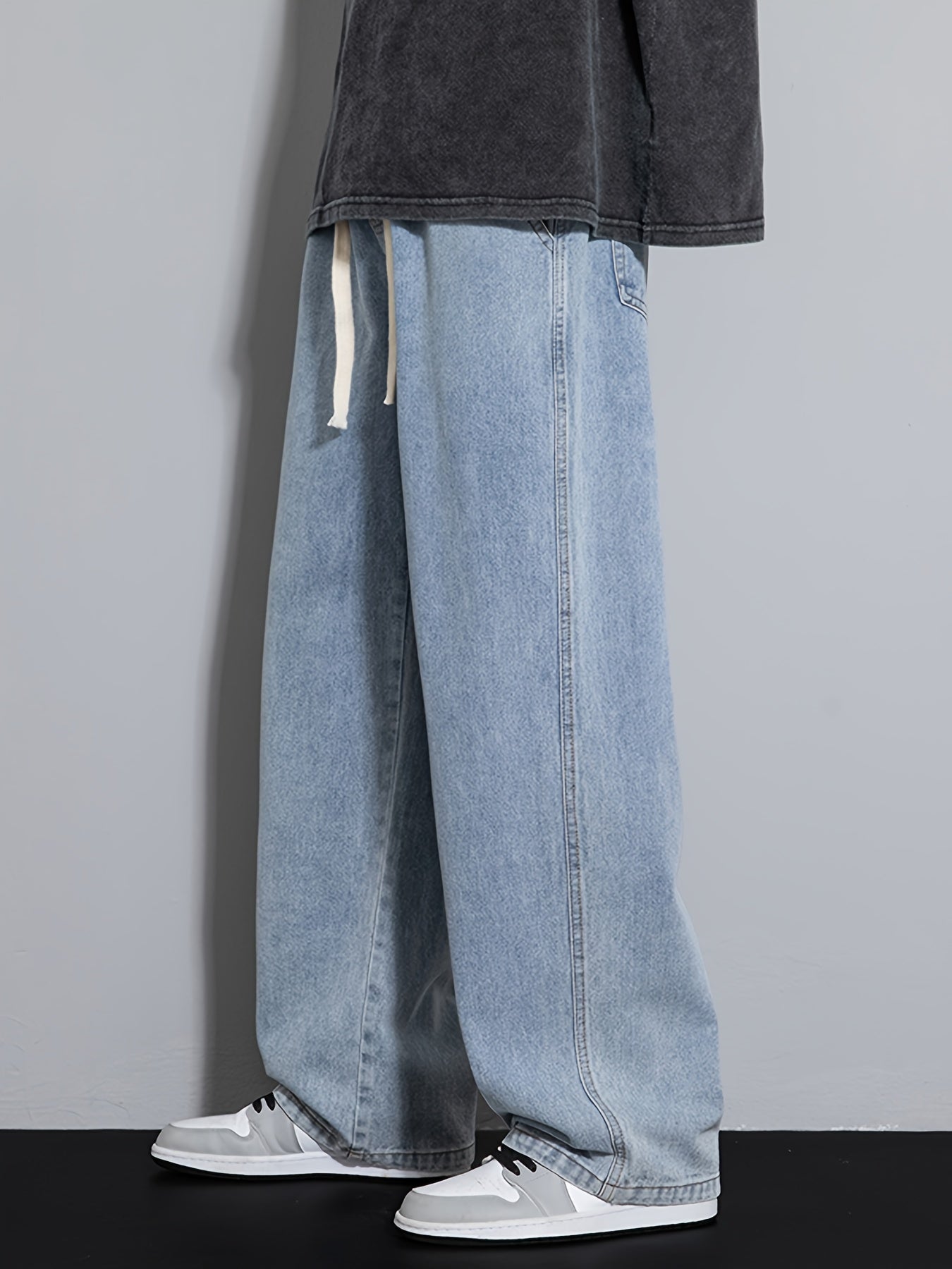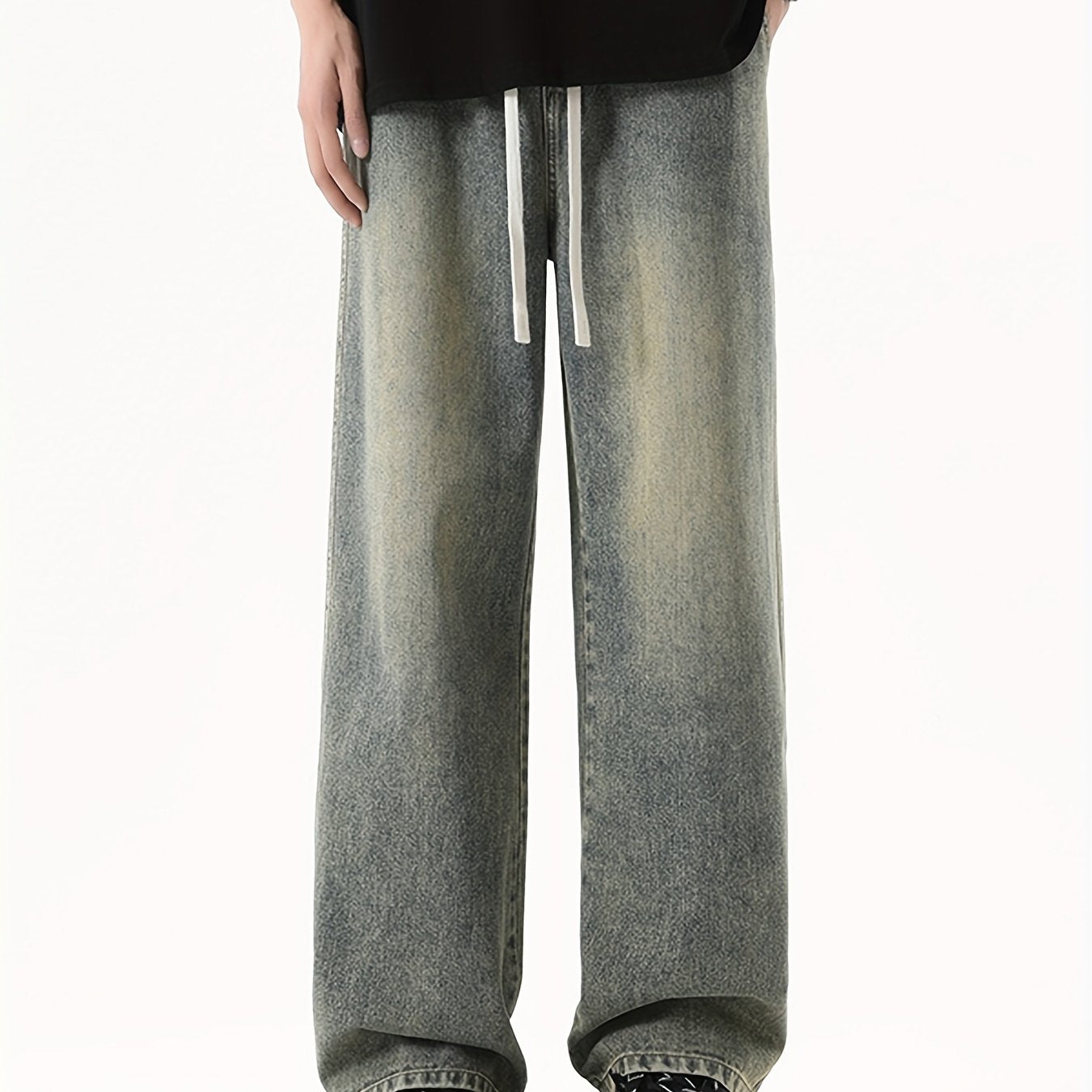 Мужские широкие джинсы с шнурком на поясе, свободный крой, уличная мода, стиль хип-хоп