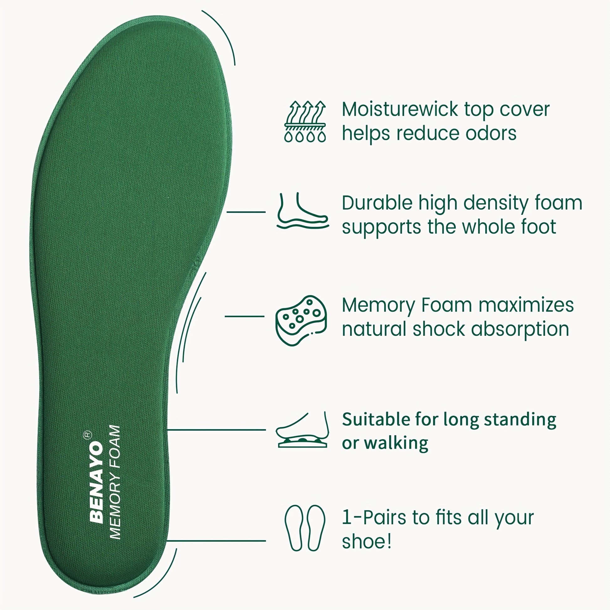 Mens Womens Memory Foam Shoe Inserts Breathable Shock Absorbing Cushioned