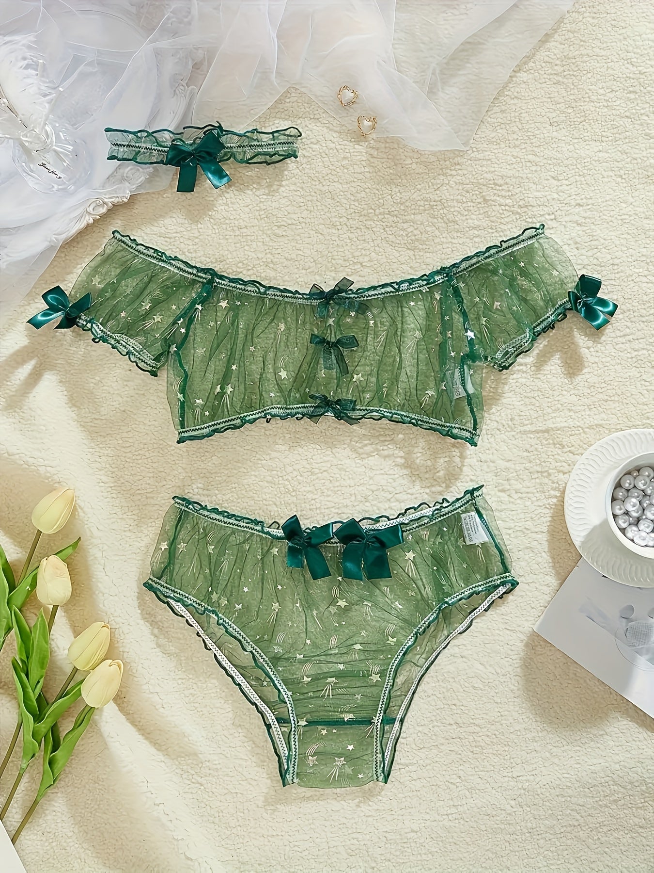 Комплект домашней одежды из трёх предметов с принтом в виде сетки-звезды для женщин