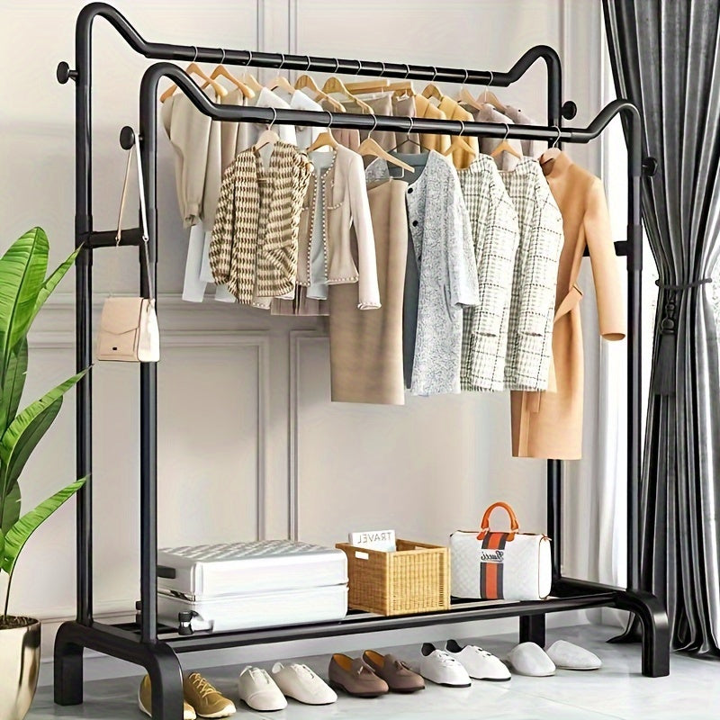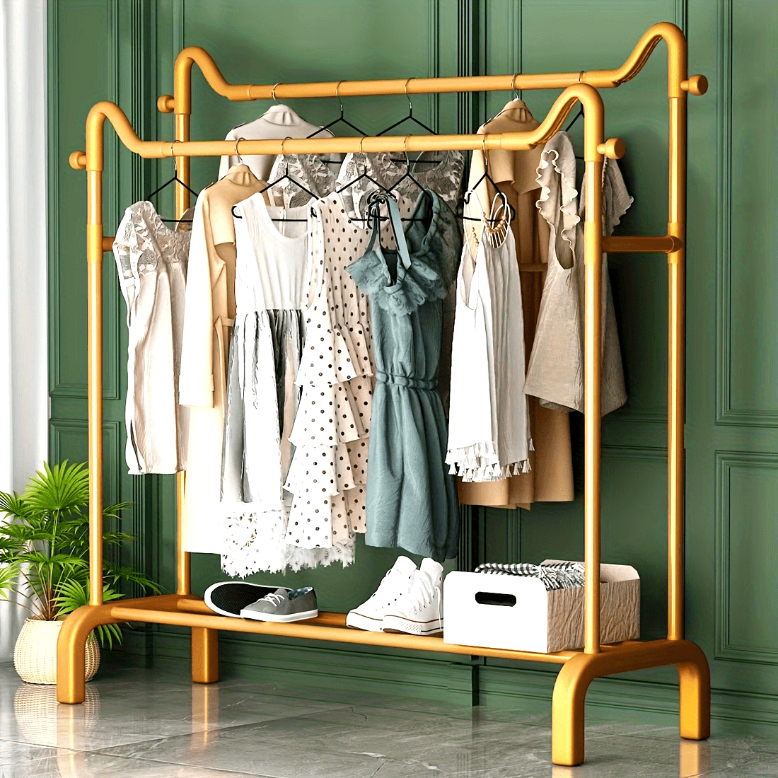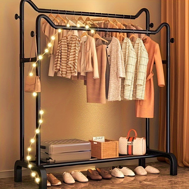 Металлическая вешалка для одежды со складной конструкцией и двумя концами для вешалок для шляп. Идеально подходит для организации одежды, шляп, обуви и аксессуаров в домашней спальне. Экономит место и не требует сборки.