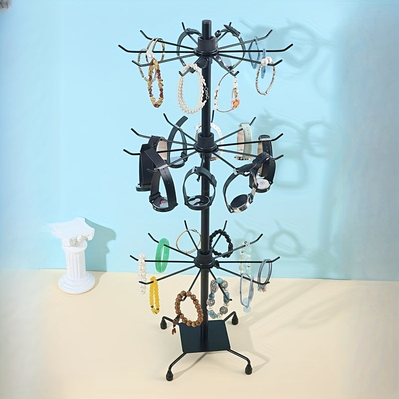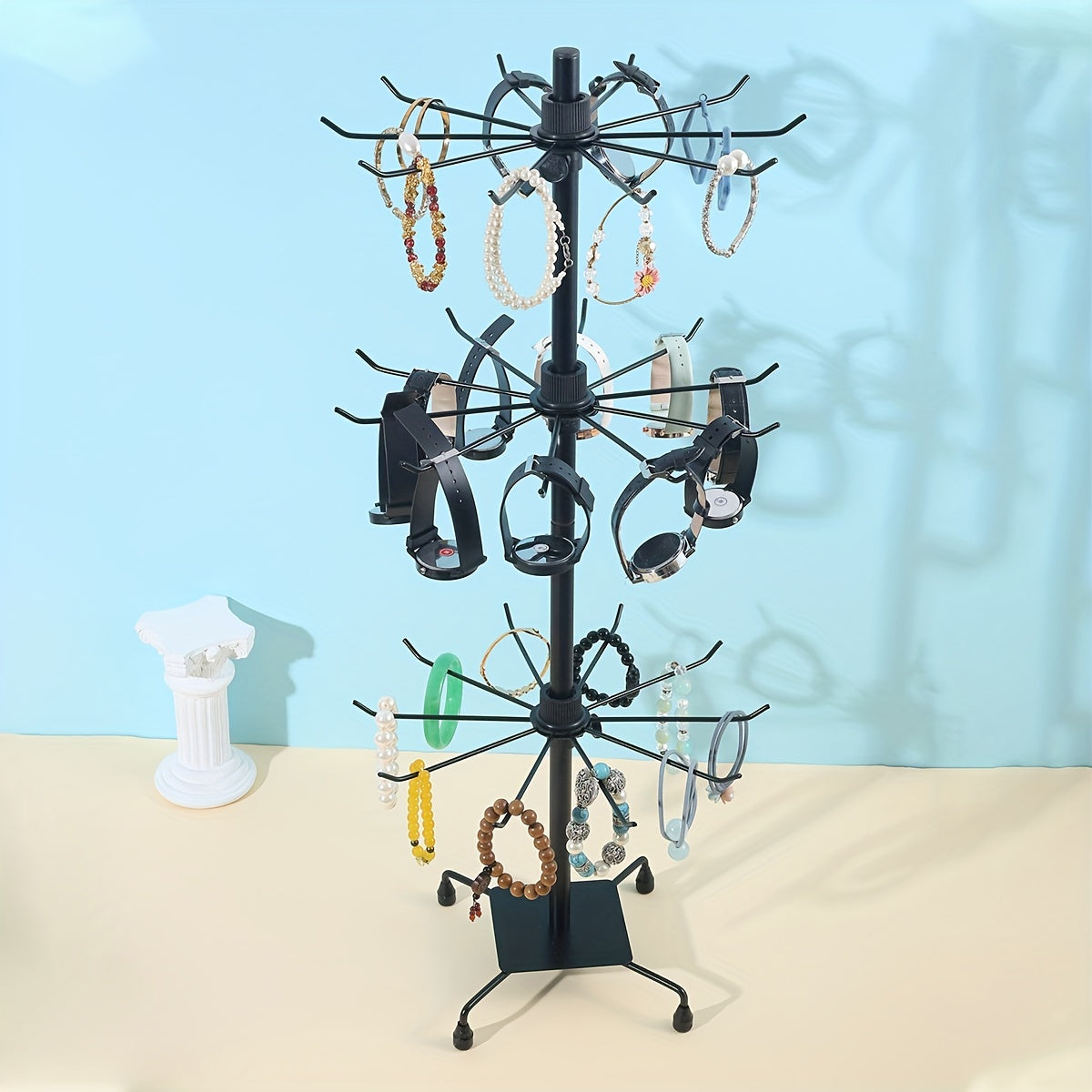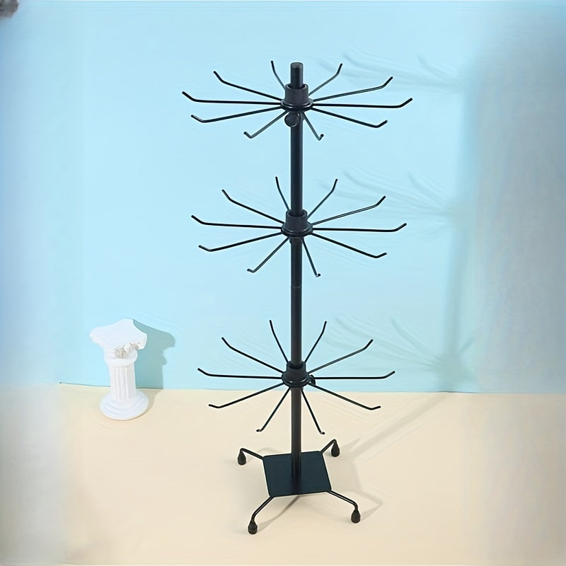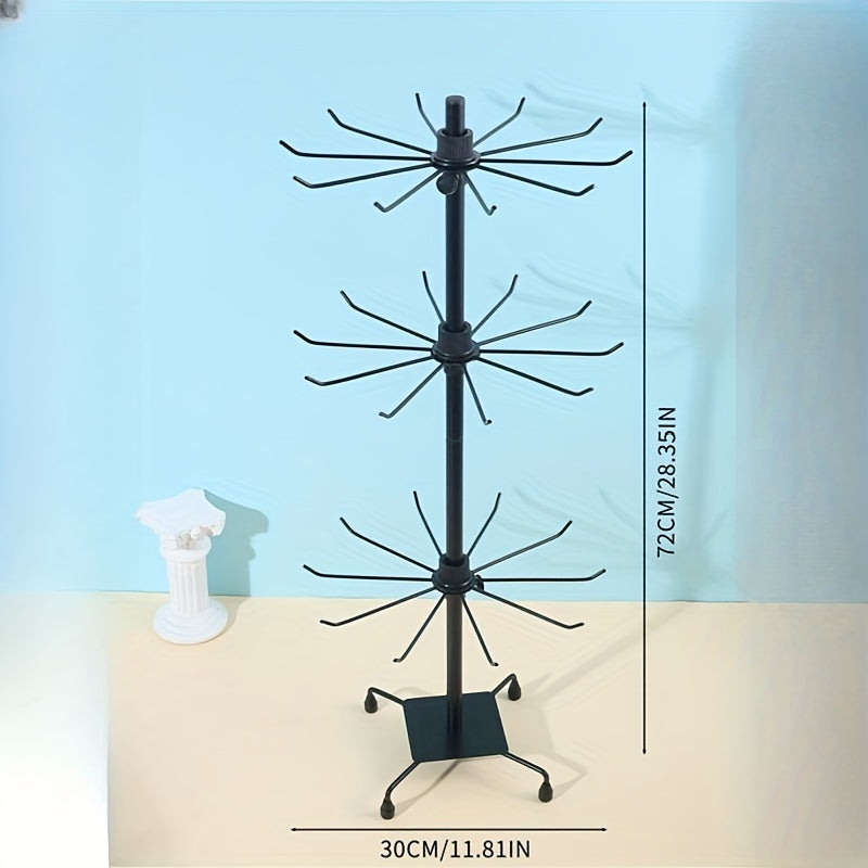Металлическая вешалка для украшений с тремя вращающимися слоями для хранения ожерелий, серег, колец