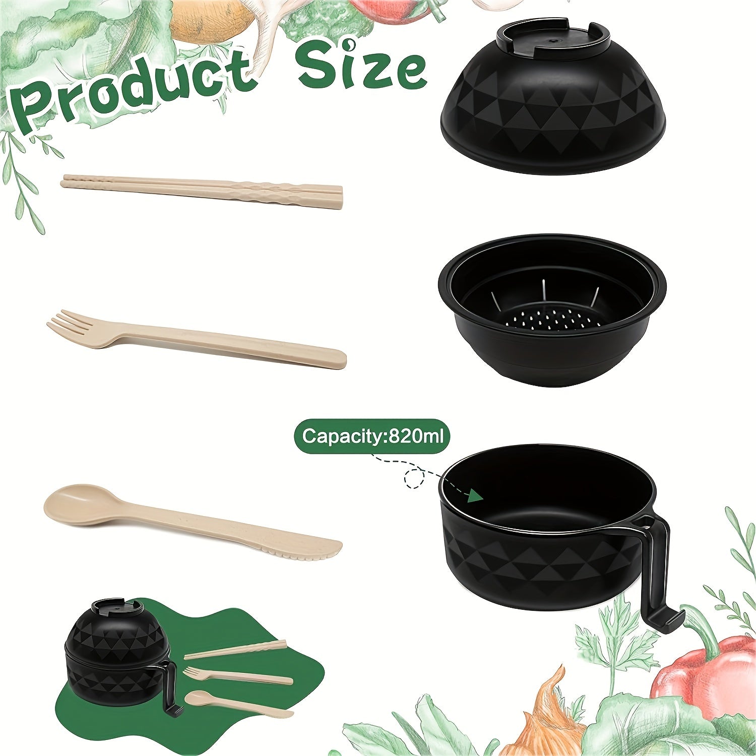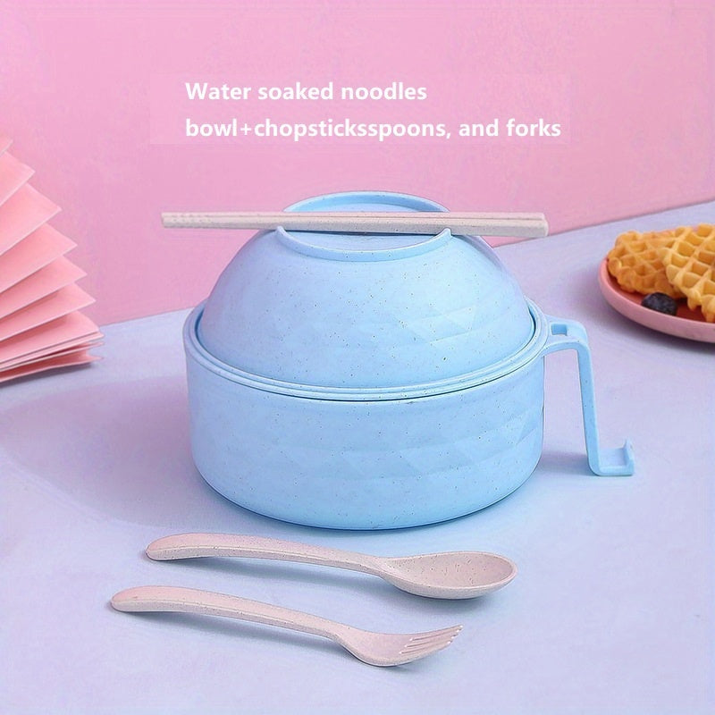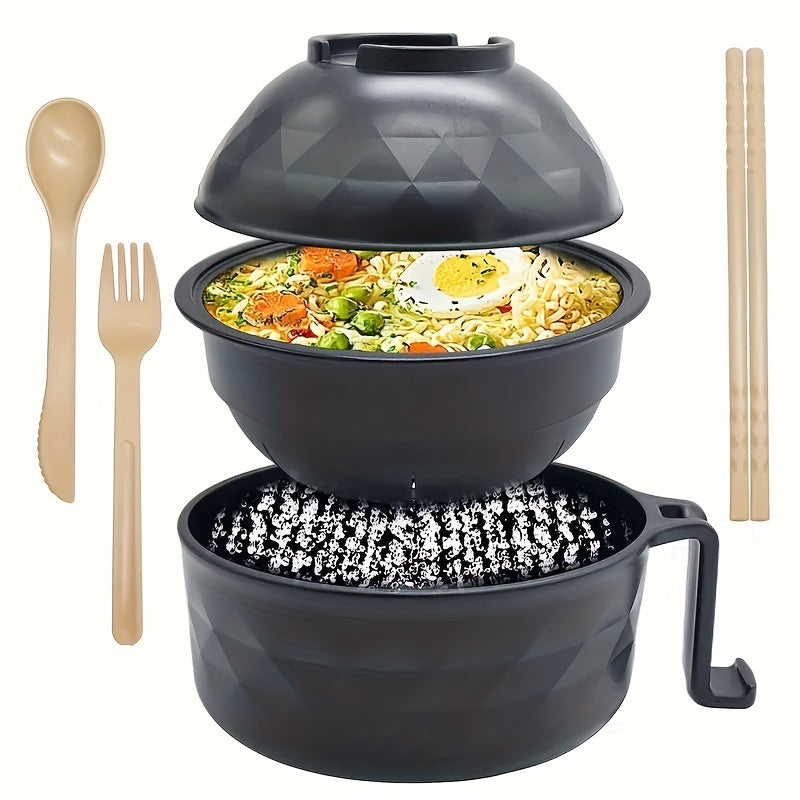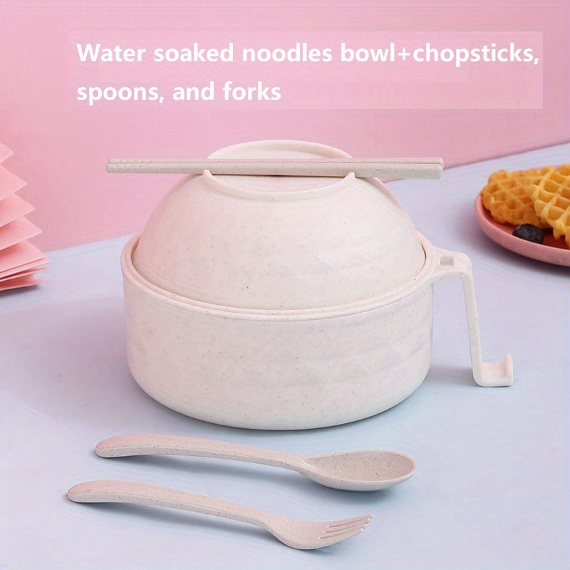 Набор для приготовления рамена, безопасный для микроволновки, с ручкой, 820 мл, включает ложку, палочки и вилку