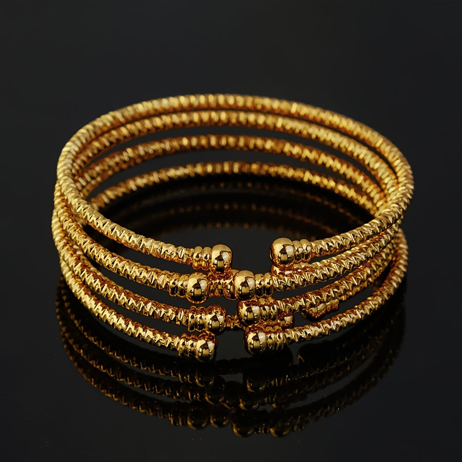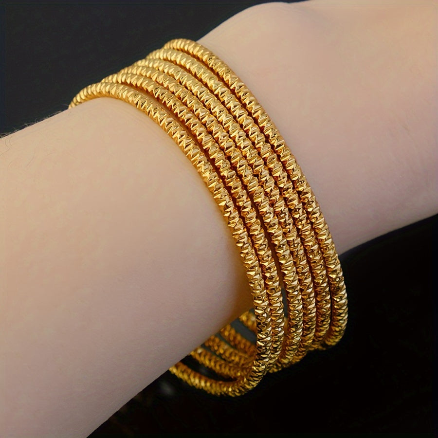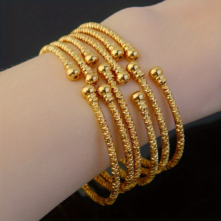 Браслет с двойными бусинами в восточном стиле - 6 штук, классические золотые свадебные украшения из Дубая, идеальный арабский подарок для женщин - отлично подходит для вечеринок и повседневной носки