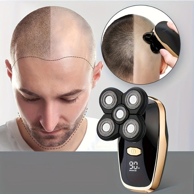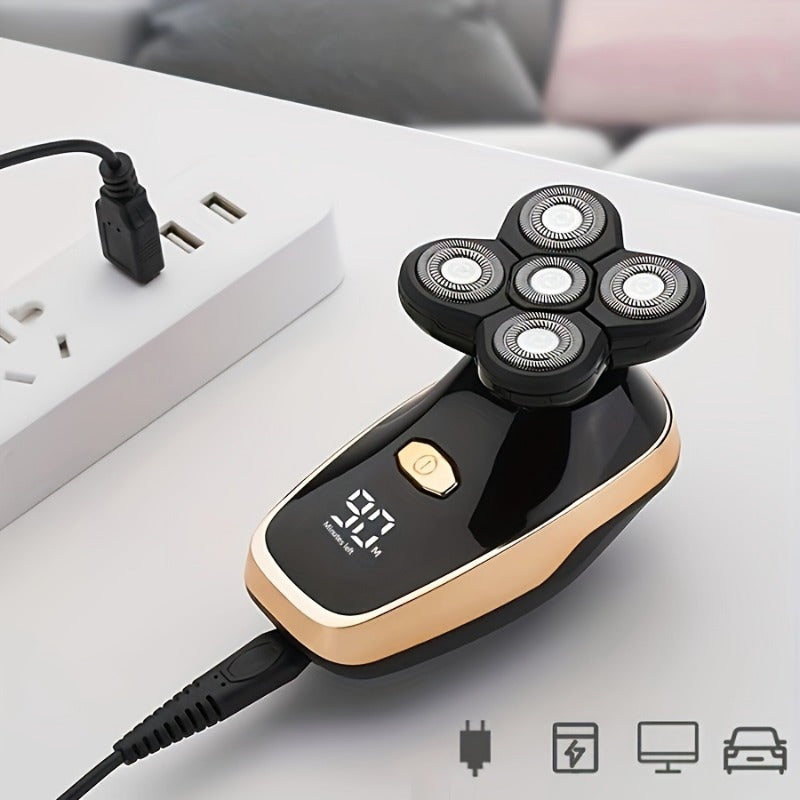 Беспроводная электробритва с LED-дисплеем, перезаряжаемая, для брития головы, 5 лезвий, USB, эргономичная