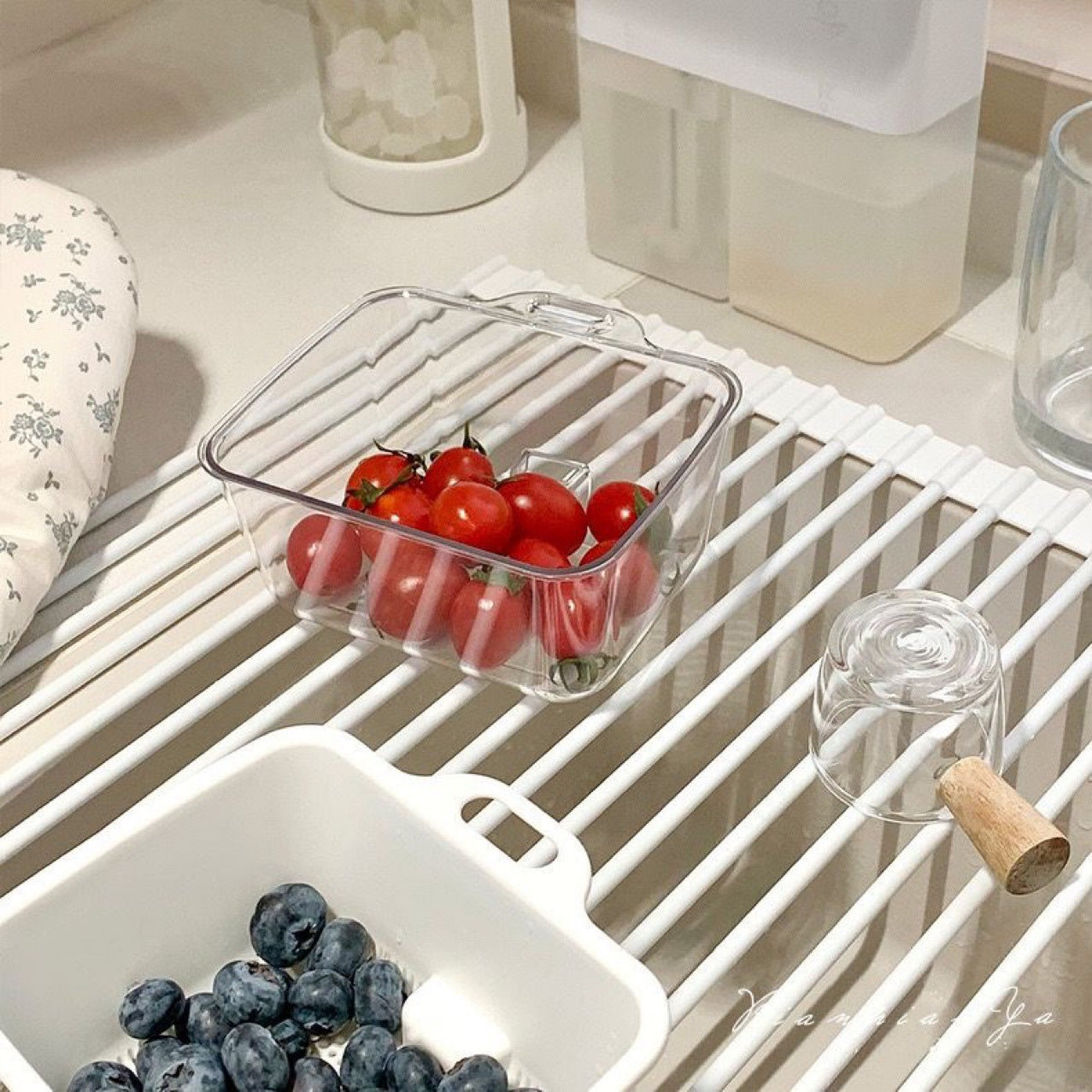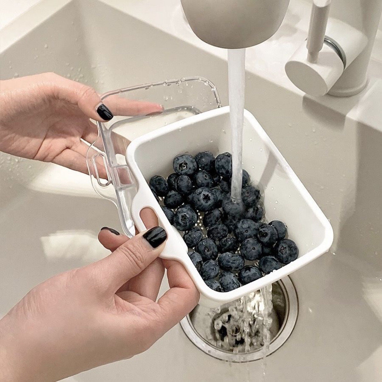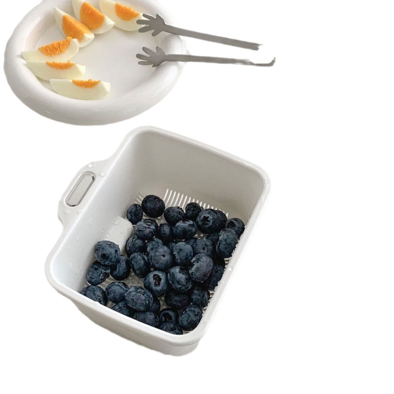 Мини-двойной корзина для слива из ABS-пластика, безопасна для продуктов, фруктов, овощей, риса