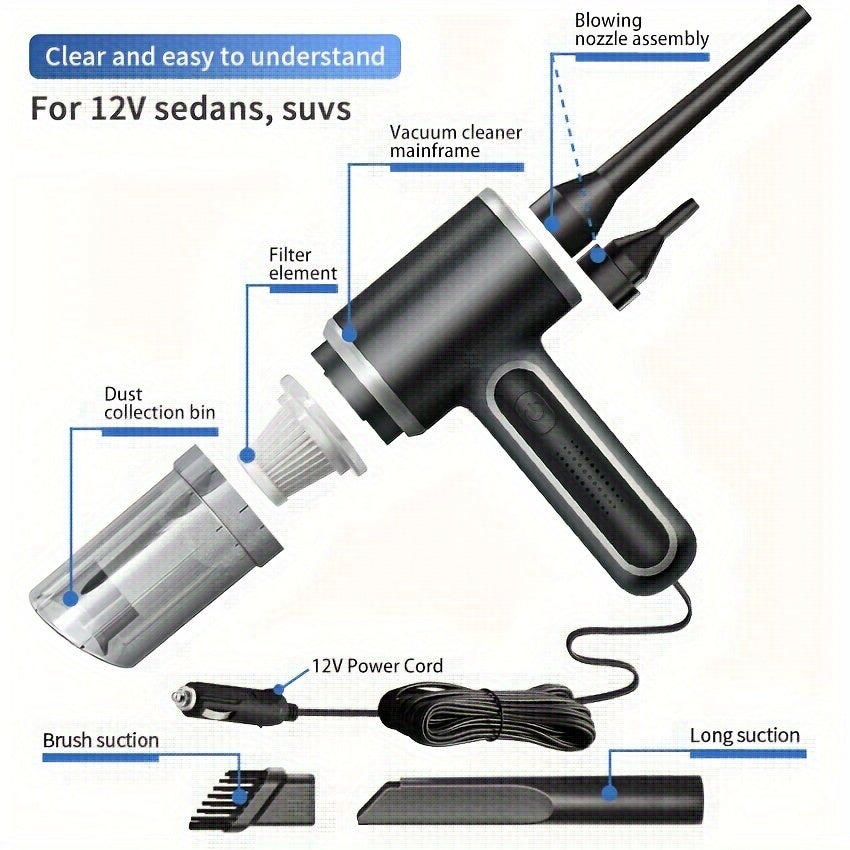 Мини портативный автомобильный пылесос 12В с мощным всасыванием, легкий сборщик пыли