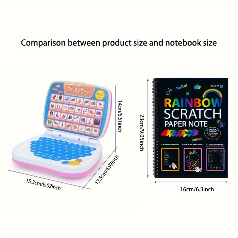 Мини-ноутбук-игрушка для детей - Образовательная и развлекательная головоломка, легко переносимая, без батареек, доступна в розовом или синем цвете.