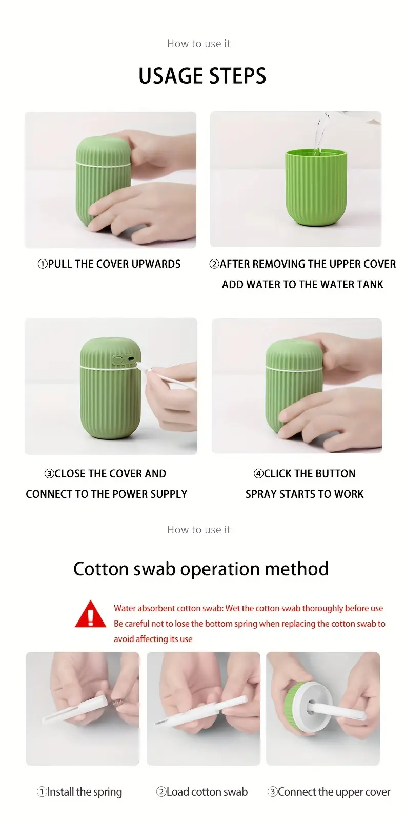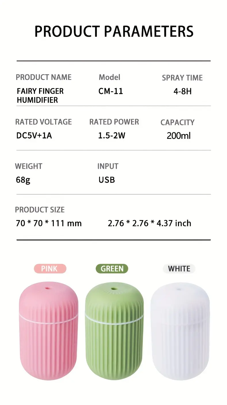 Мини-портативный USB-увлажнитель с ночником, ароматерапией, 200 мл