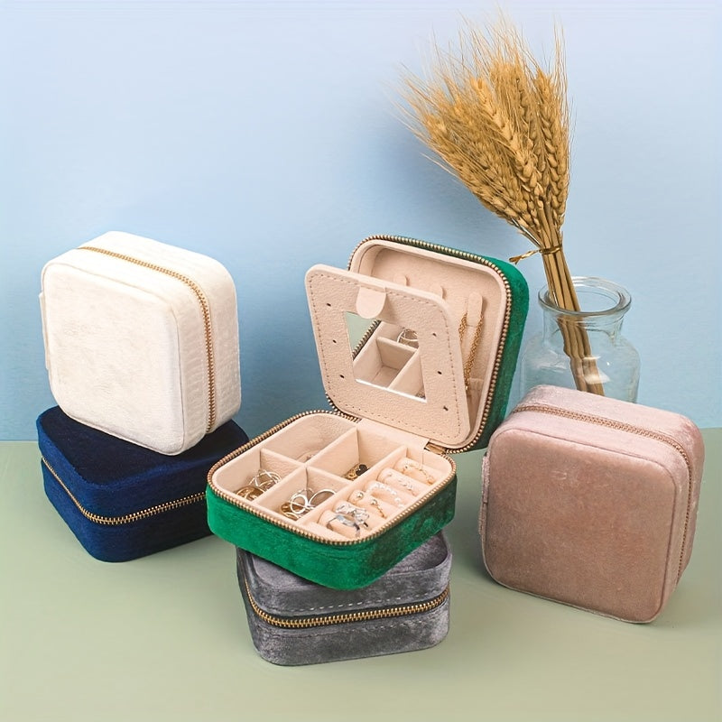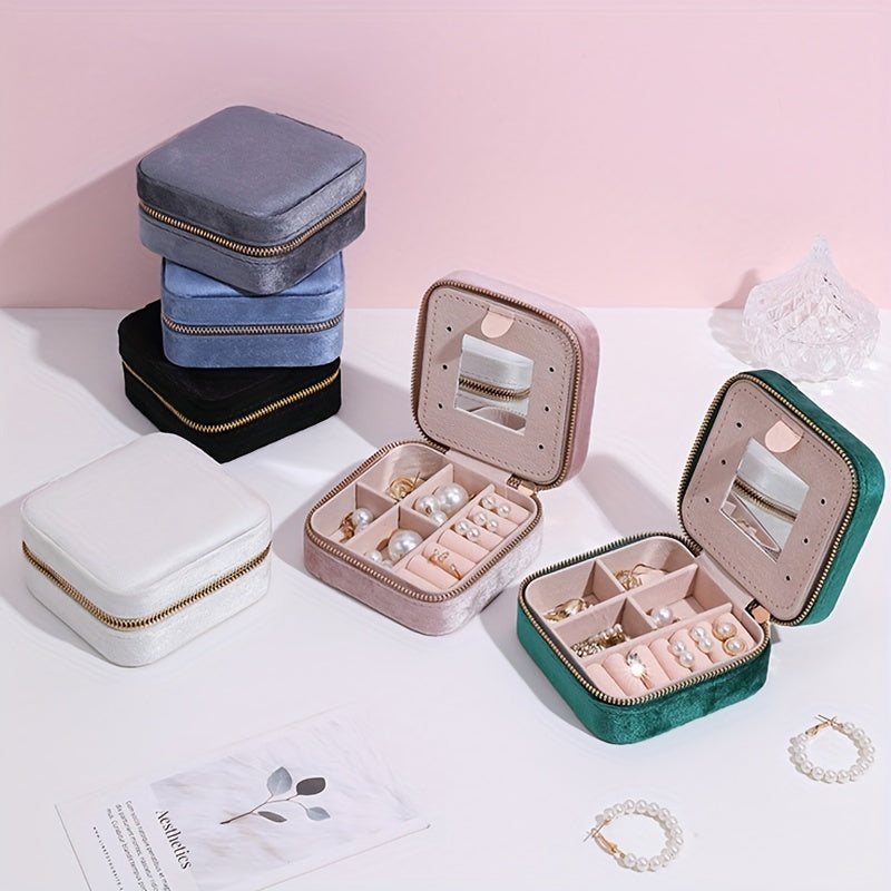 Мини переносная шкатулка для украшений с зеркалом для колец, ожерелий и гвоздиков