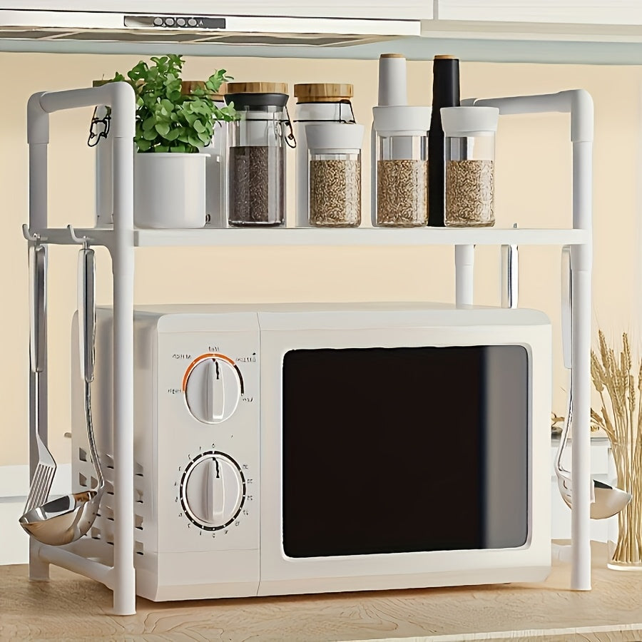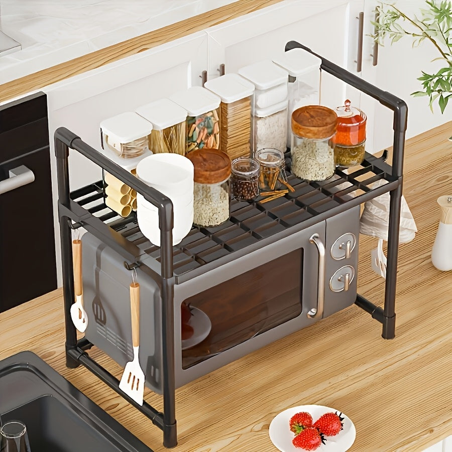Регулируемая металлическая кухонная полка с крючками для микроволновой печи и хранения специй