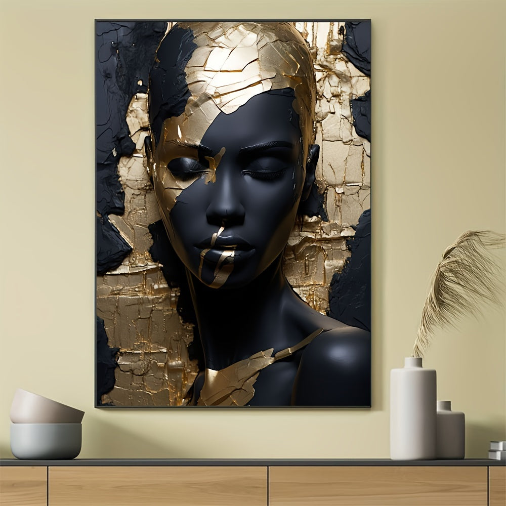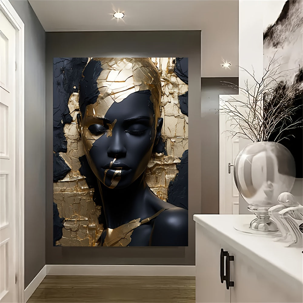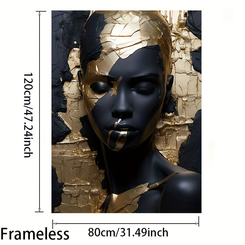 Современное настенное искусство из холста с изображением портрета в технике кинцуги с золотым напылением, абстрактное лицо женщины на черном фоне, 80x120 см
