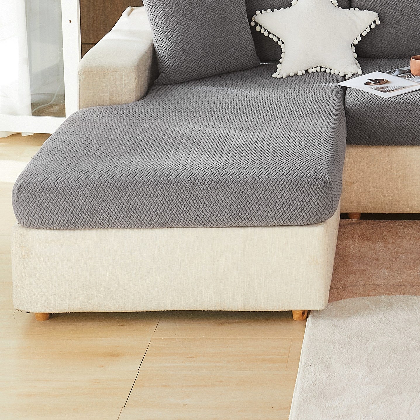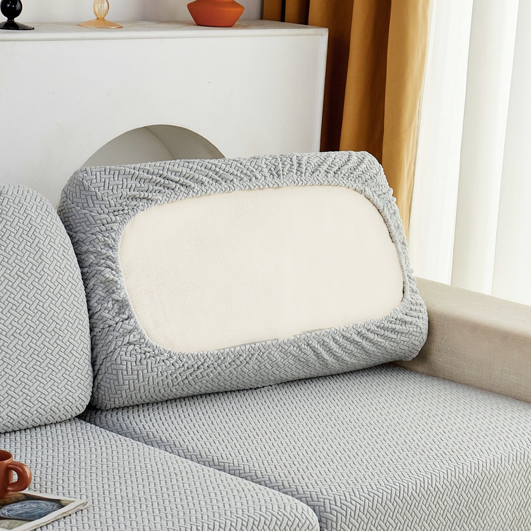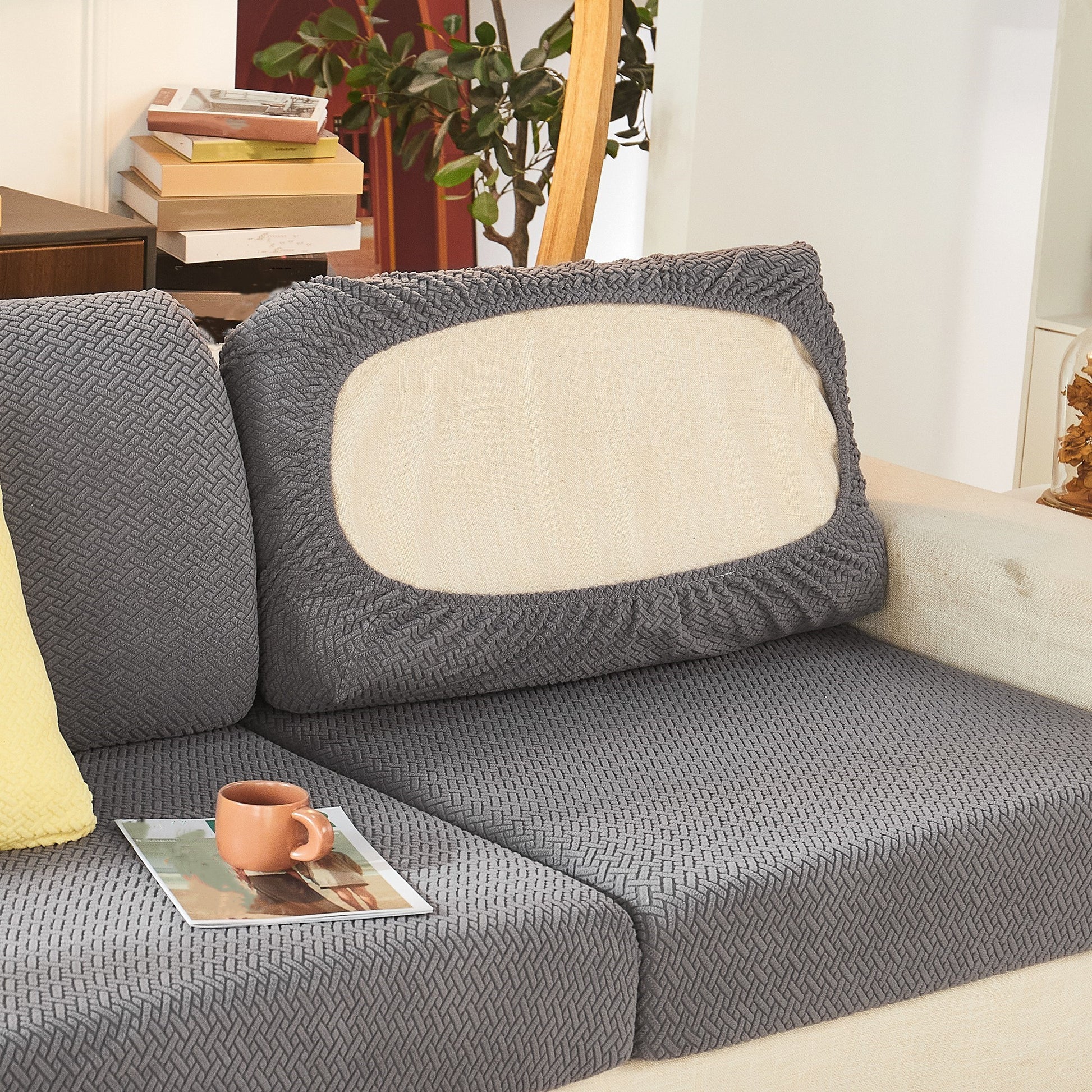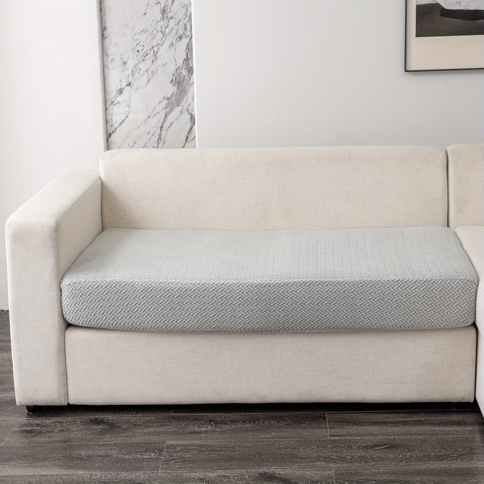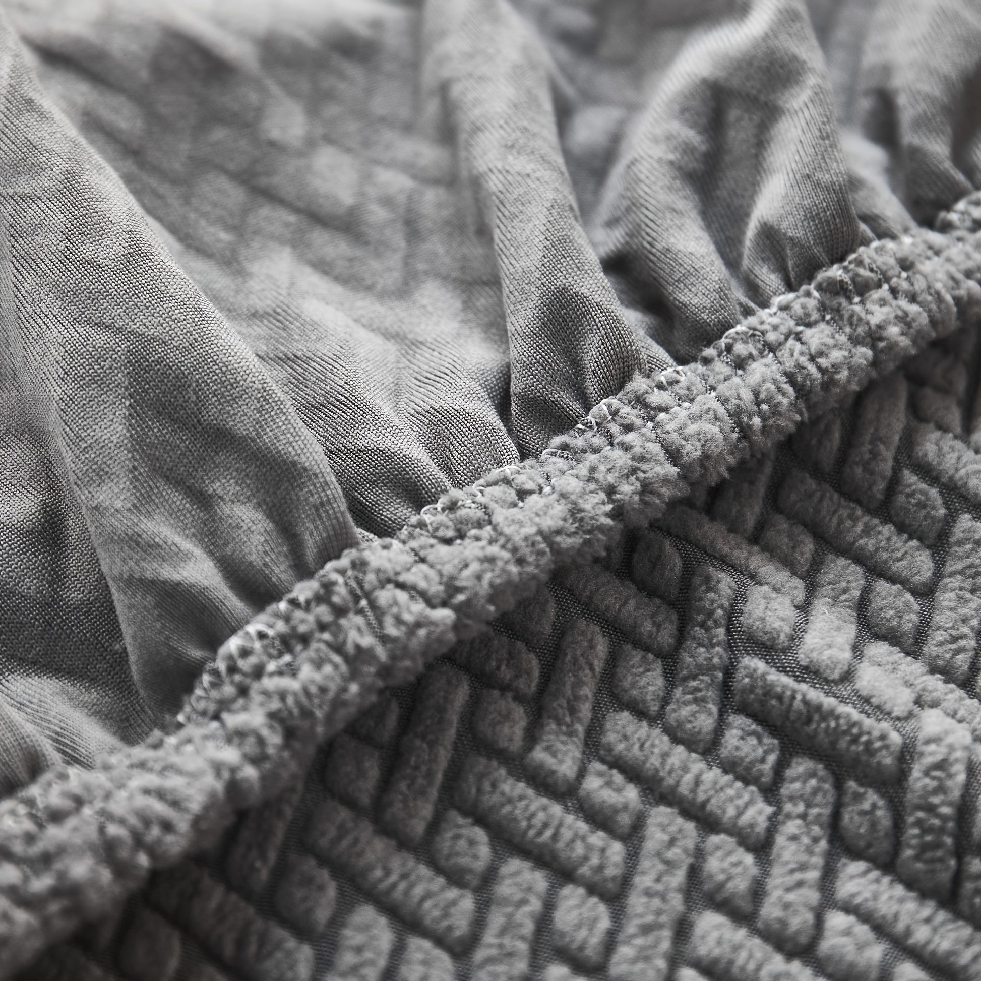 Современный серый чехол для подушки дивана с эластичной посадкой и мягкой текстурированной тканью. Машинная стирка для повышения комфорта в гостиной.