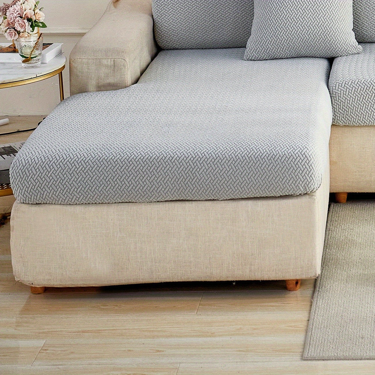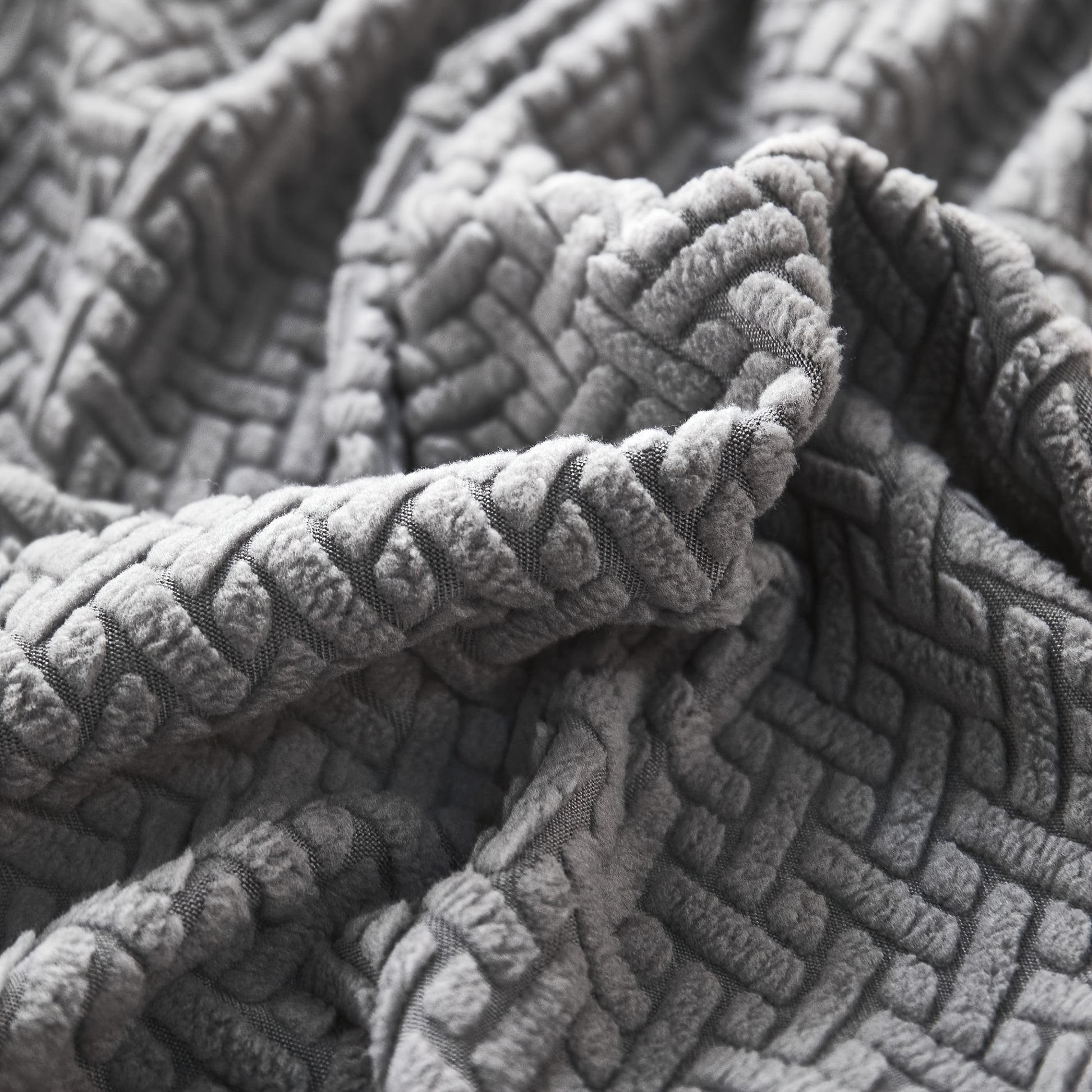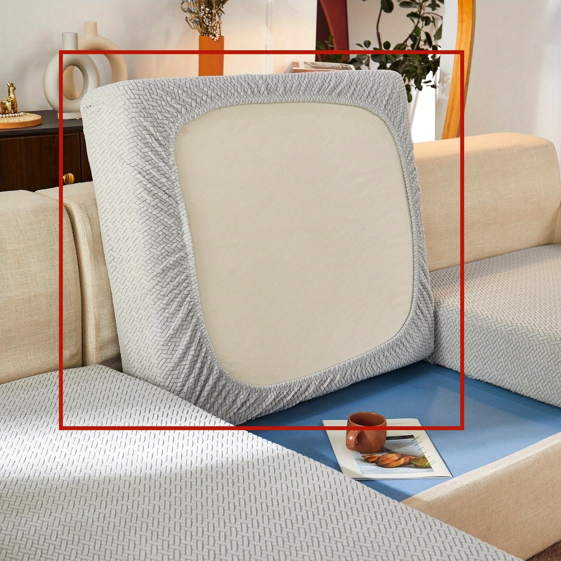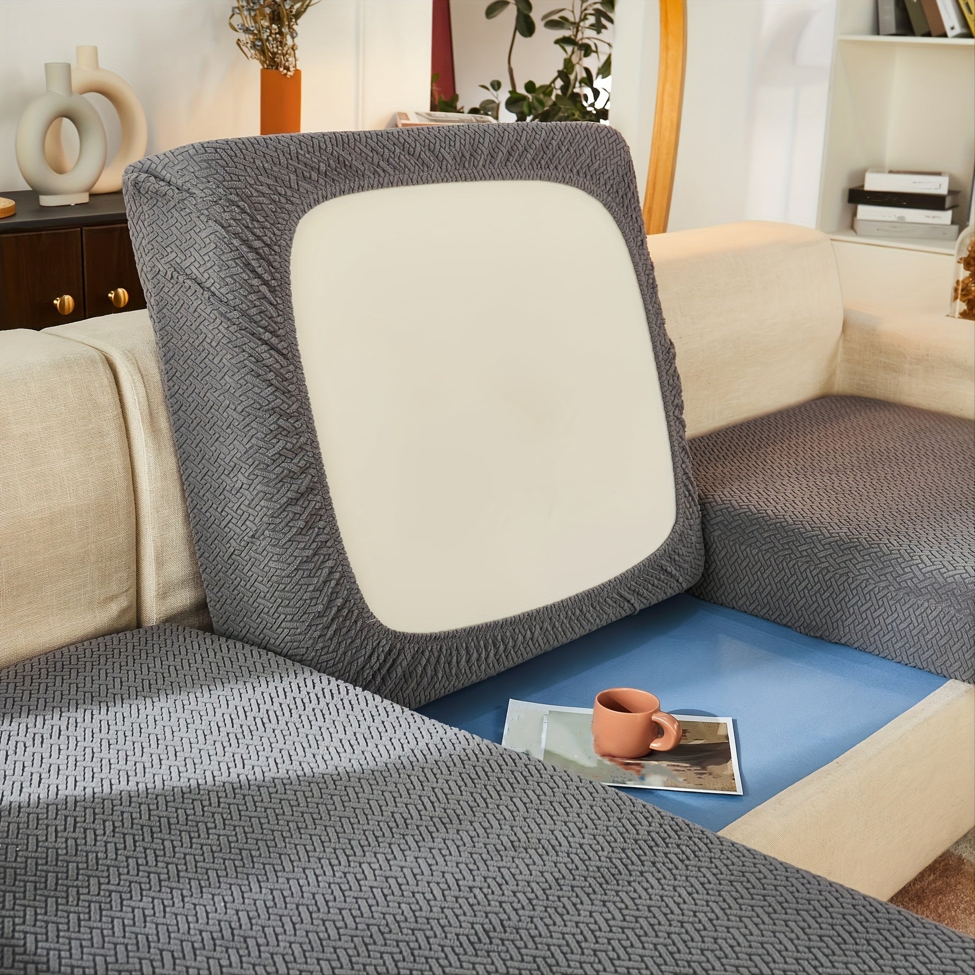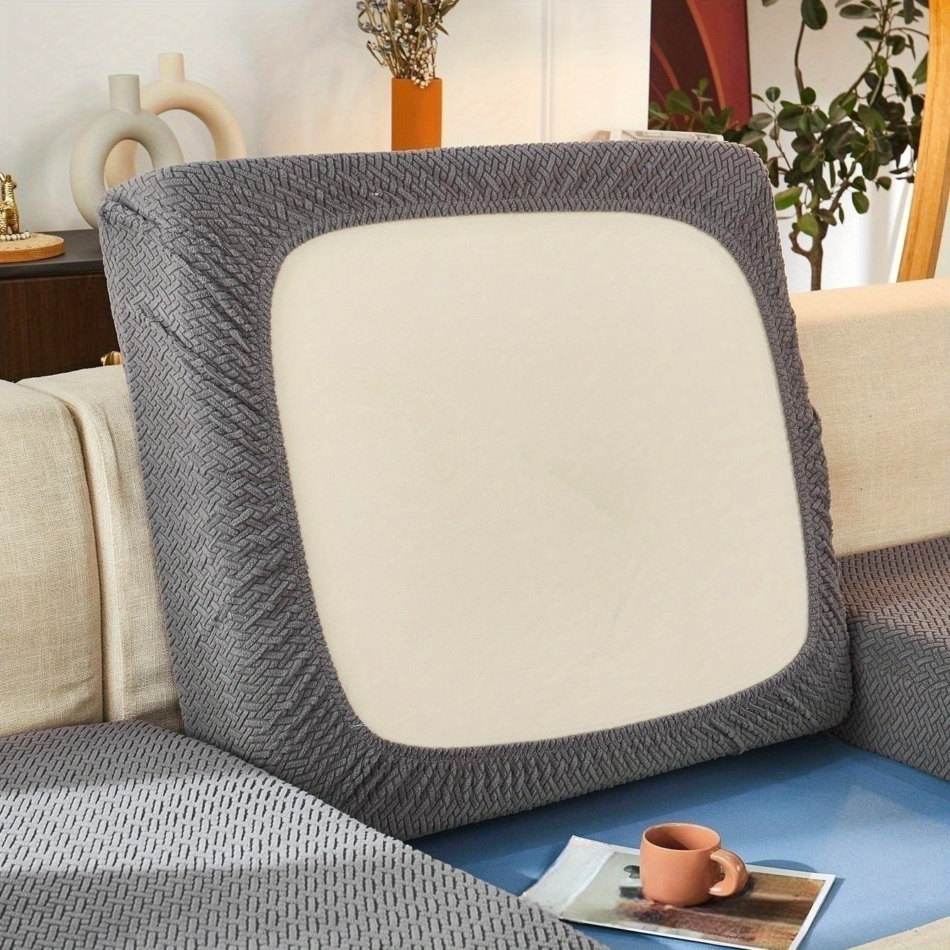 Современный серый чехол для подушки дивана с эластичной посадкой и мягкой текстурированной тканью. Машинная стирка для повышения комфорта в гостиной.