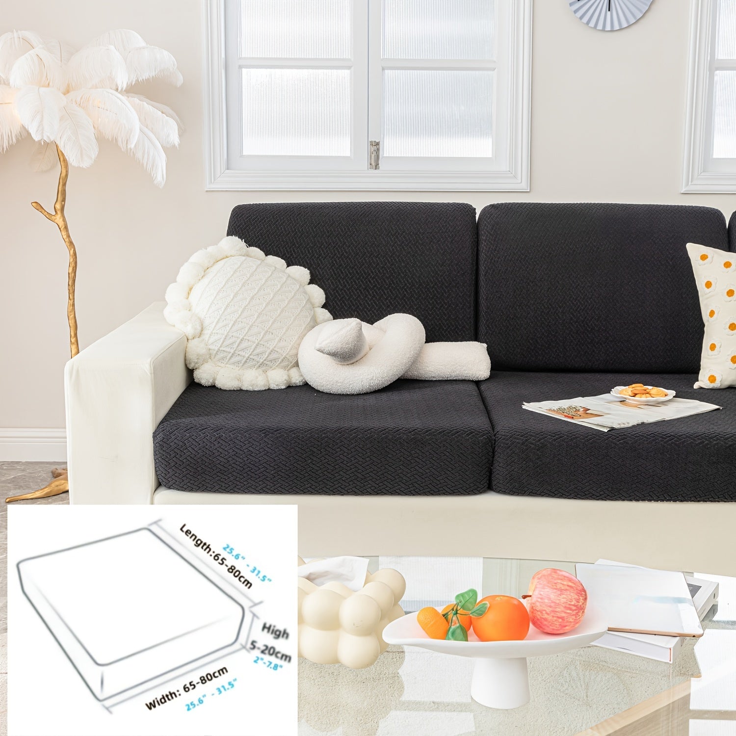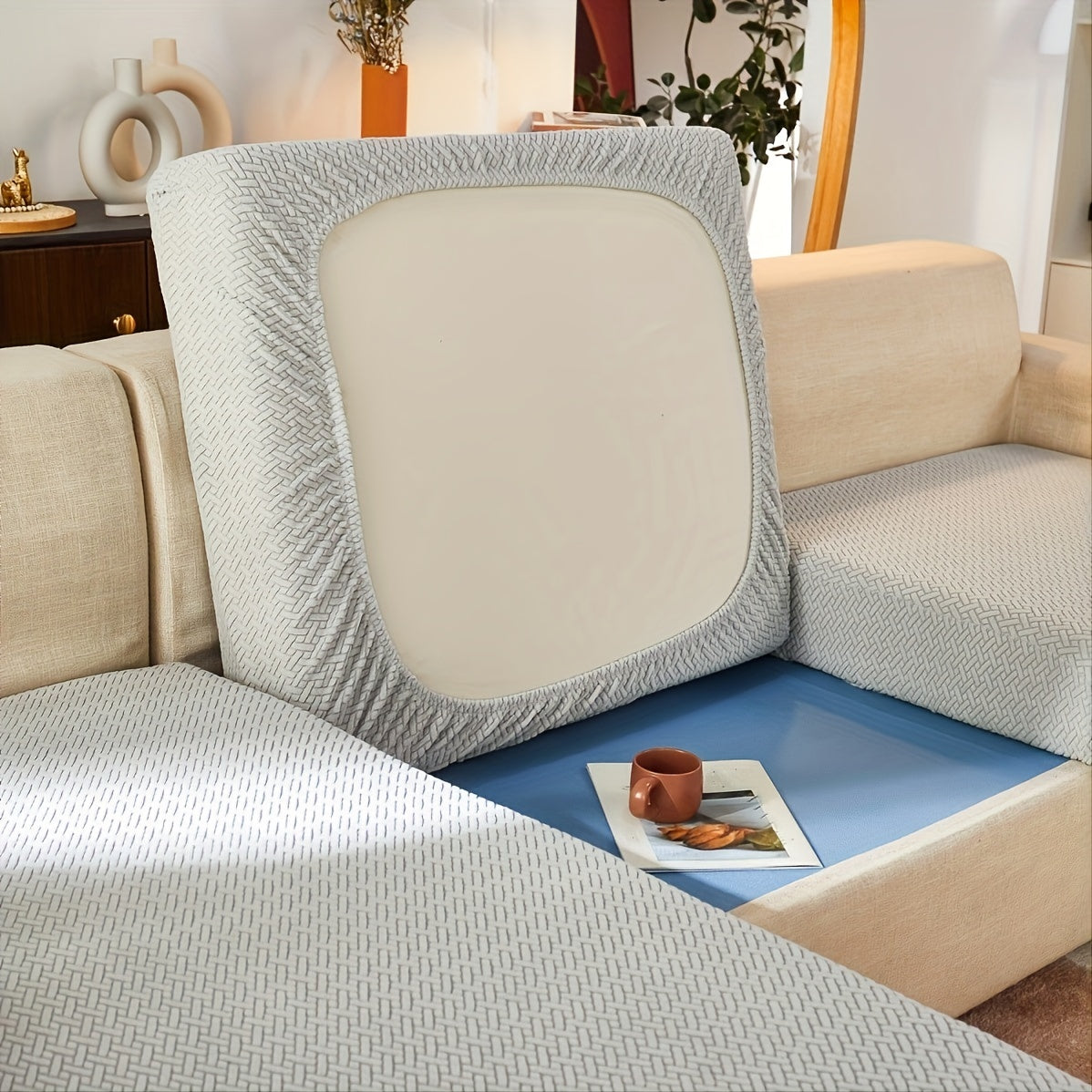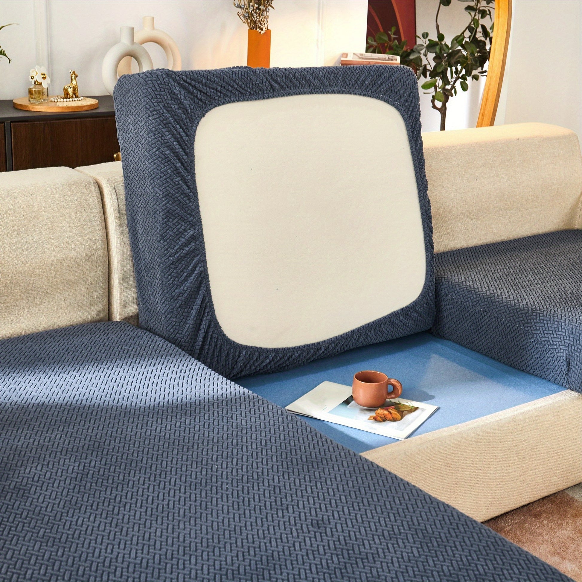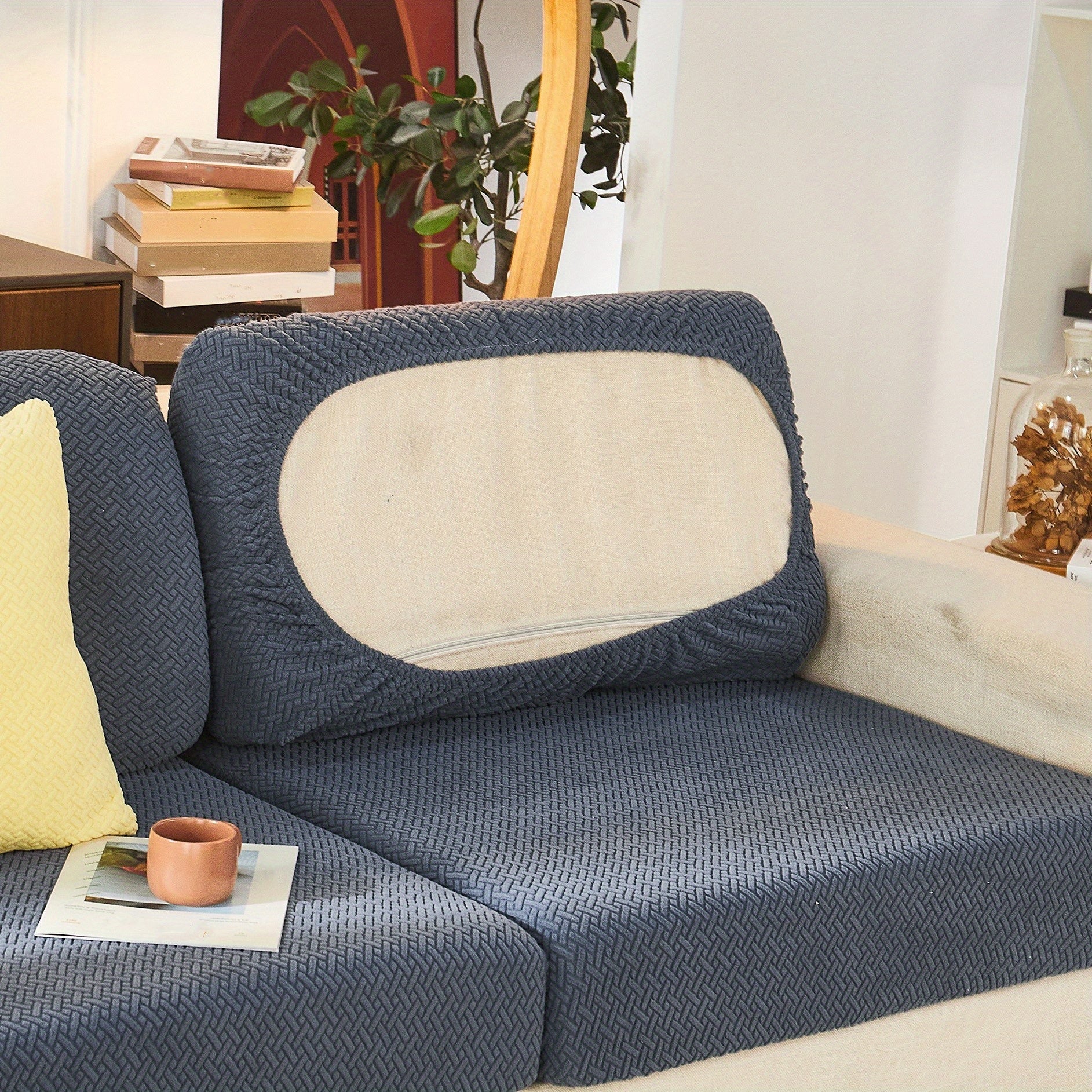 Современный серый чехол для подушки дивана с эластичной посадкой и мягкой текстурированной тканью. Машинная стирка для повышения комфорта в гостиной.