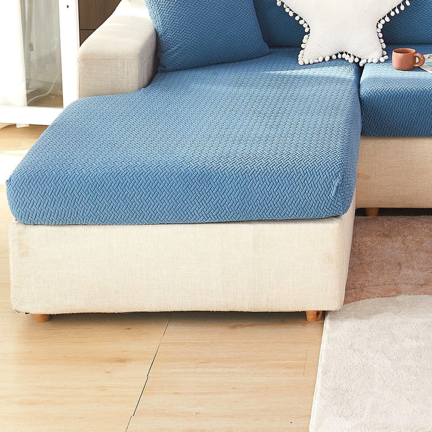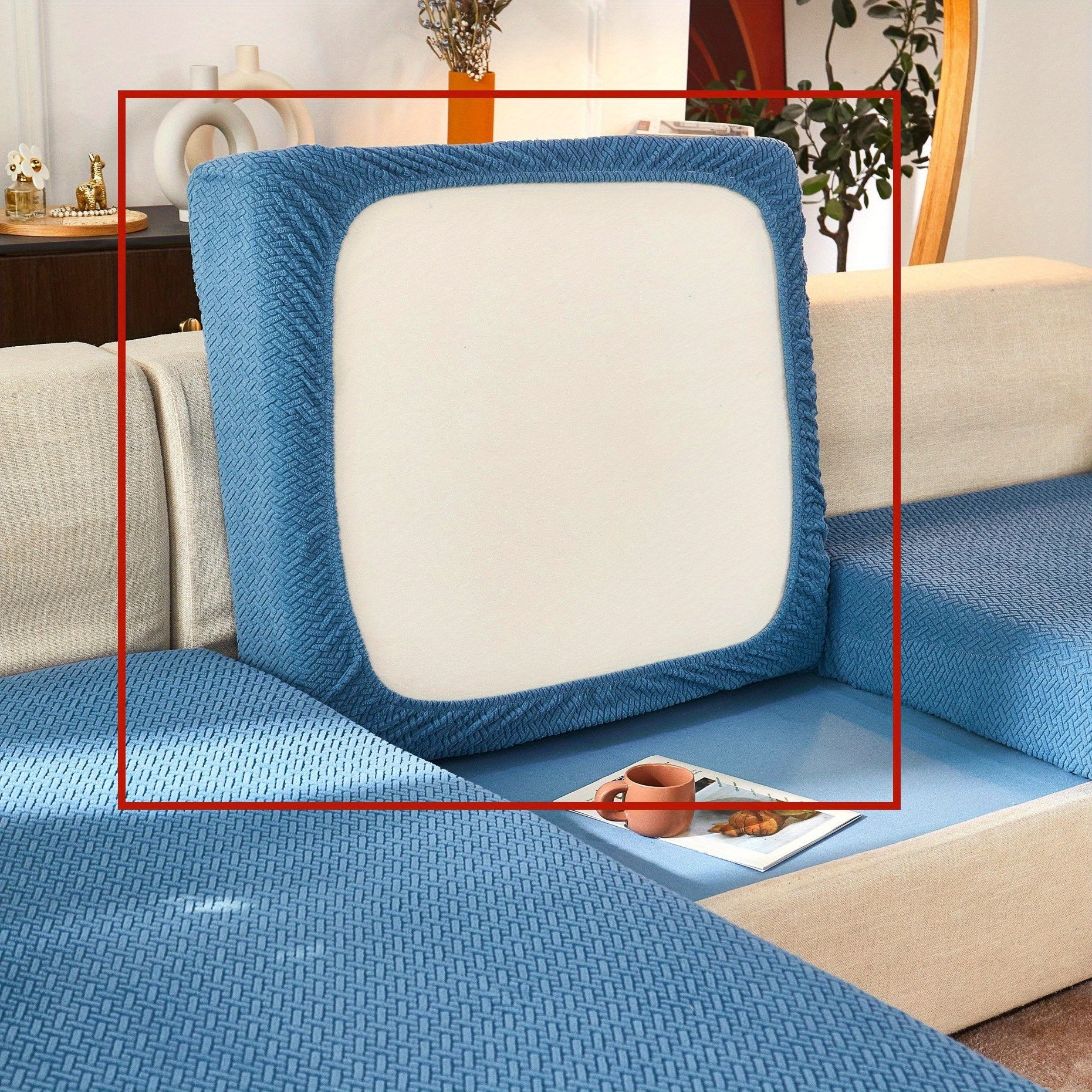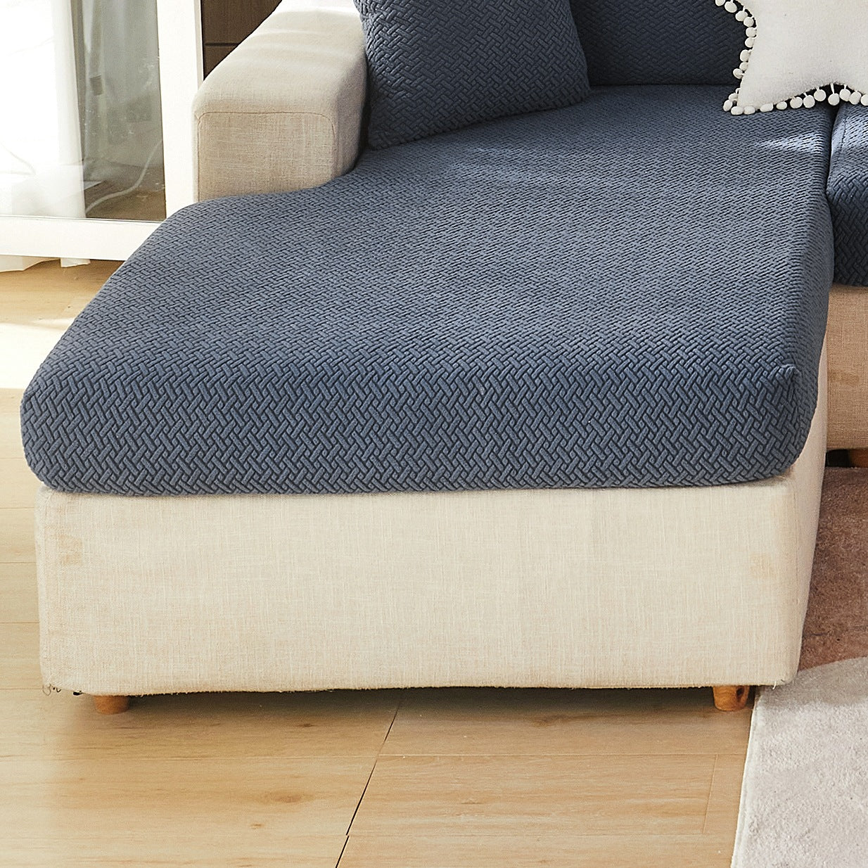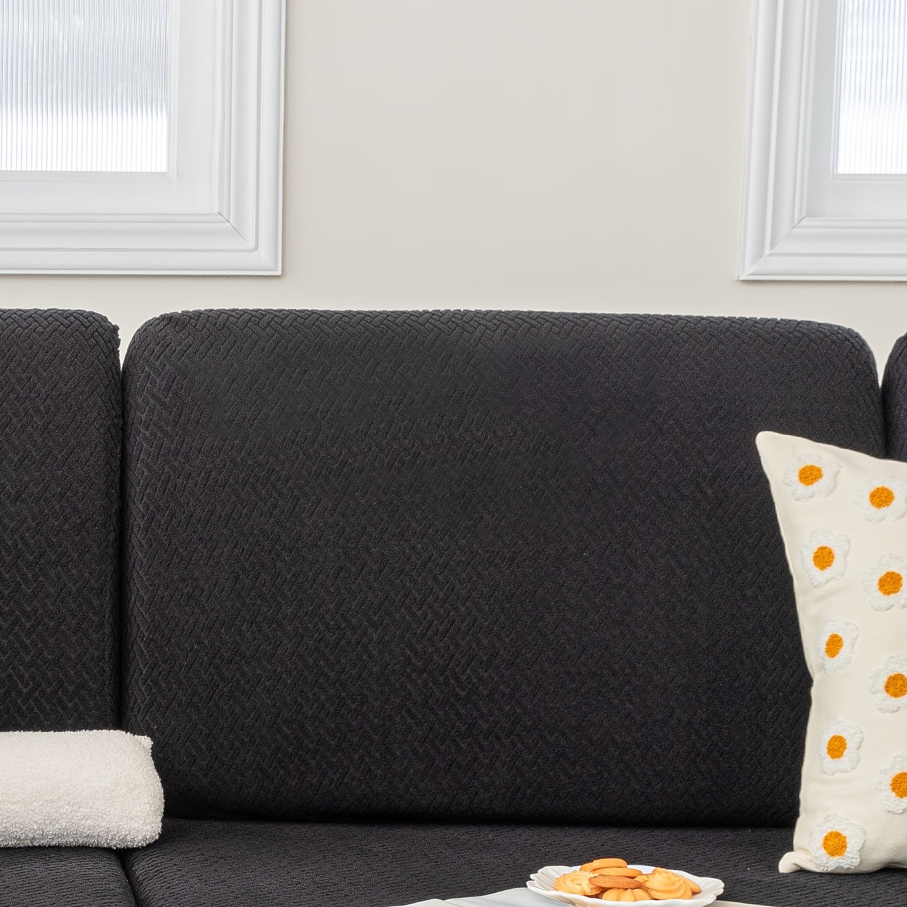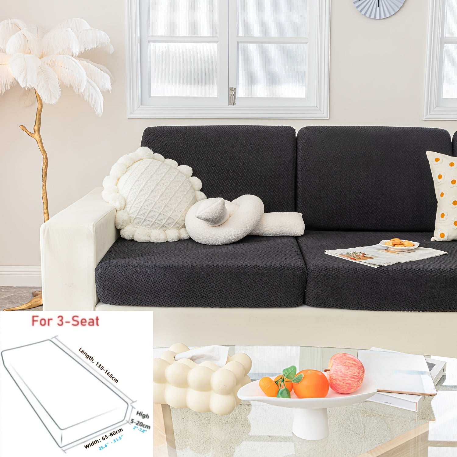 Современный серый чехол для подушки дивана с эластичной посадкой и мягкой текстурированной тканью. Машинная стирка для повышения комфорта в гостиной.