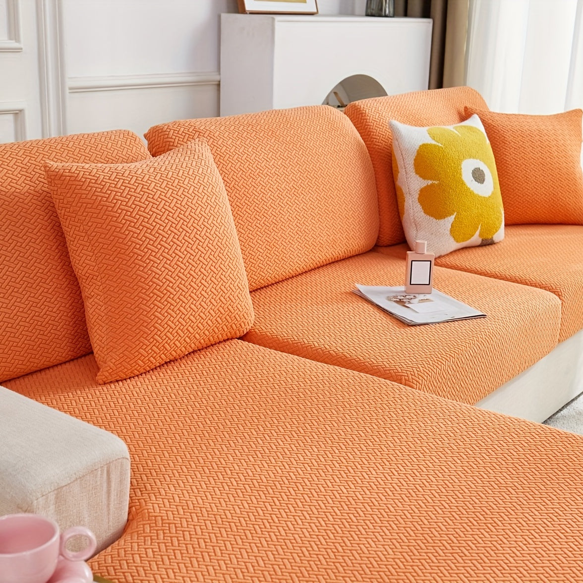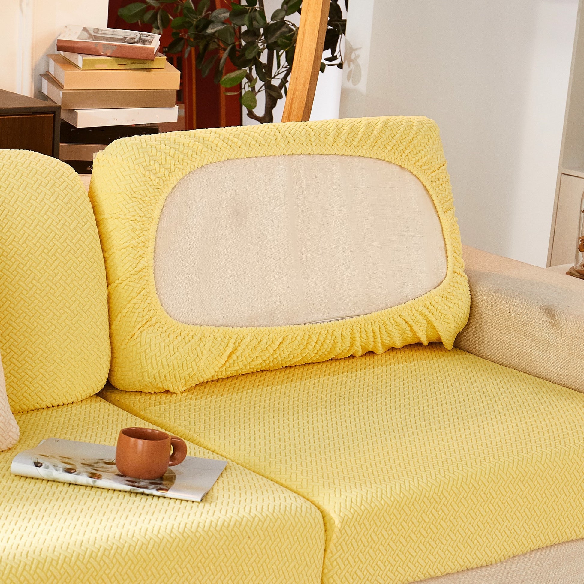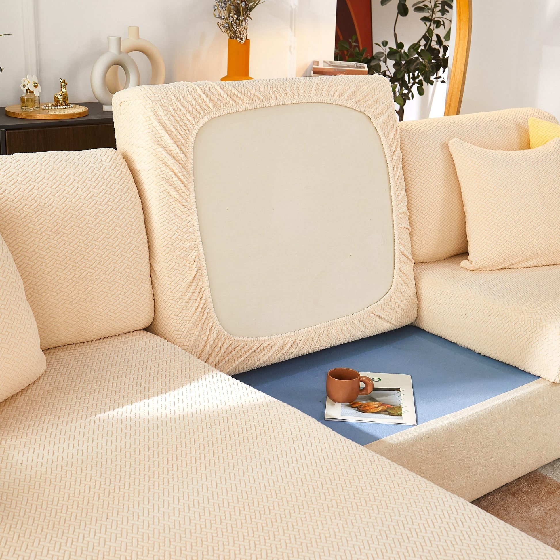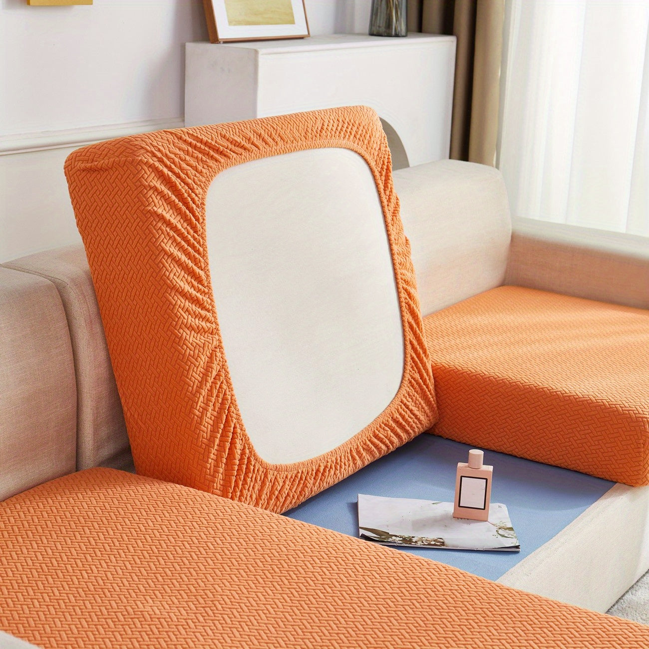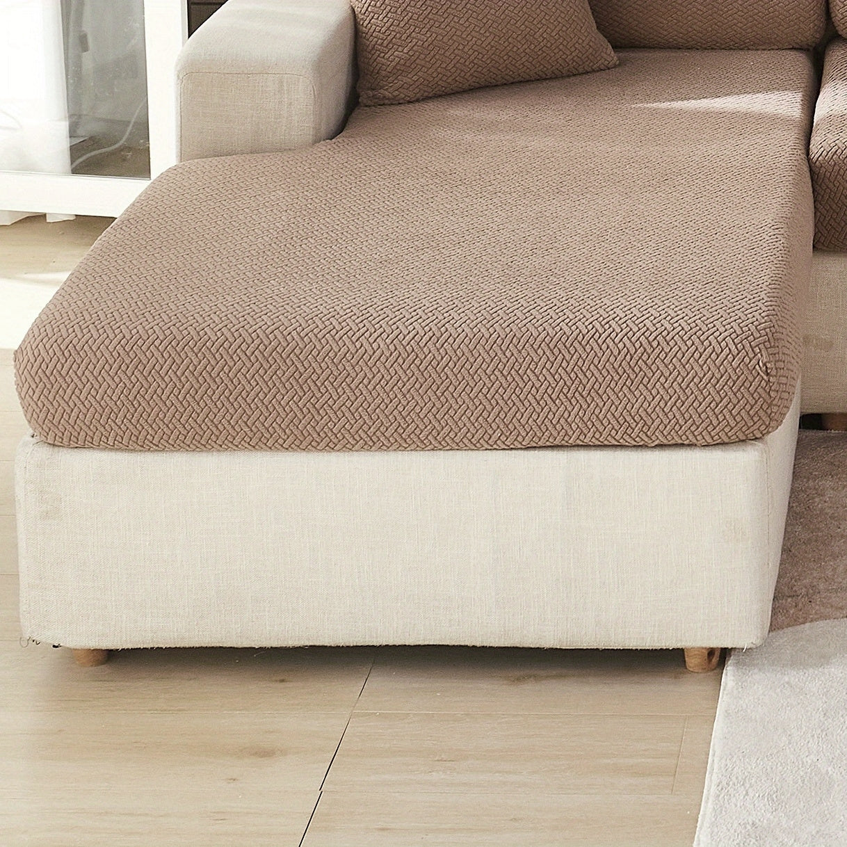 Современный серый чехол для подушки дивана с эластичной посадкой и мягкой текстурированной тканью. Машинная стирка для повышения комфорта в гостиной.