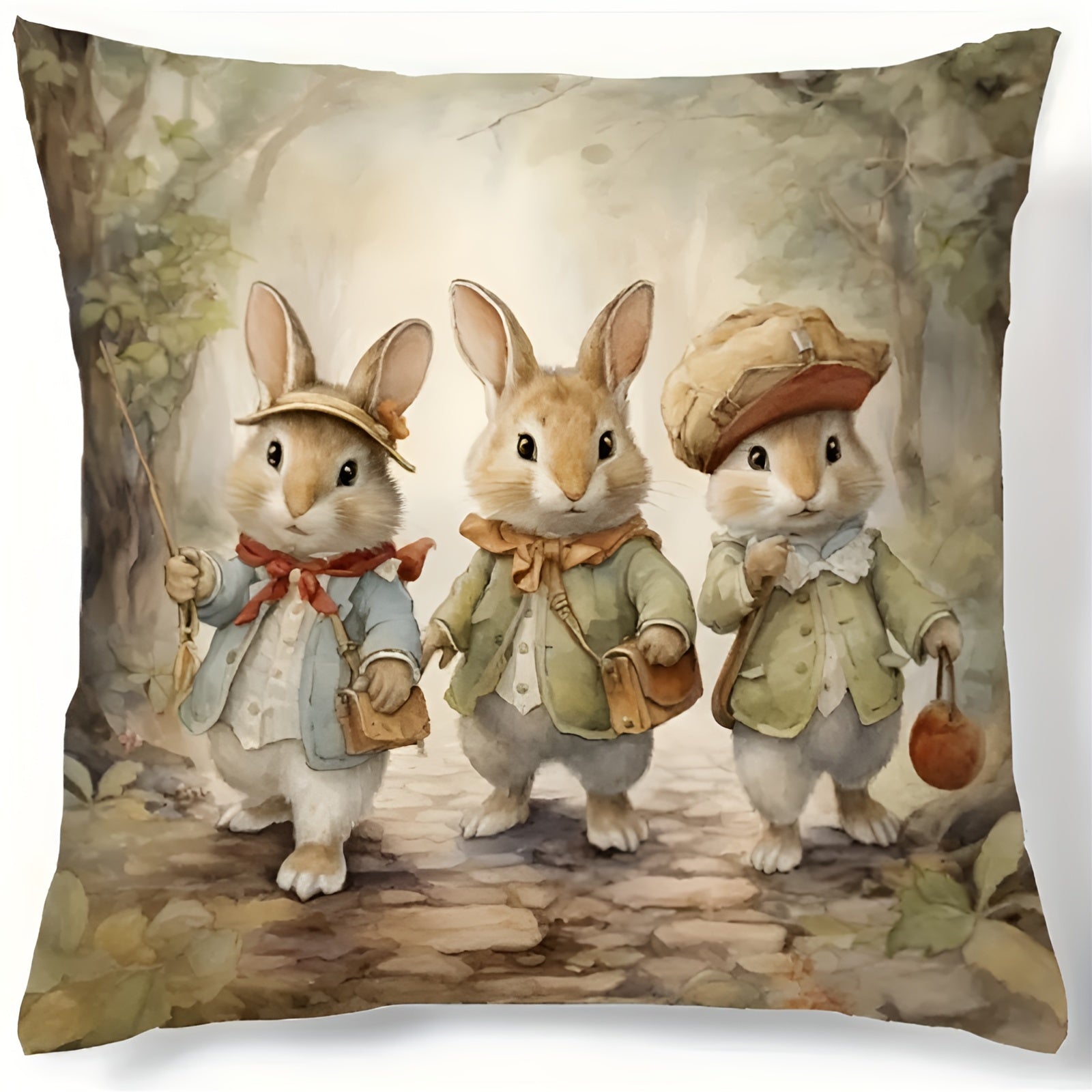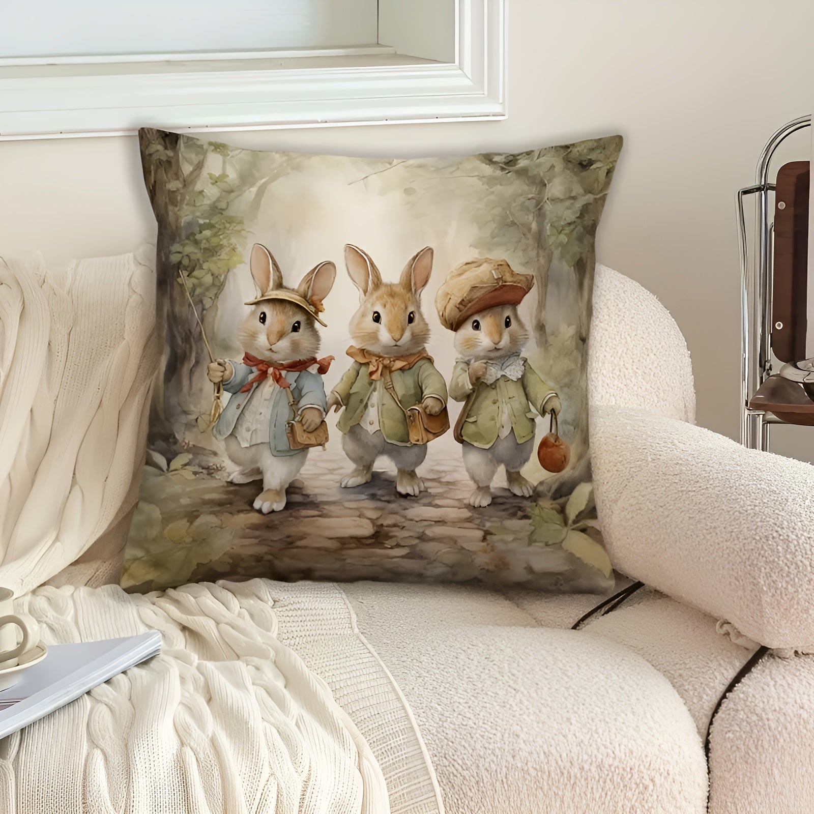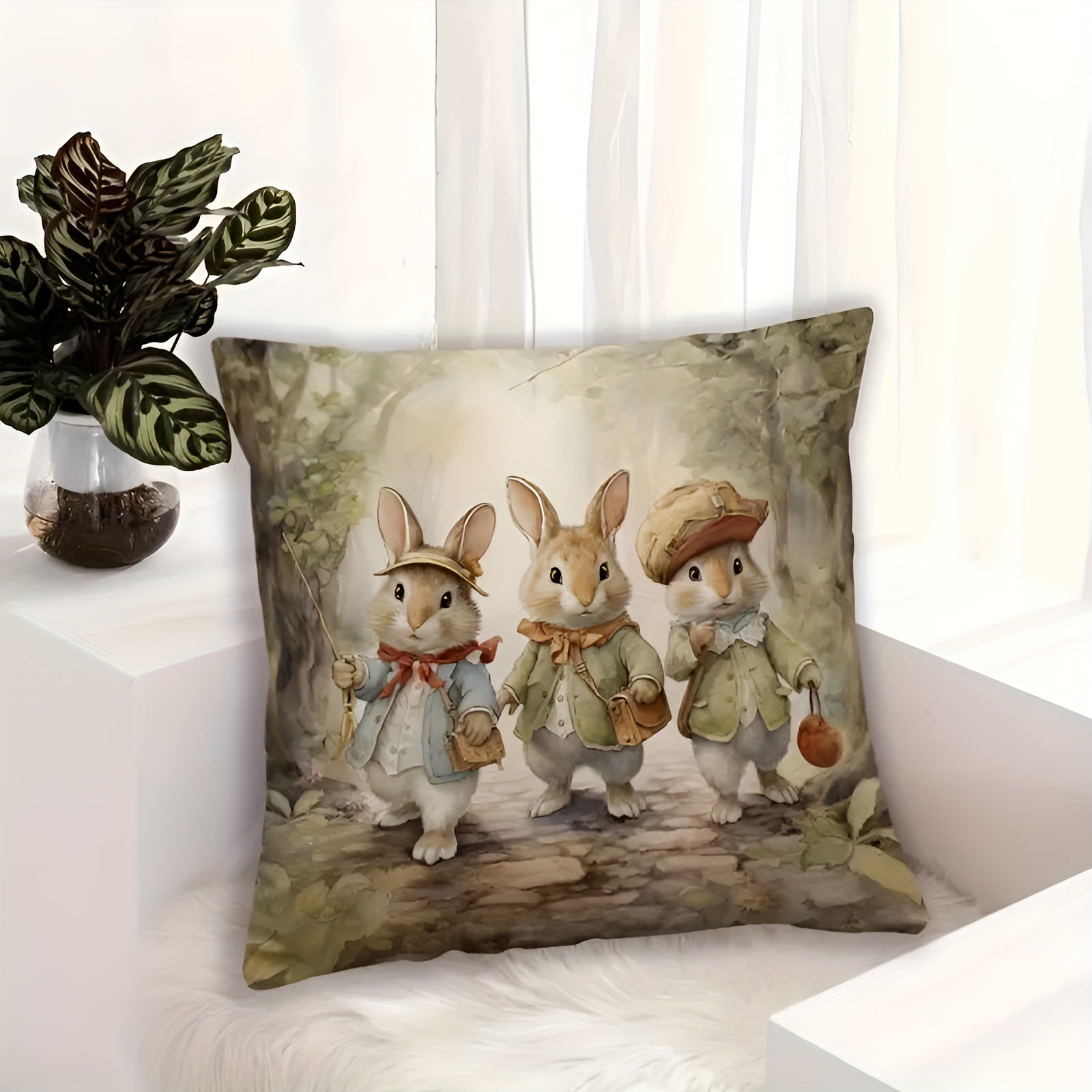 Наволочка для декоративной подушки из льна с застежкой-молнией, с узором кролика в стиле плетения, моющаяся в машинке, односторонняя
