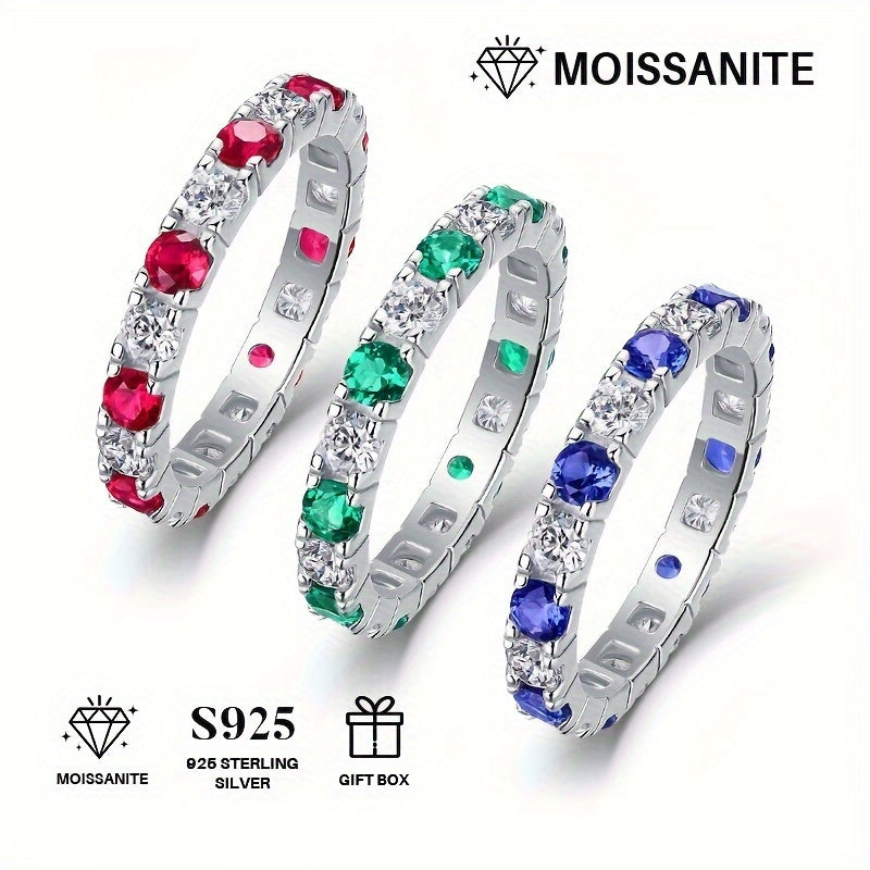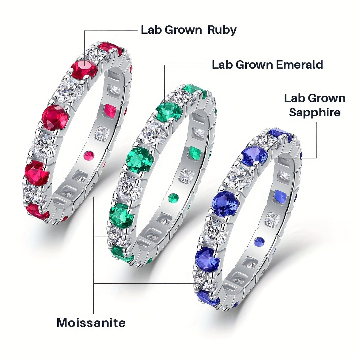 Кольцо из стерлингового серебра с моссанитом и лабораторно выращенными изумрудами, рубинами, сапфирами для женщин и мужчин