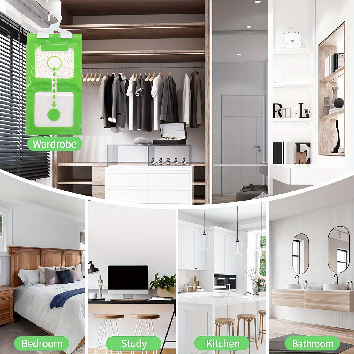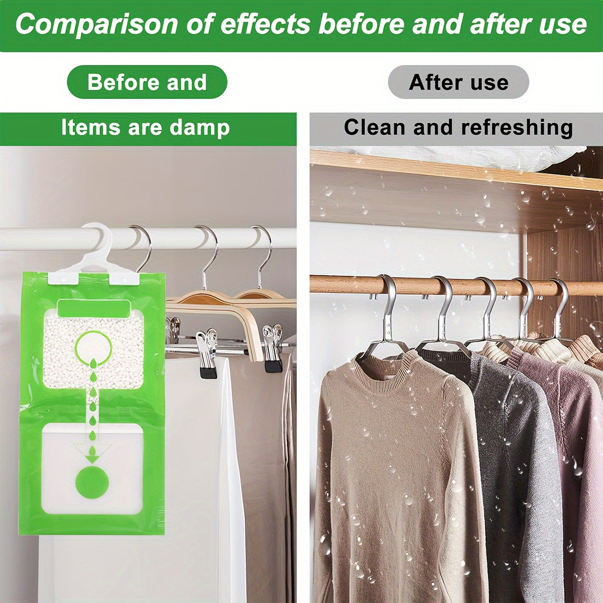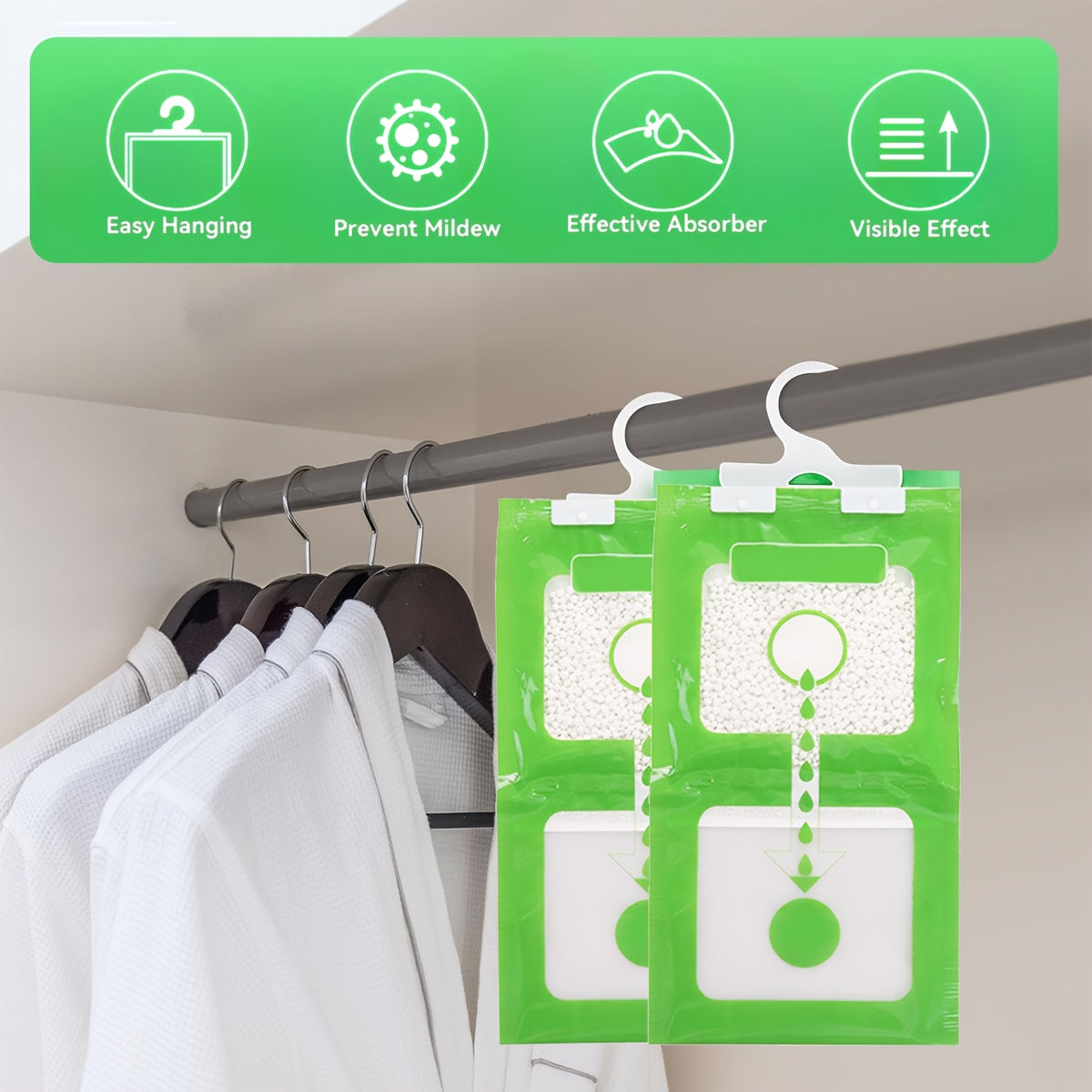 Сумки для поглощения влаги для шкафов - 1/3/5 упаковка, пакеты для осушения воздуха для домашнего гардероба, легко вешать с видимыми эффектами.
