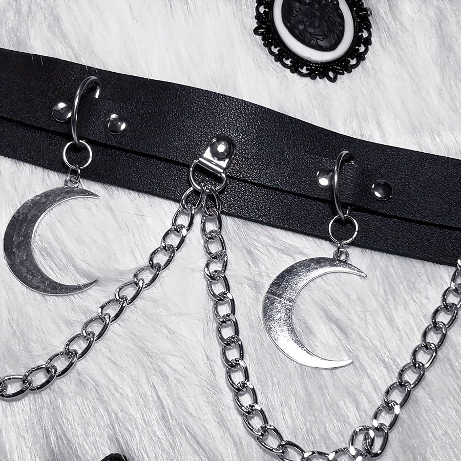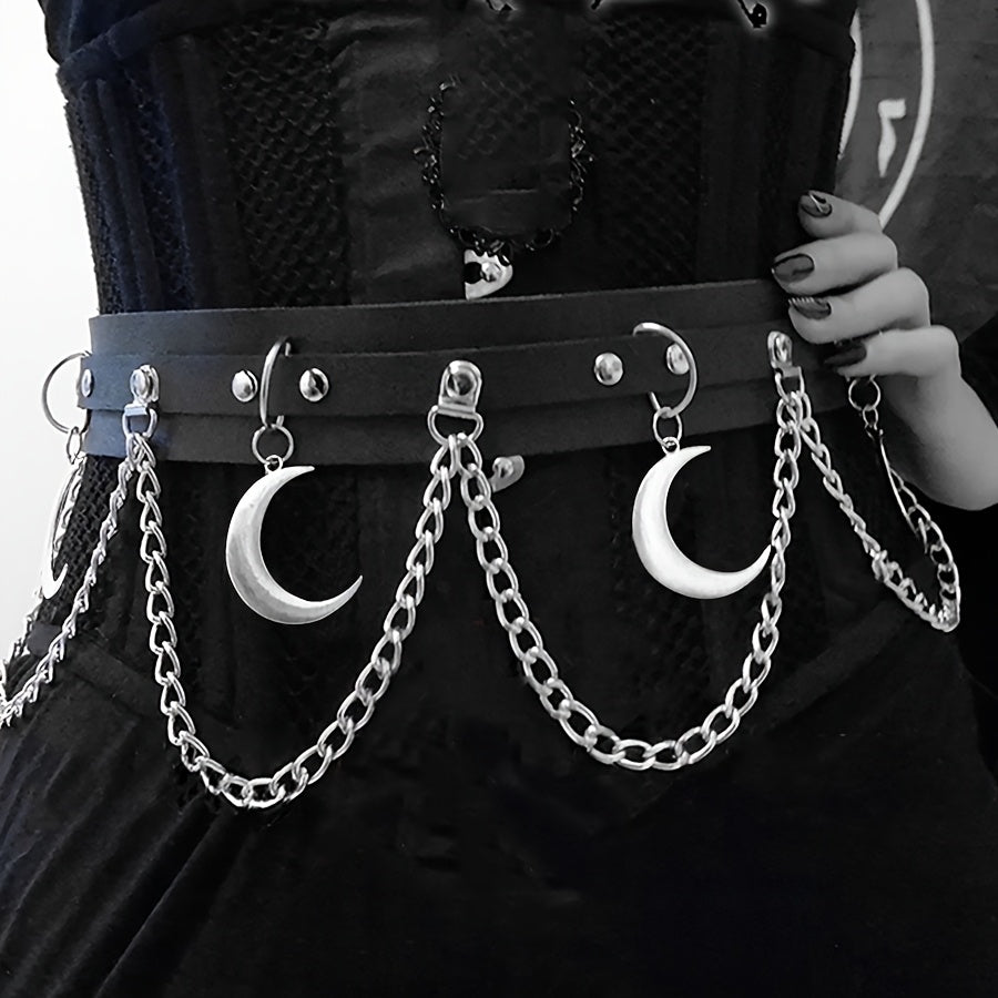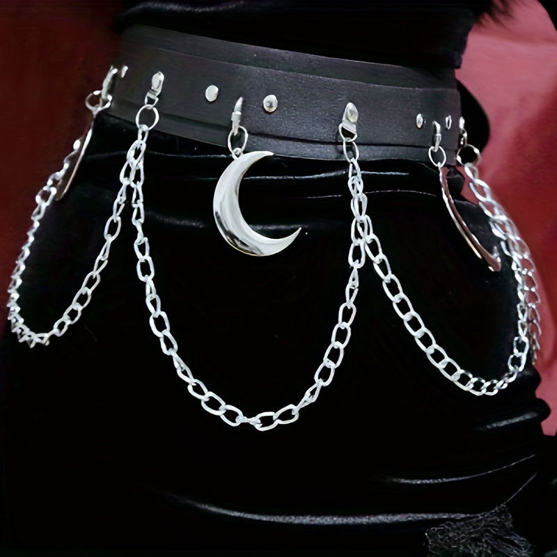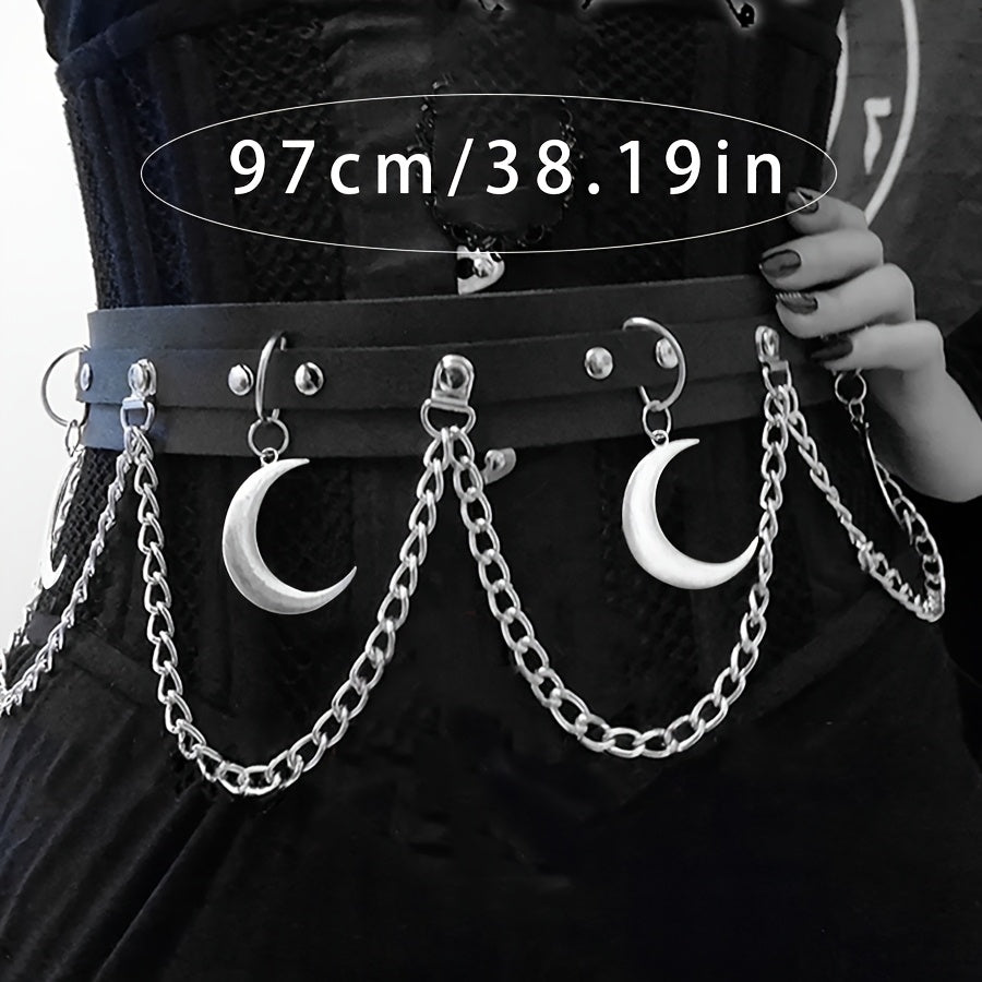 Женский пояс с луной, ремень из искусственной кожи, в стиле панк, цепочка, повседневный пояс для вечеринки, украшение