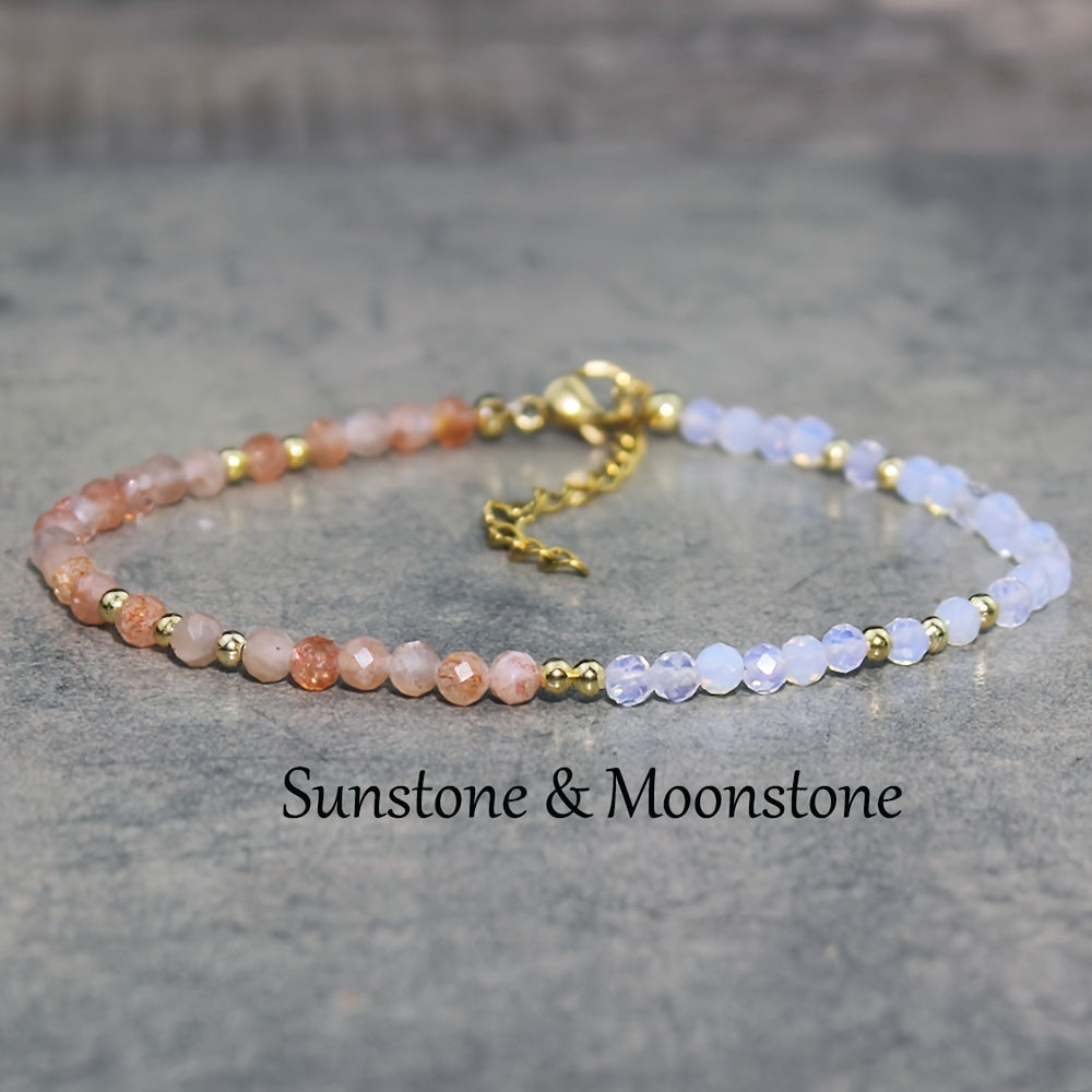 Браслет из лунного камня и солнечного камня, браслеты с бусинами из драгоценных камней для женщин, украшения из радужного лунного камня и солнечного камня