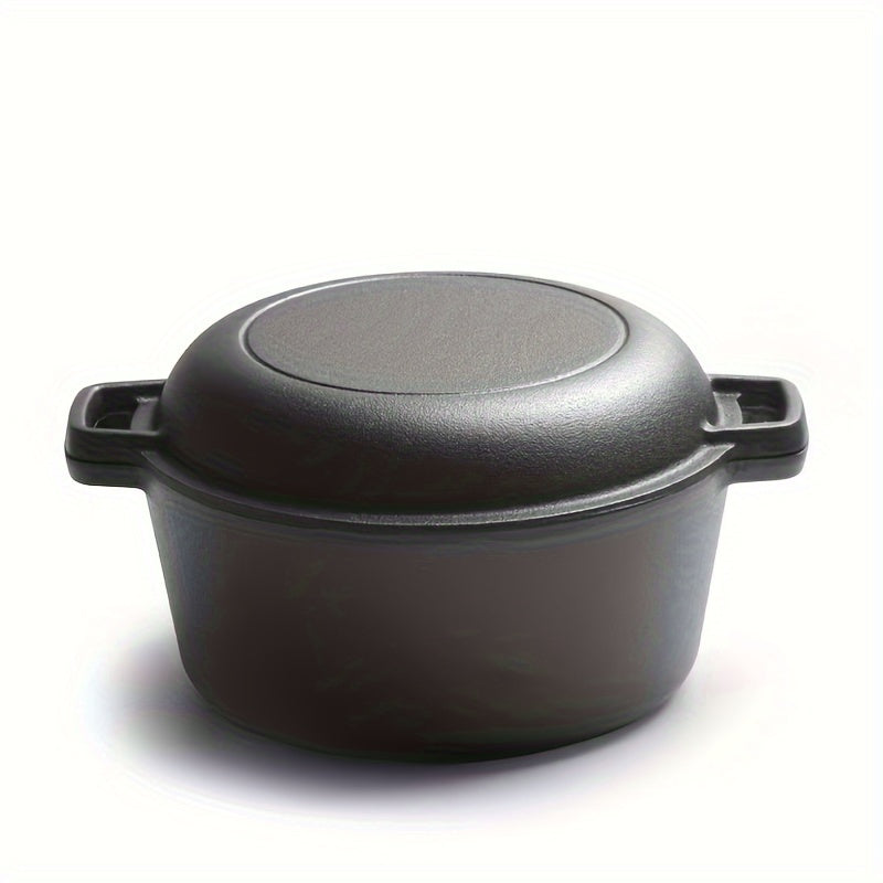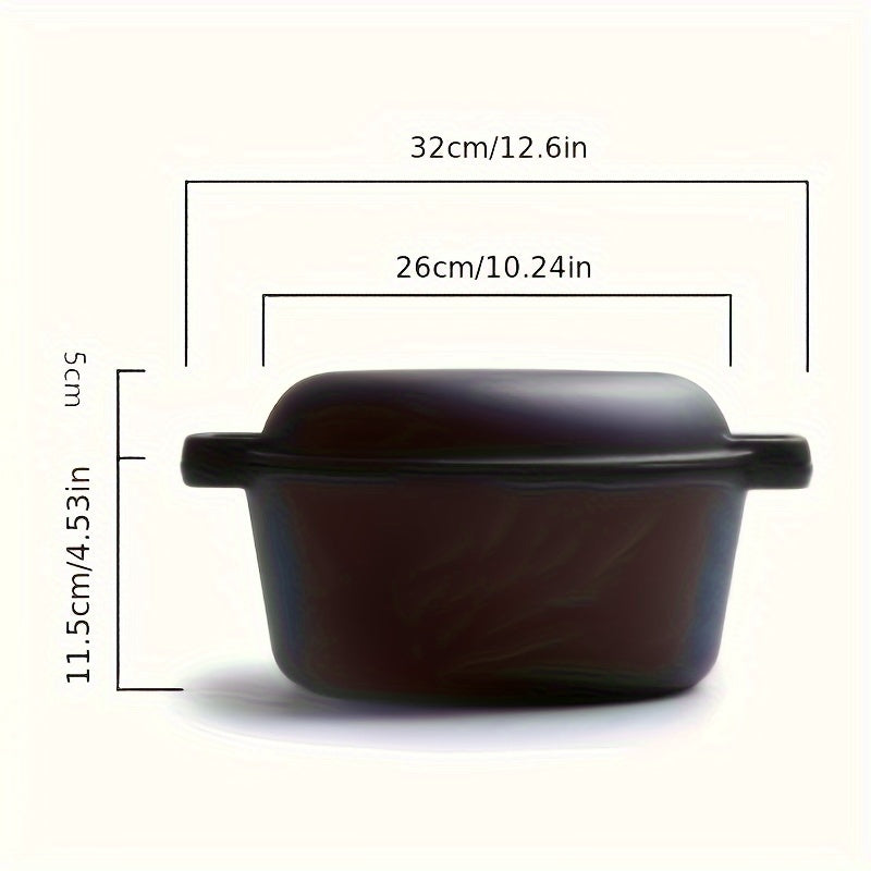 Многофункциональная чугунная комбинированная кастрюля с двумя ручками - толстая, предварительно приправленная для выпечки хлеба и приготовления морепродуктов, черная, с двумя ручками, предварительно приправленная для легкого использования