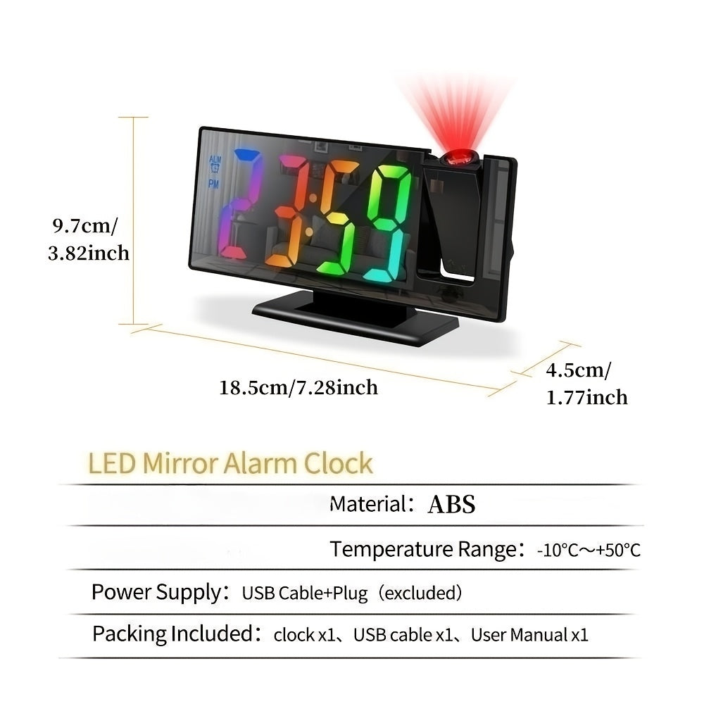 Многофункциональные цифровые будильники с проекцией, отображением температуры, регулируемой яркостью, ночным режимом и функцией отложенного будильника. LED-зеркальный будильник с питанием от USB для декора спальни и гостиной.