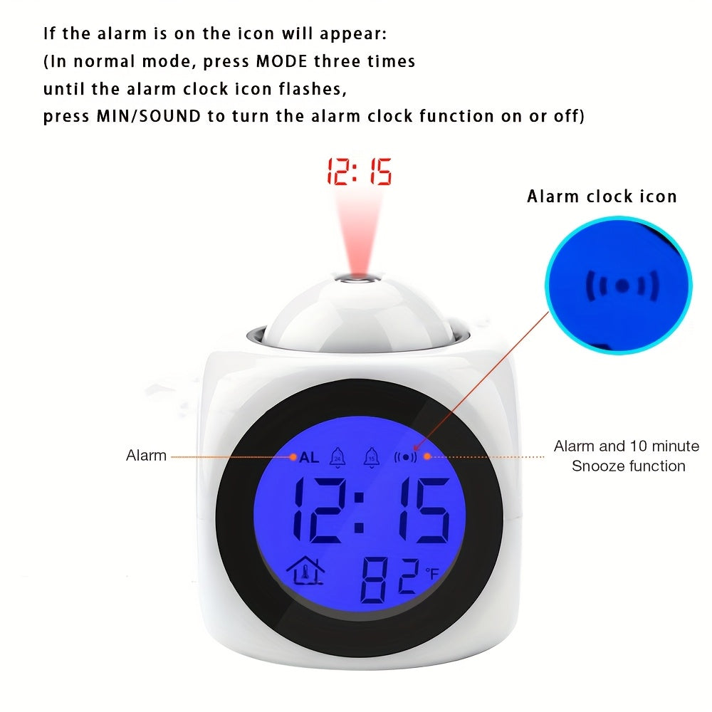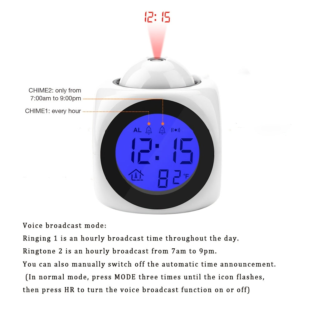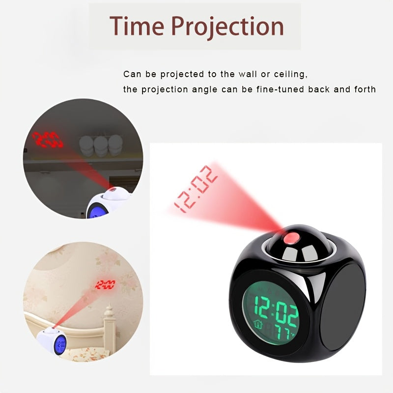 Многофункциональные проекторные будильники озвучивают время, идеально подходят для спальни, гостиной или общежития; работают от USB или батареек (батарейки AAA не включены).